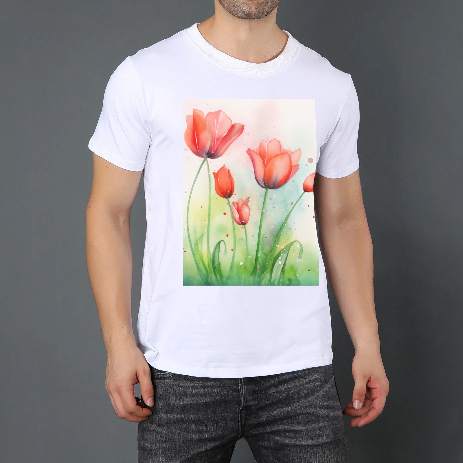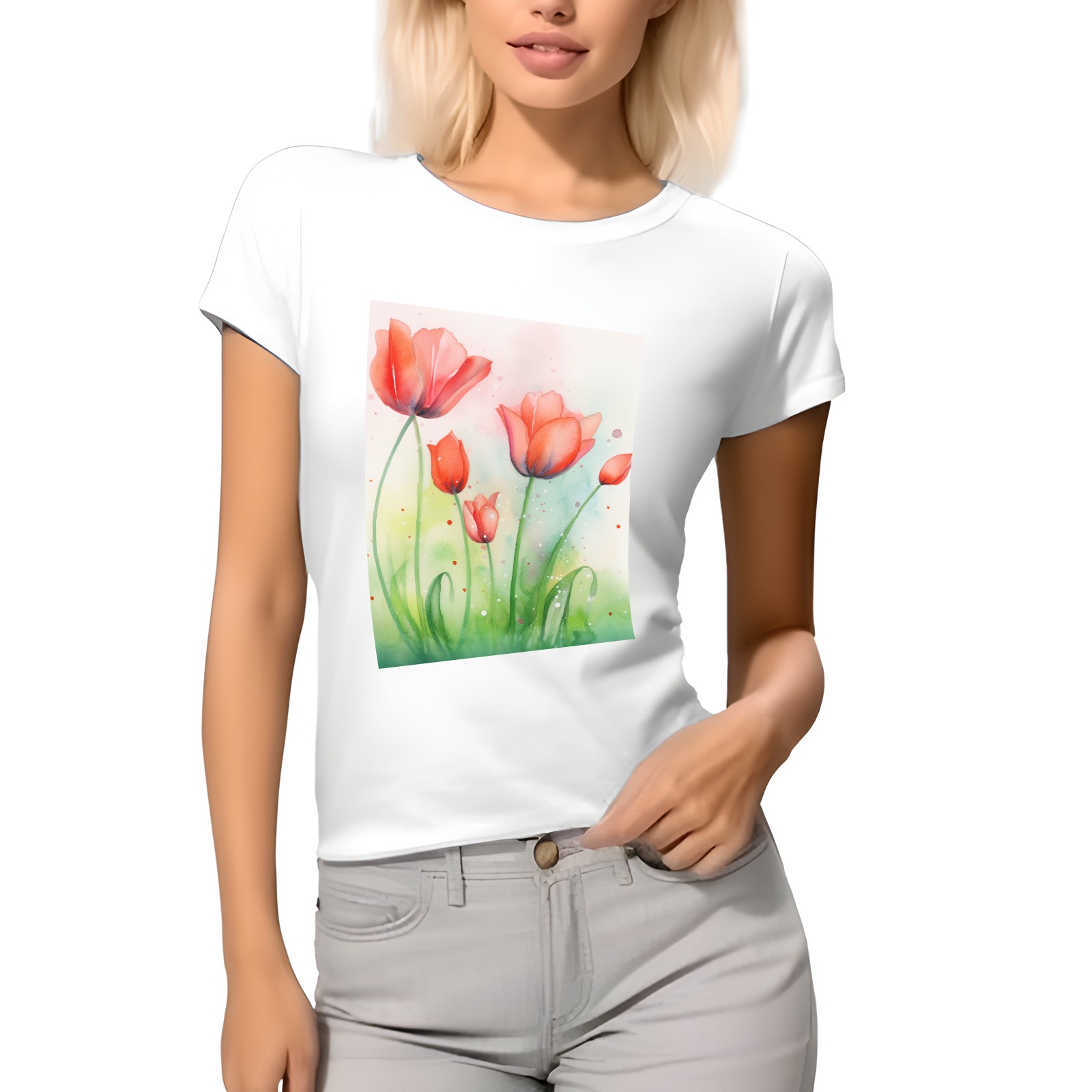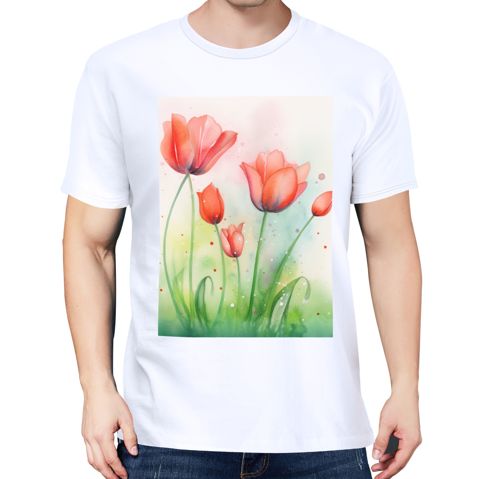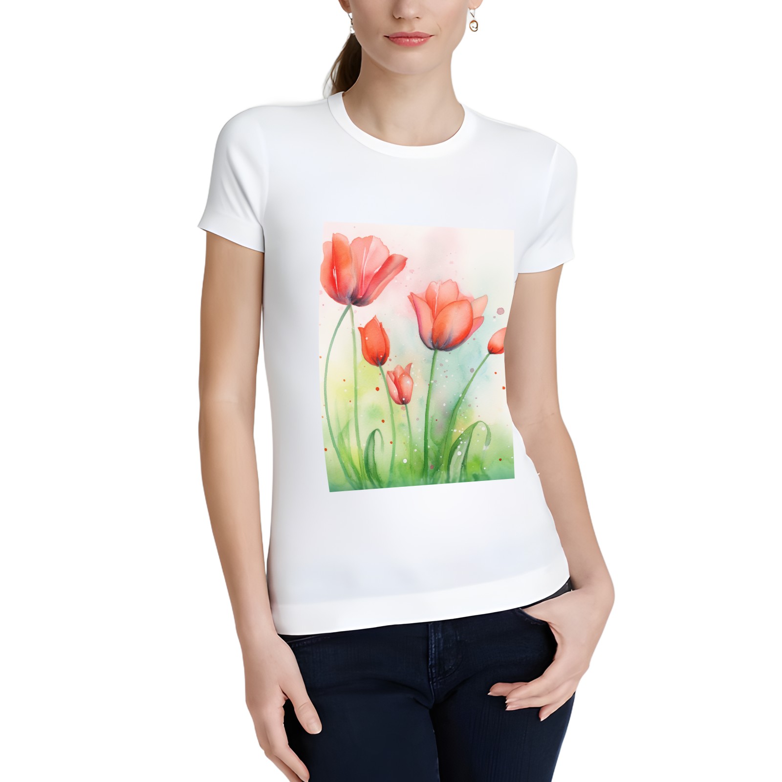 Basic Oversize Tees For WomenSpring Flowers (3) Loose Boyfriend Shirts Casual Blouse round neck