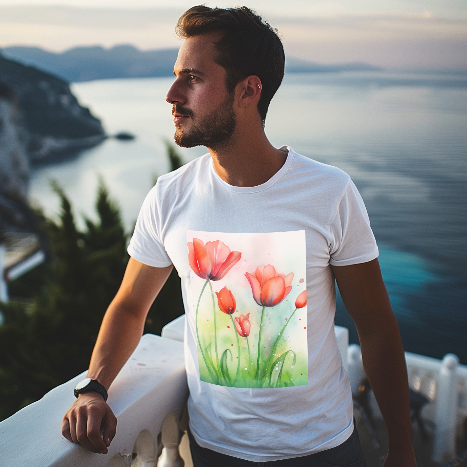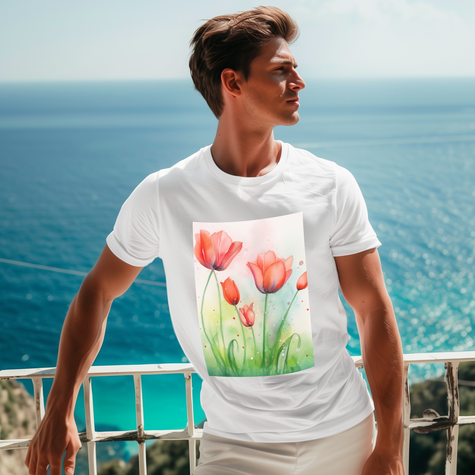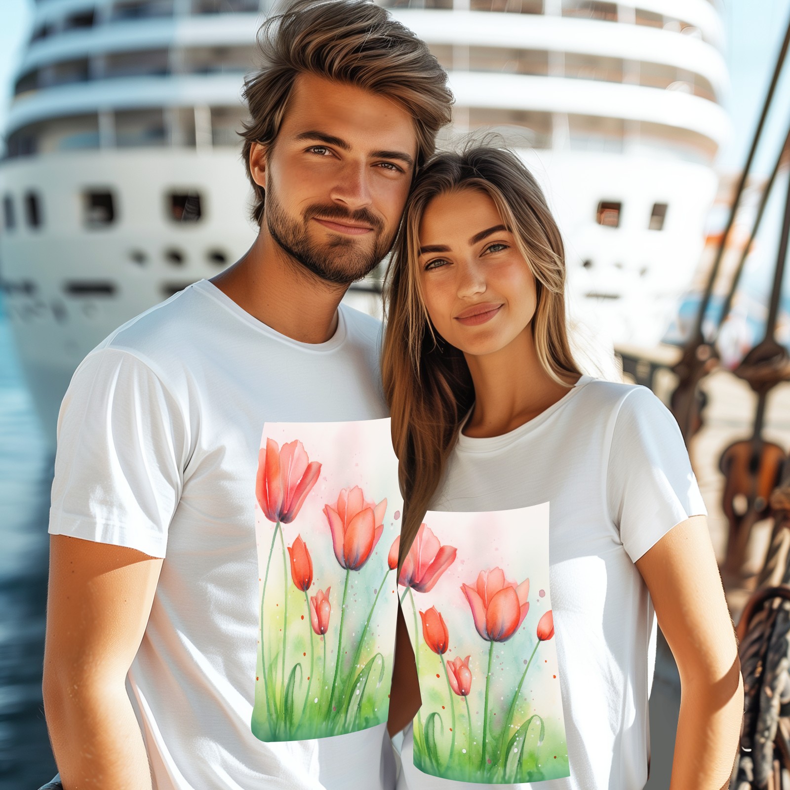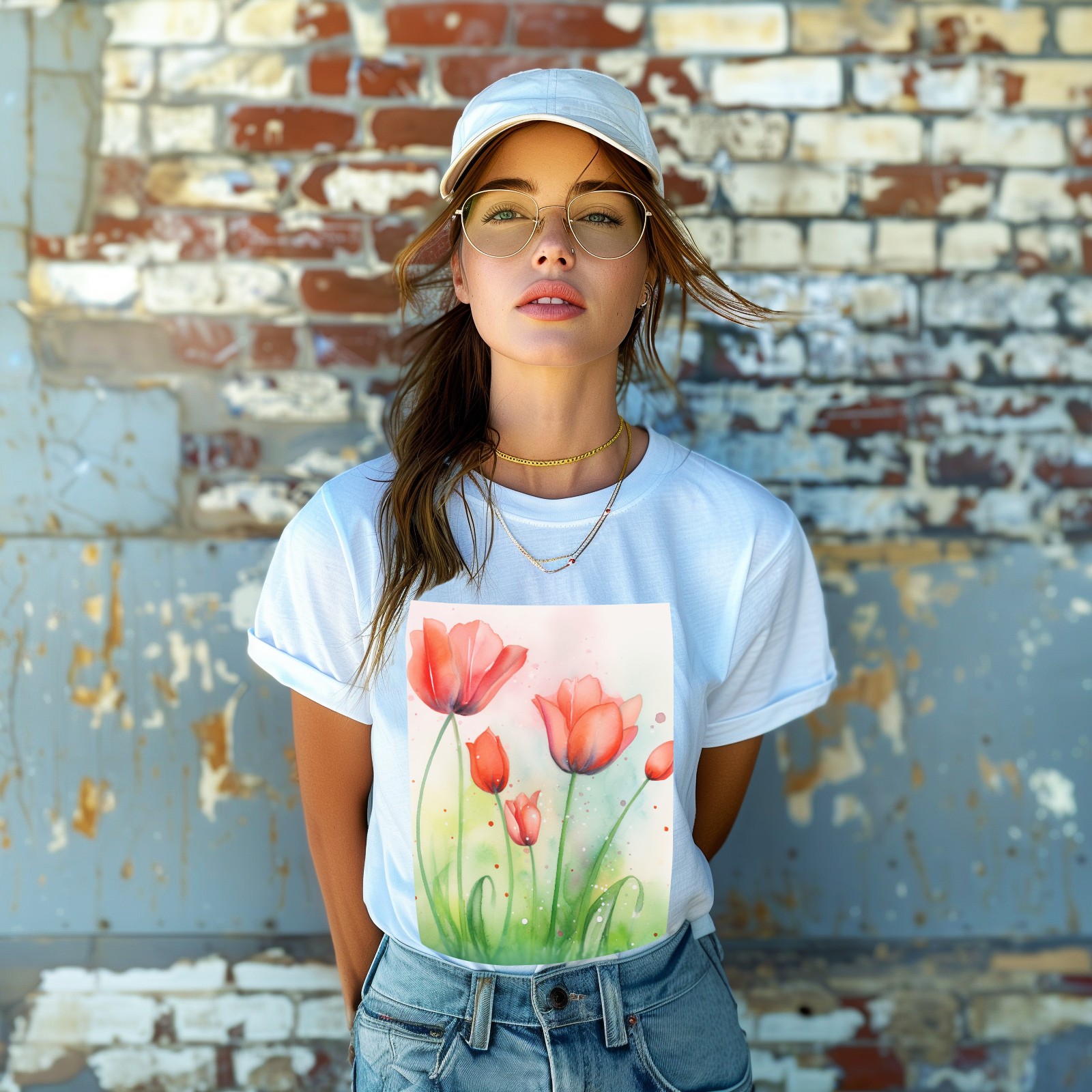 Basic Oversize Tees For WomenSpring Flowers (3) Loose Boyfriend Shirts Casual Blouse round neck