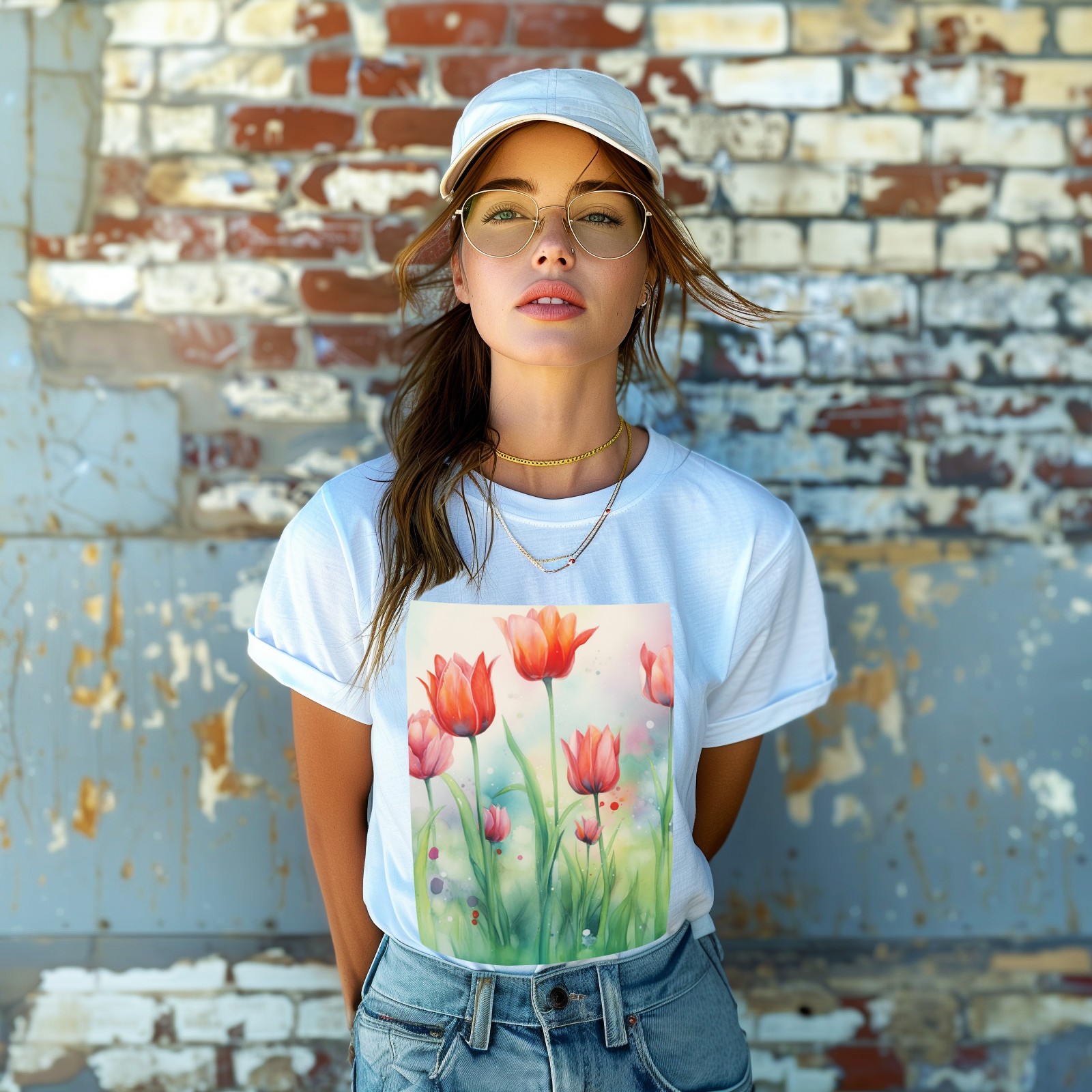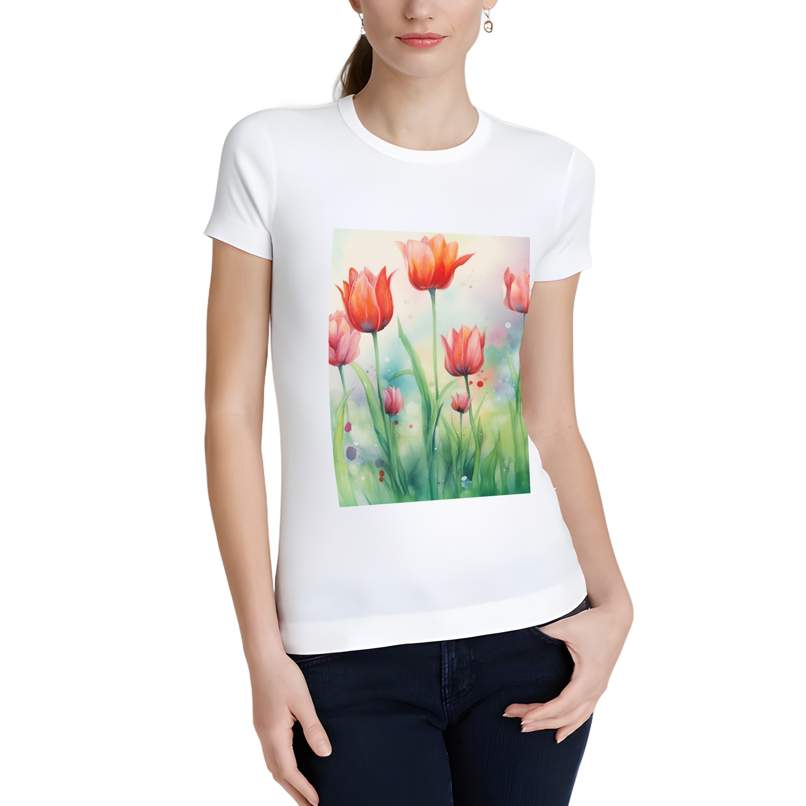 Basic Oversize Tees For WomenSpring Flowers (1) Loose Boyfriend Shirts Casual Blouse round neck