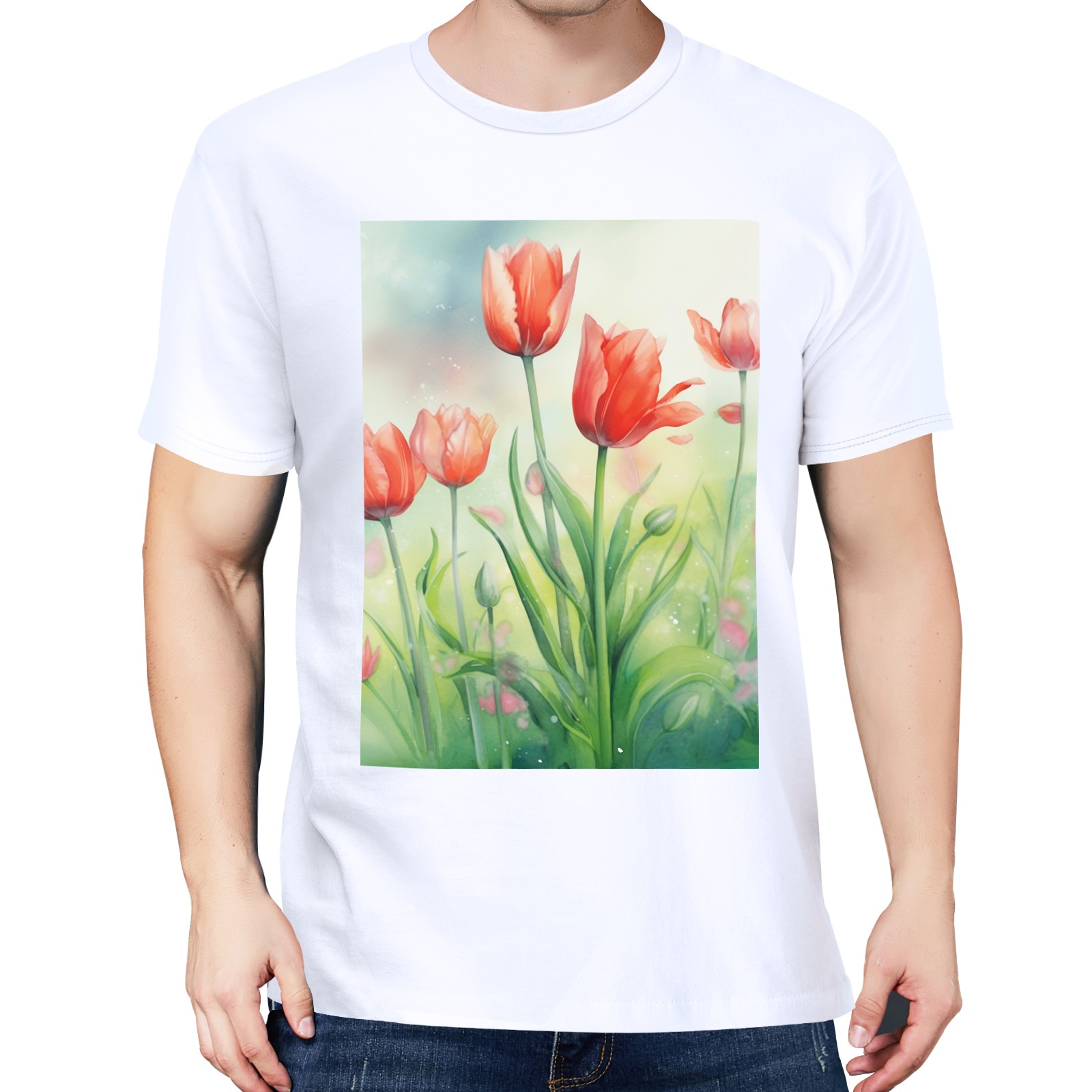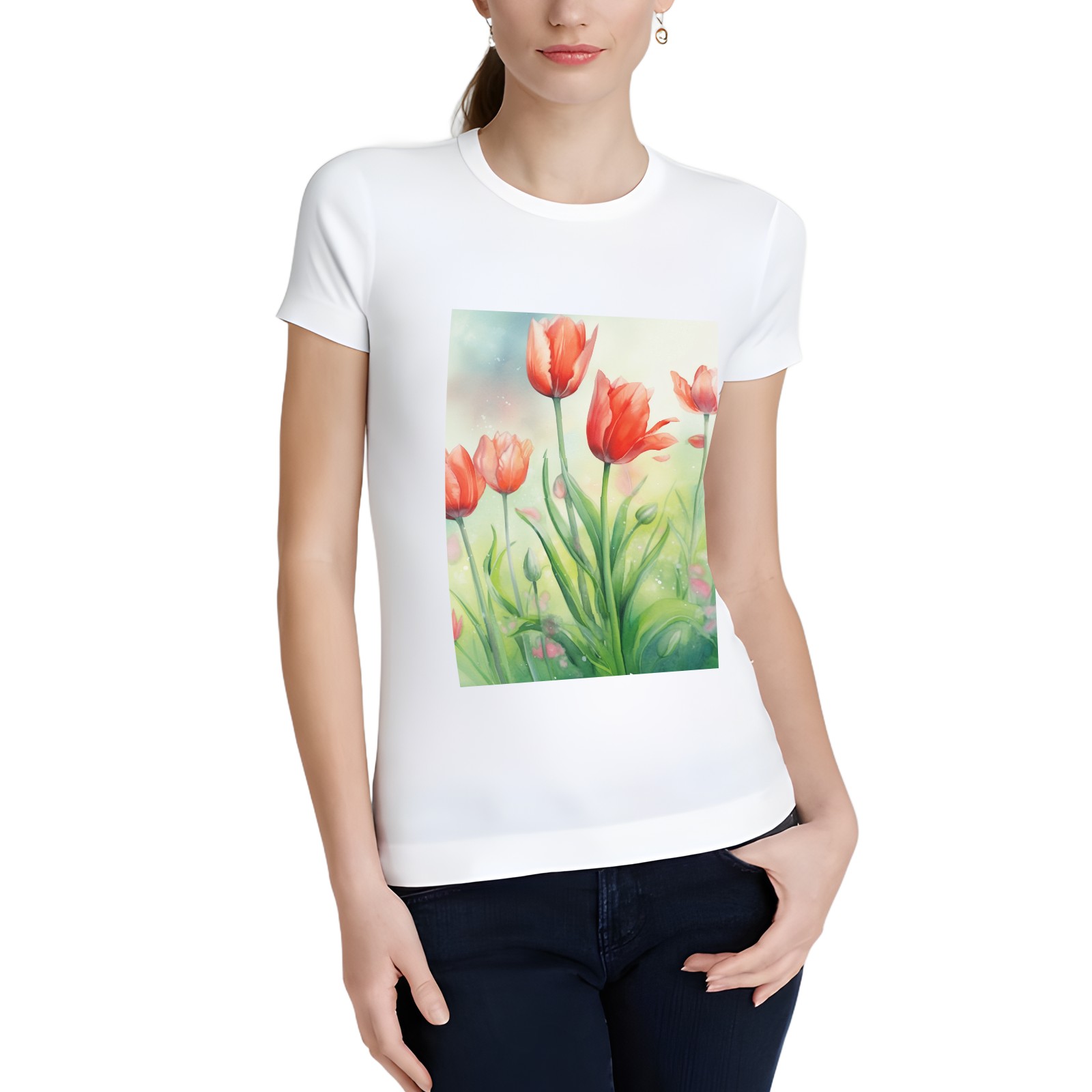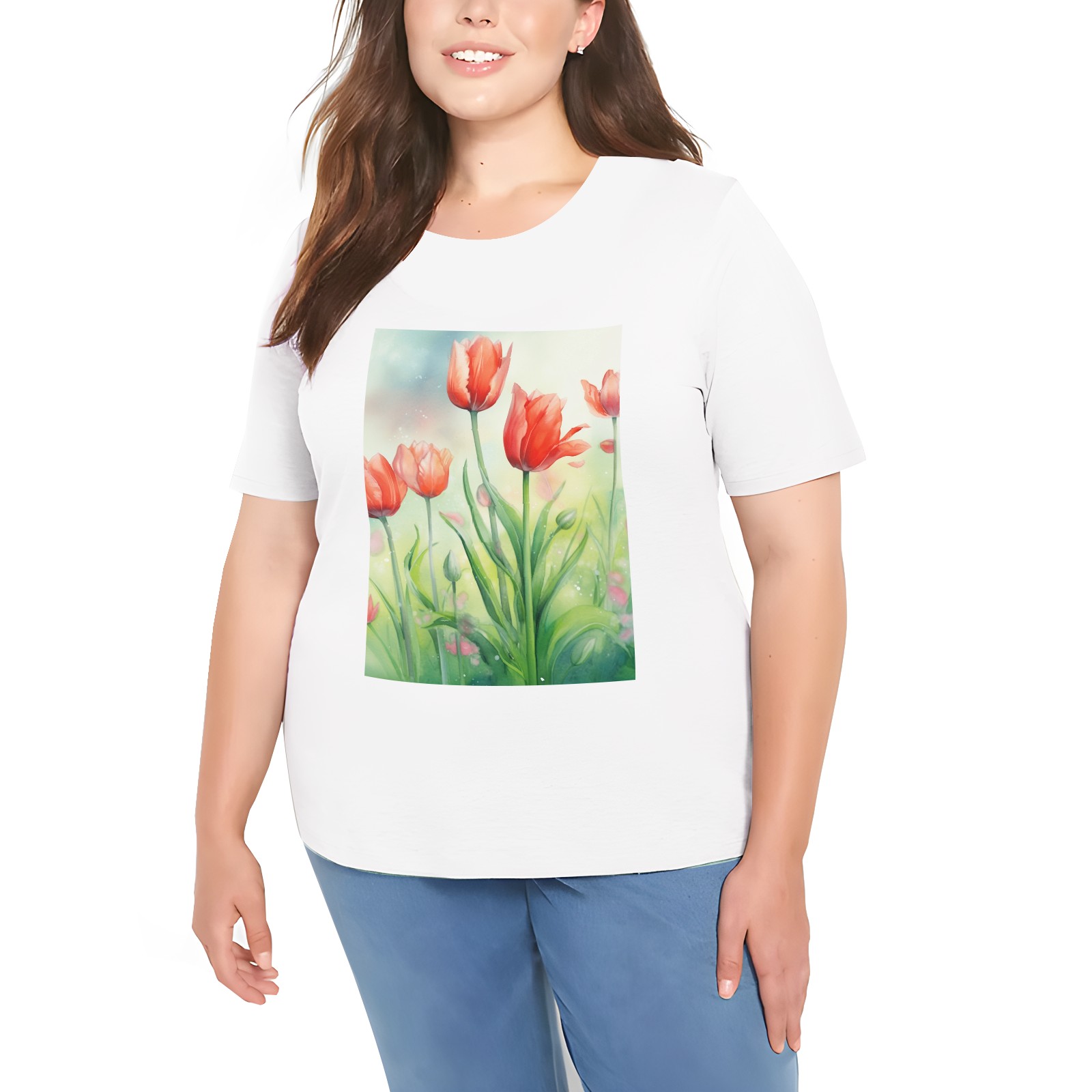 Basic Oversize Tees For WomenSpring Flowers (2) Loose Boyfriend Shirts Casual Blouse round neck