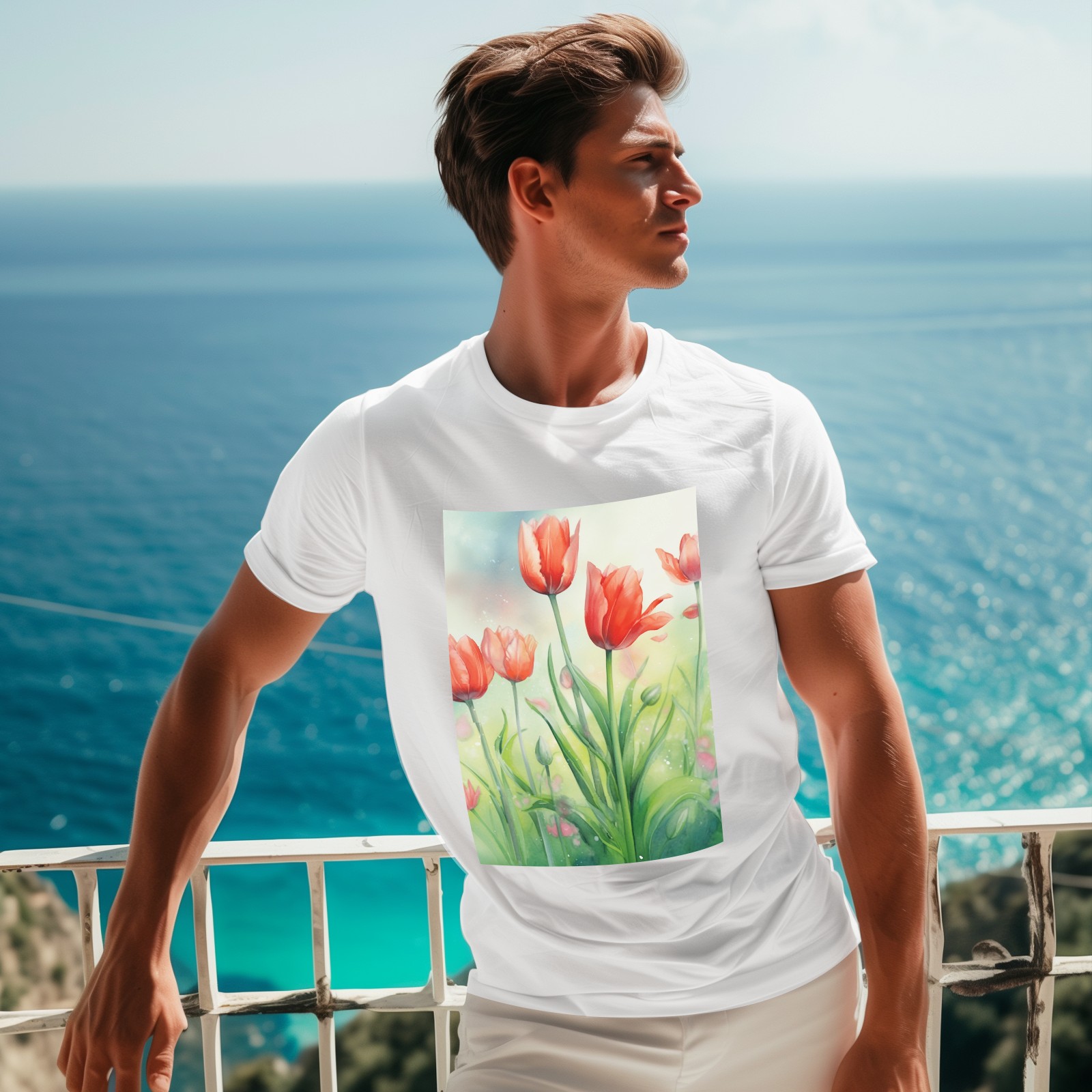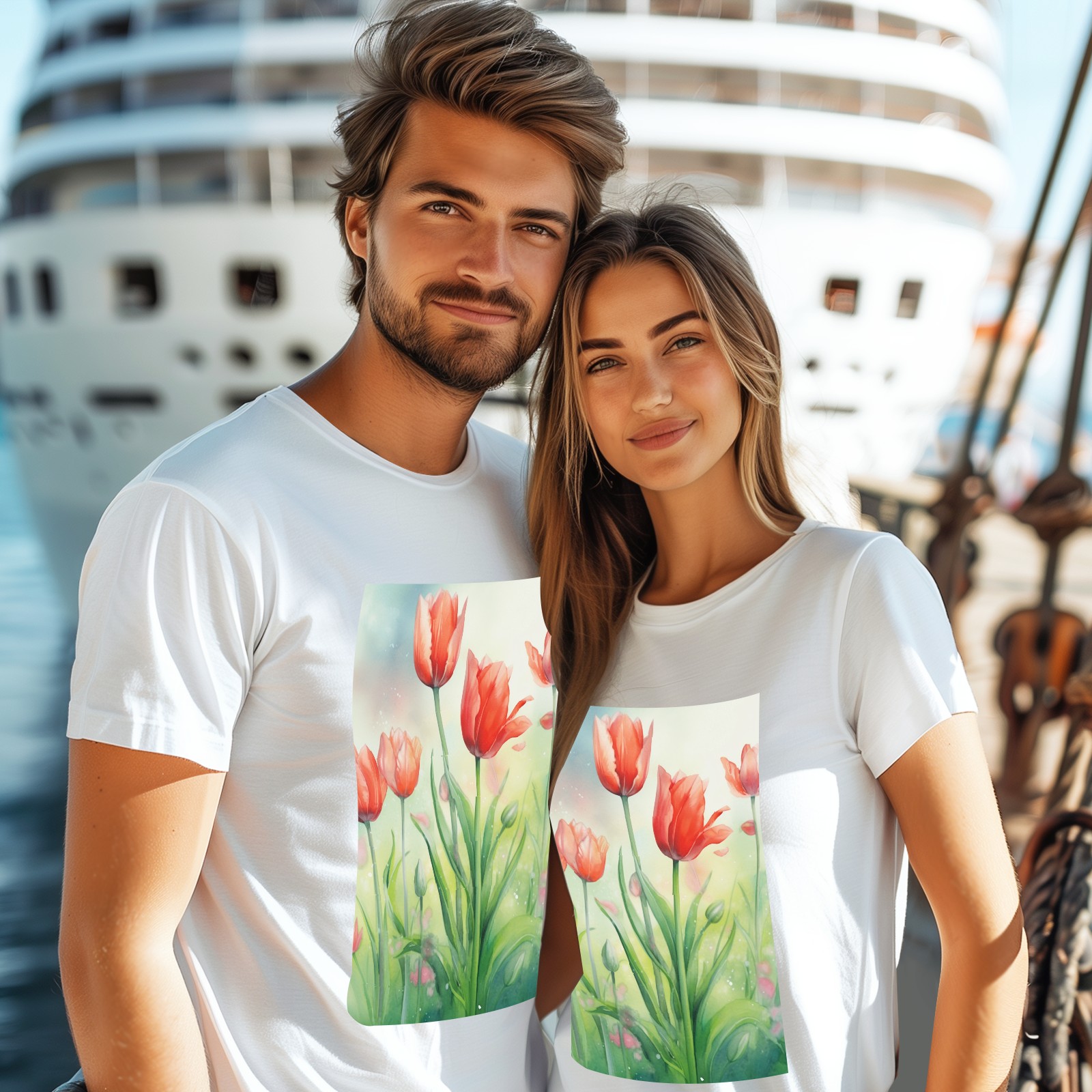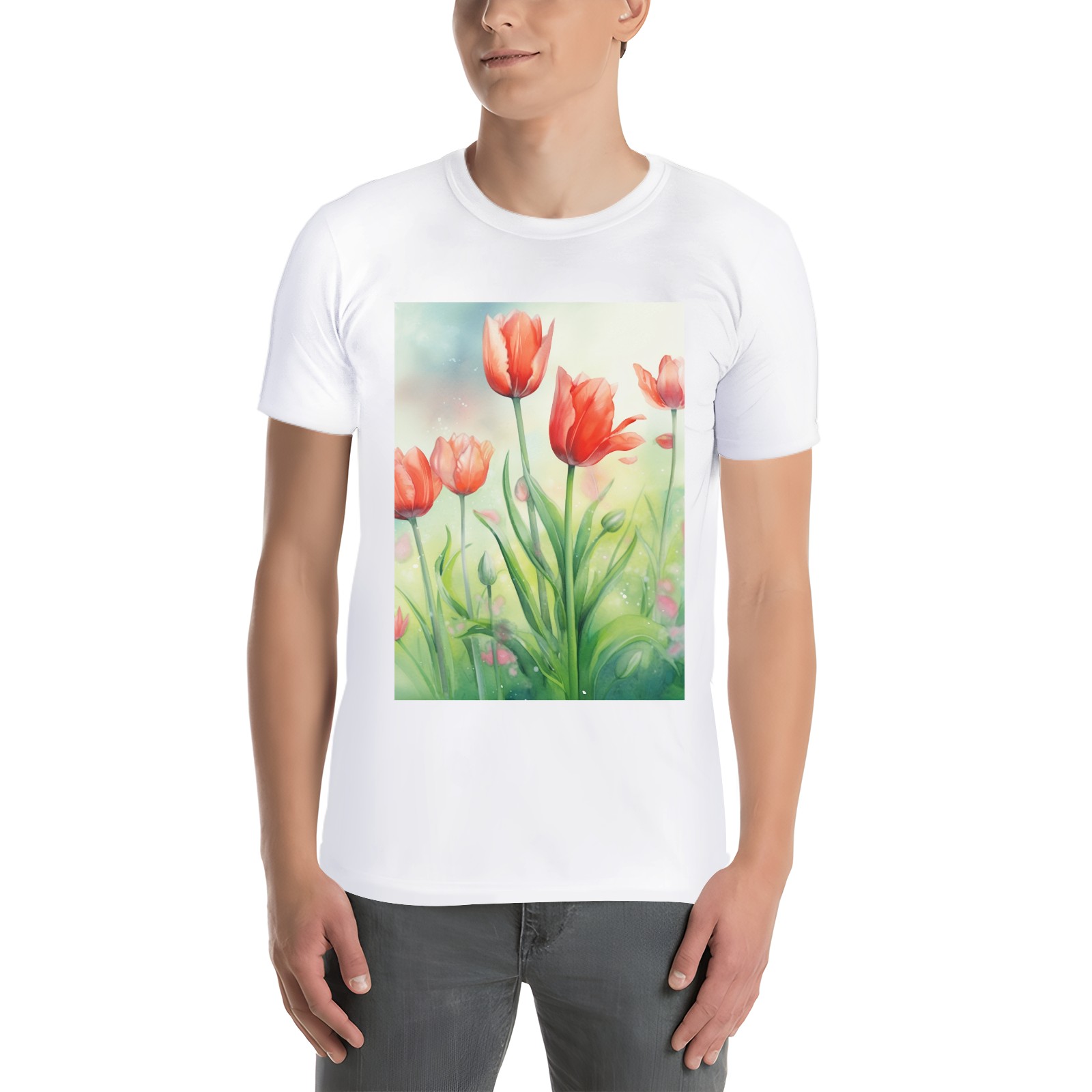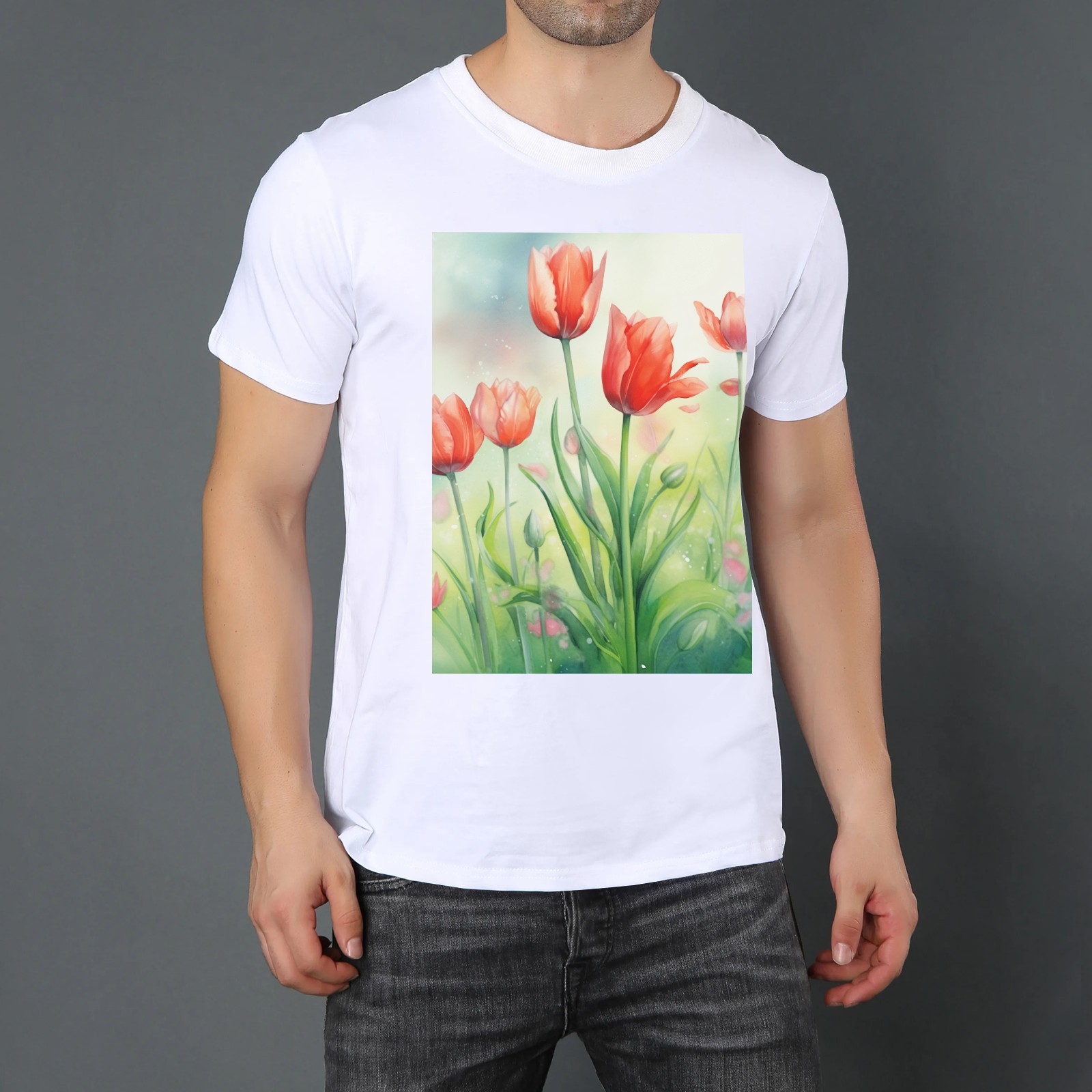 Basic Oversize Tees For WomenSpring Flowers (2) Loose Boyfriend Shirts Casual Blouse round neck
