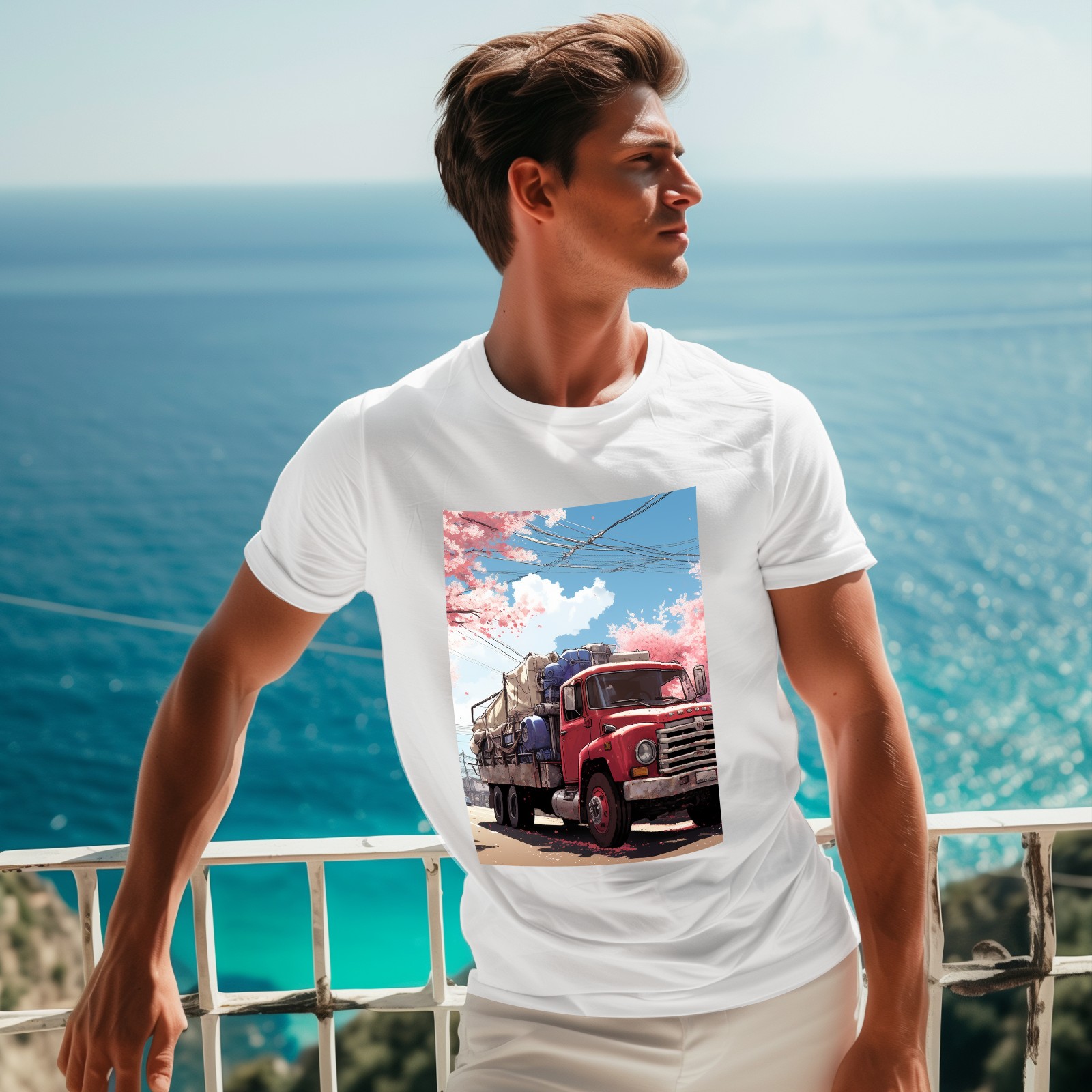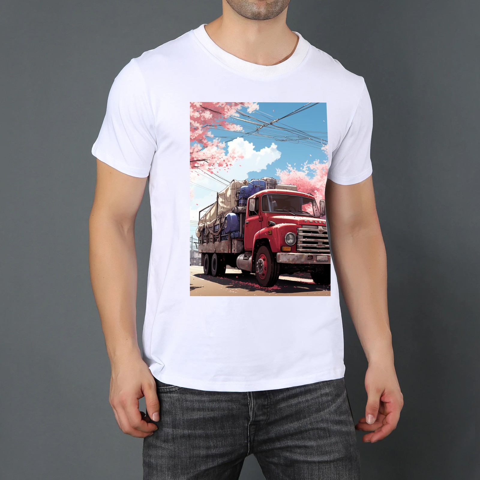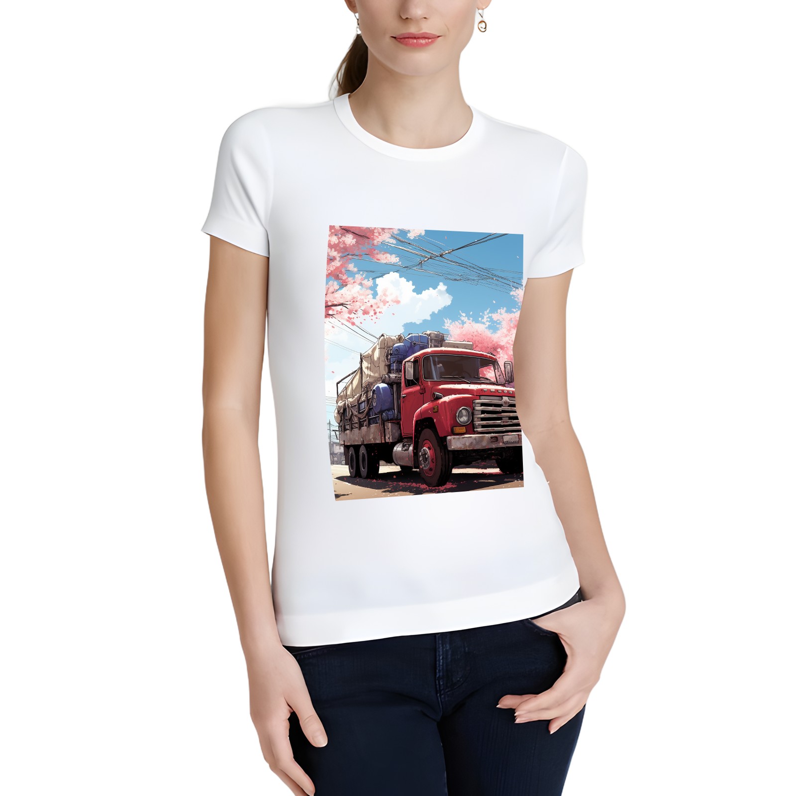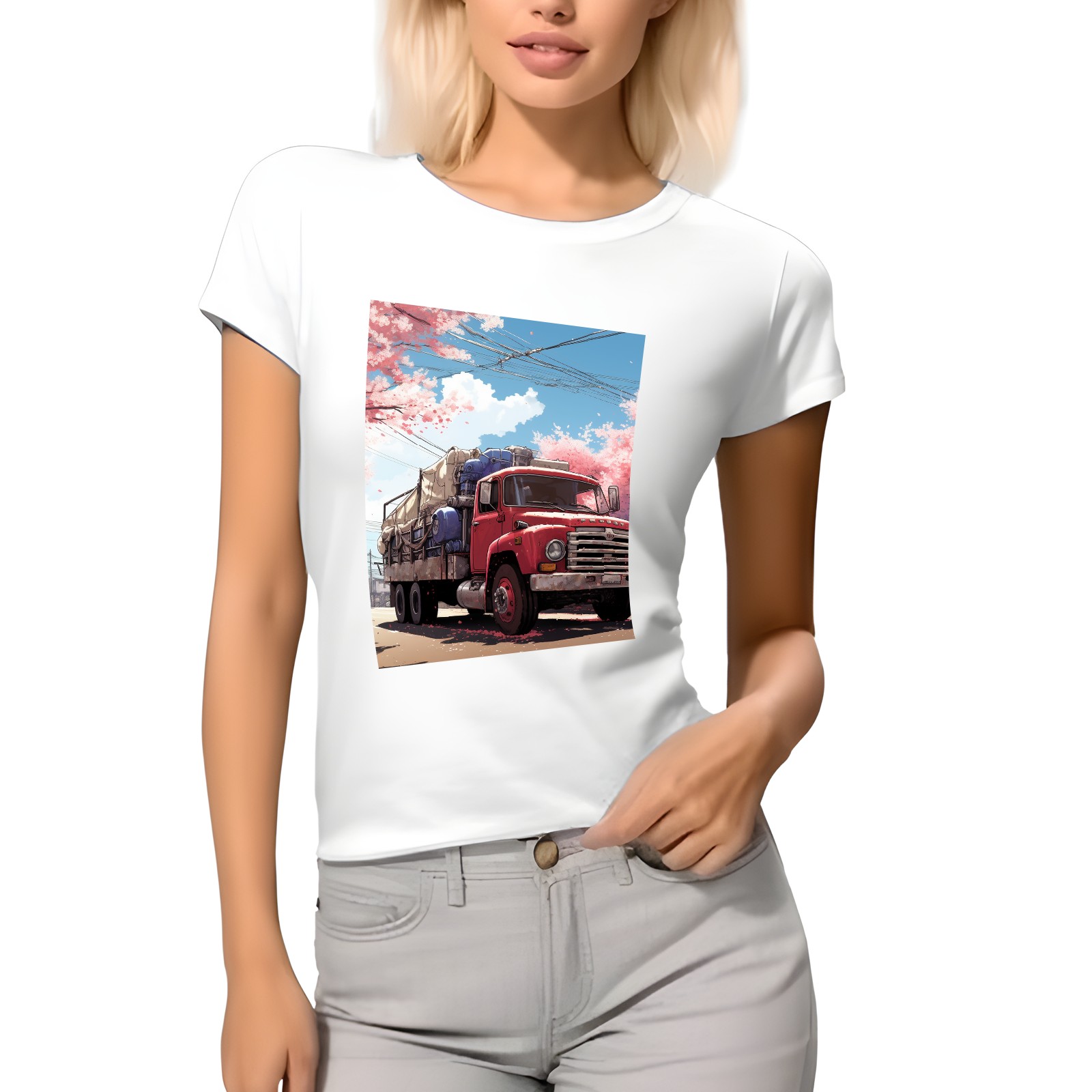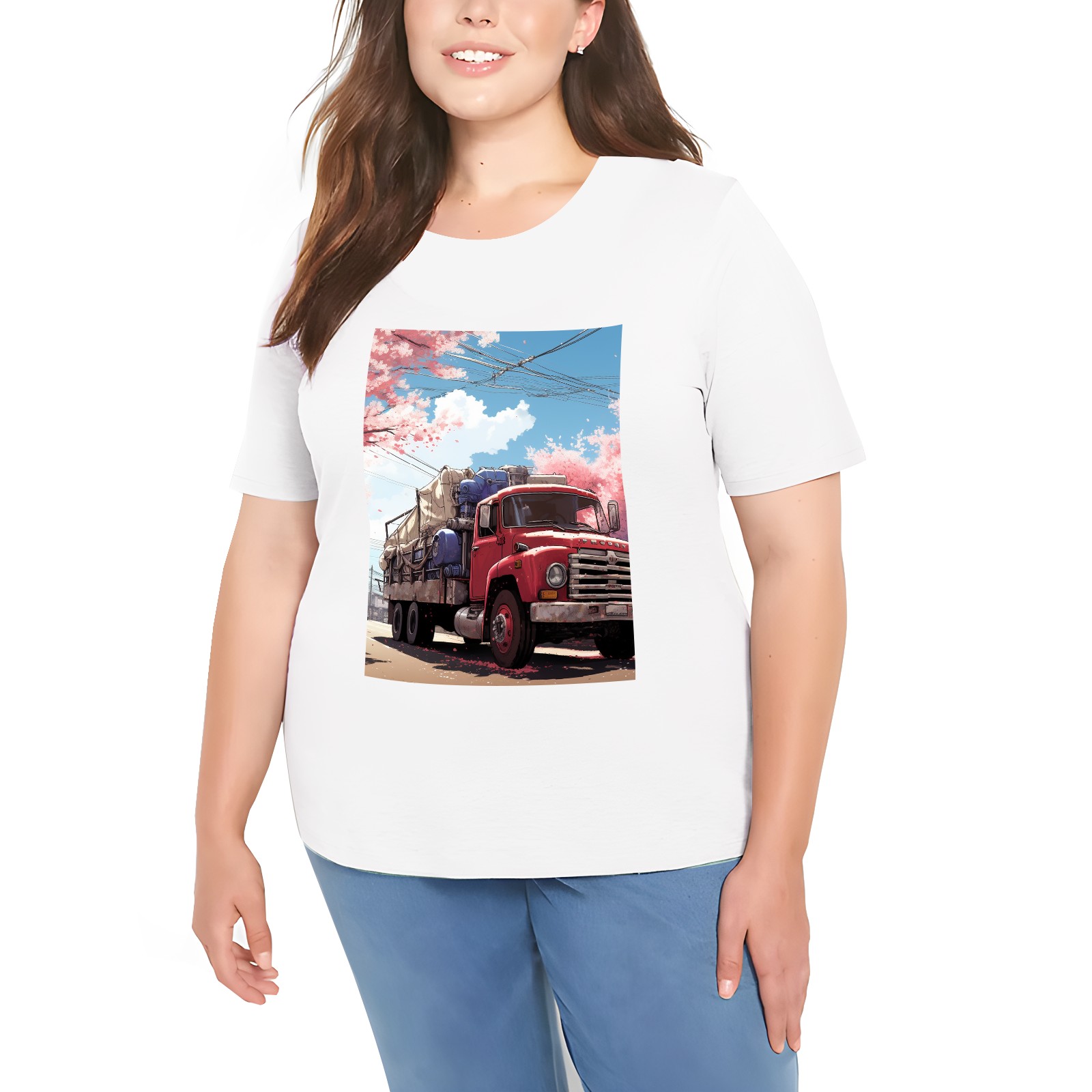 Basic Oversize Tees For Women_bjkj_the_truck_is_parked_on_the_road_in_the_style_of_yuko_shim_bfca0cf3-b809-43d3-a508-6c9661c98495 Loose Boyfriend Shirts Casual Blouse round neck