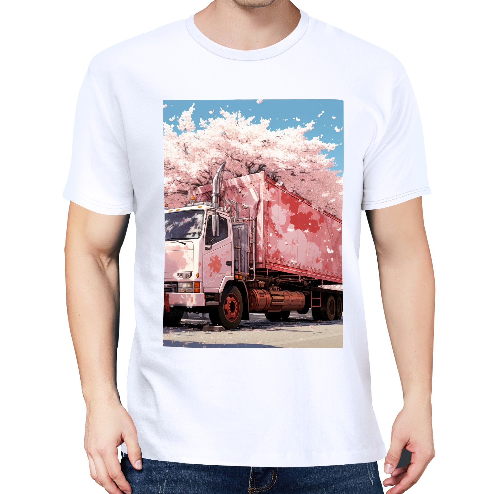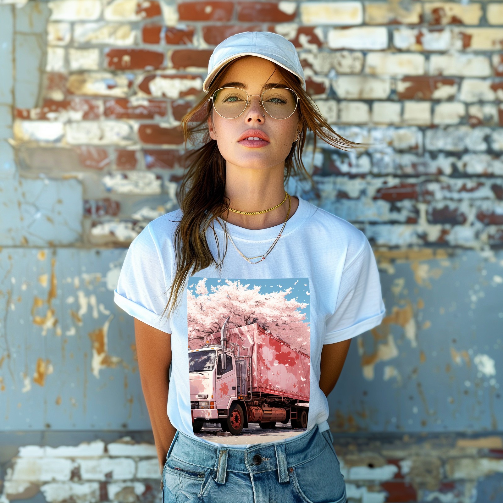 Basic Oversize Tees For Women_bjkj_the_truck_is_parked_on_the_road_in_the_style_of_yuko_shim_94ce17f0-d6f3-4284-8989-fc10335646ff Loose Boyfriend Shirts Casual Blouse round neck