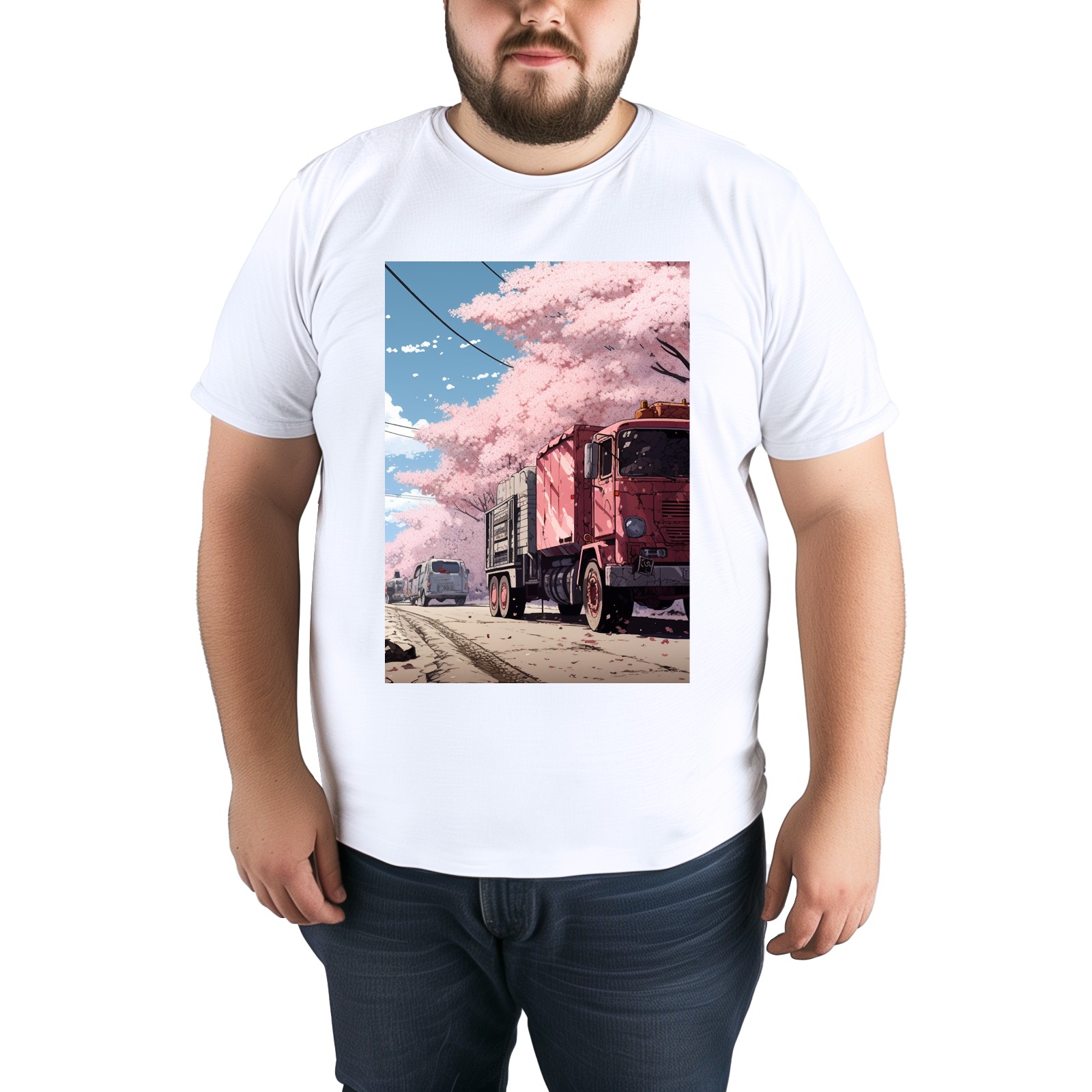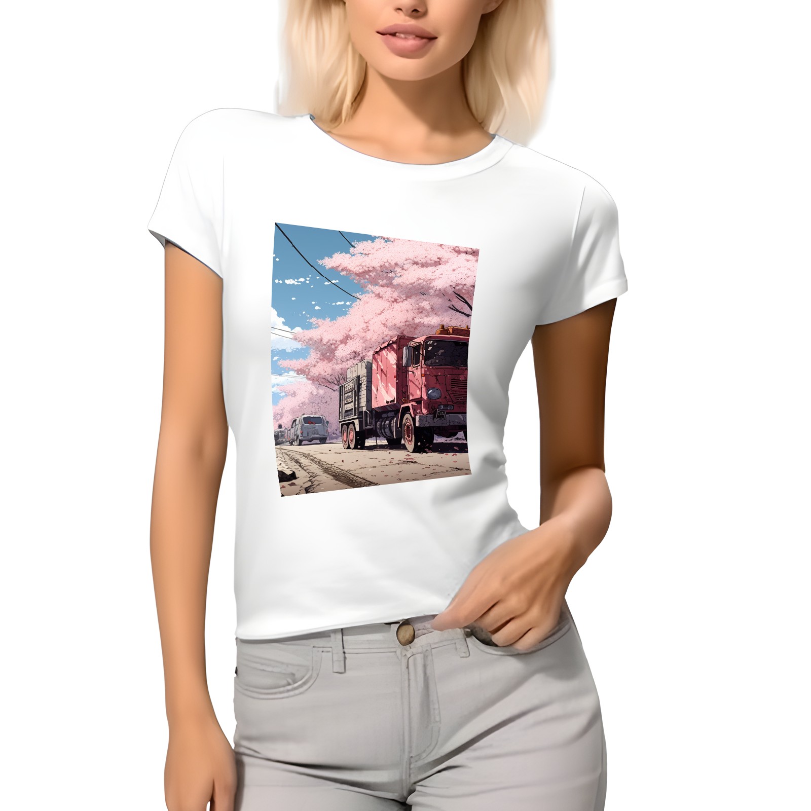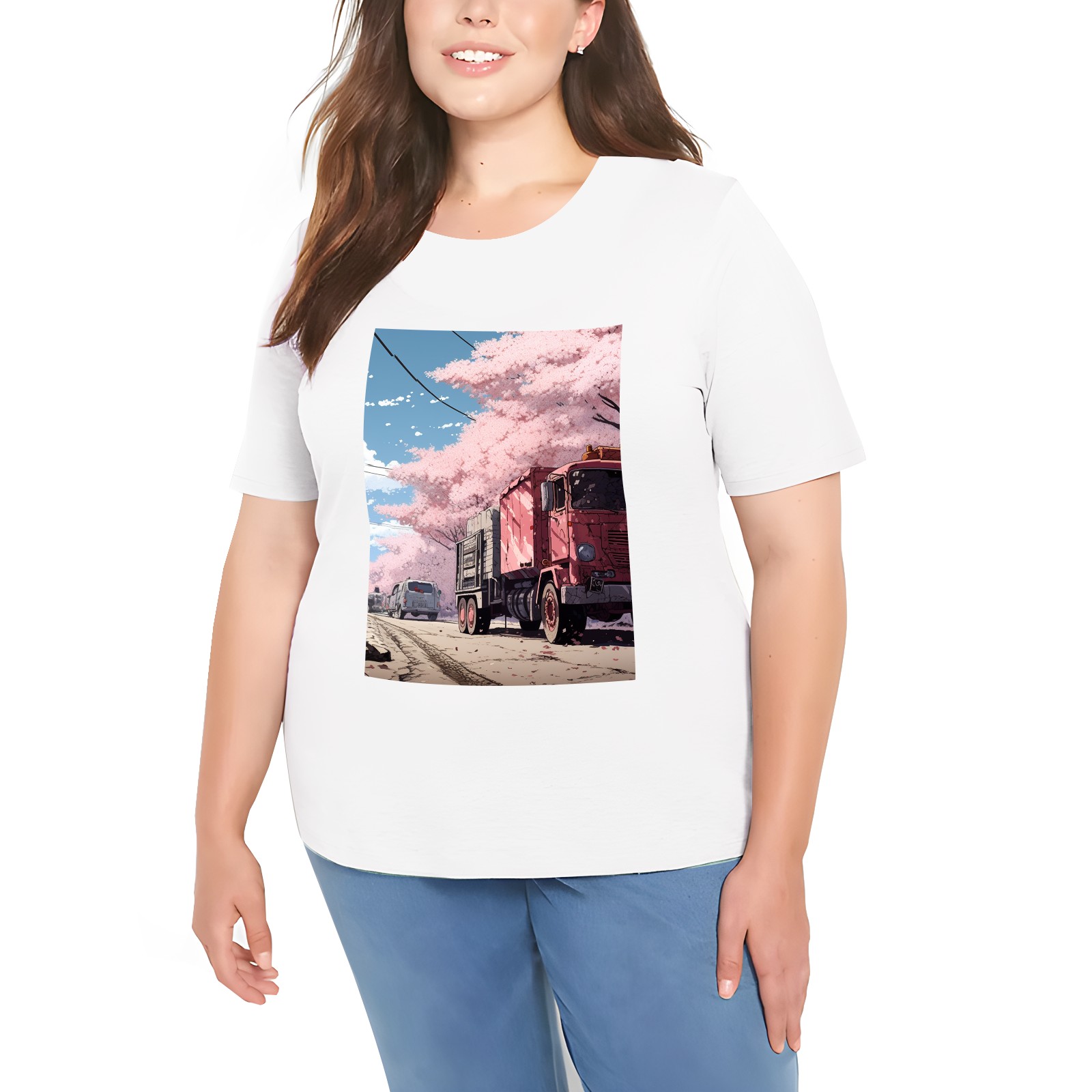 Basic Oversize Tees For Women_bjkj_the_truck_is_parked_on_the_road_in_the_style_of_yuko_sh_c87b2609-a355-4f61-8867-01dd2df7d668_0 Loose Boyfriend Shirts Casual Blouse round neck