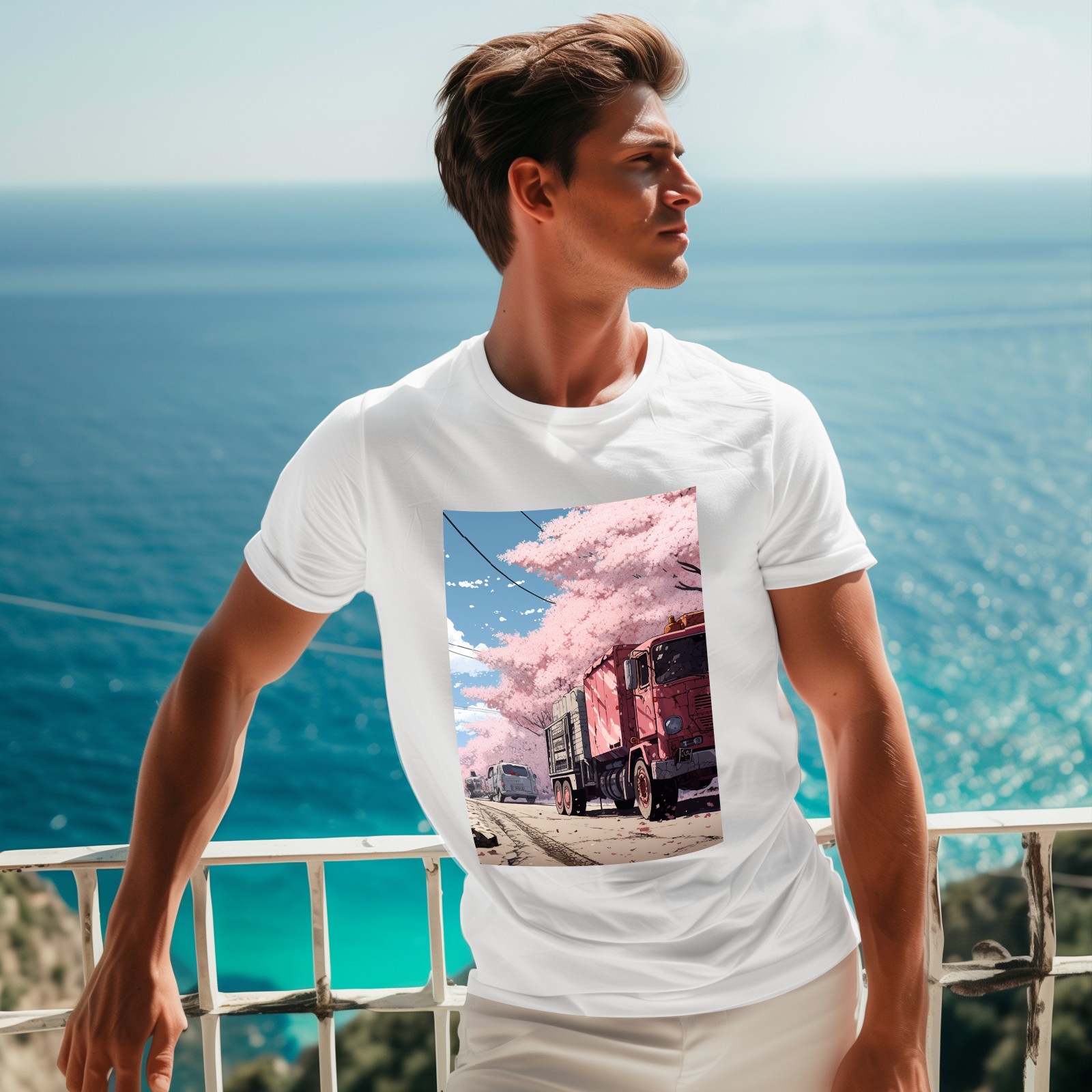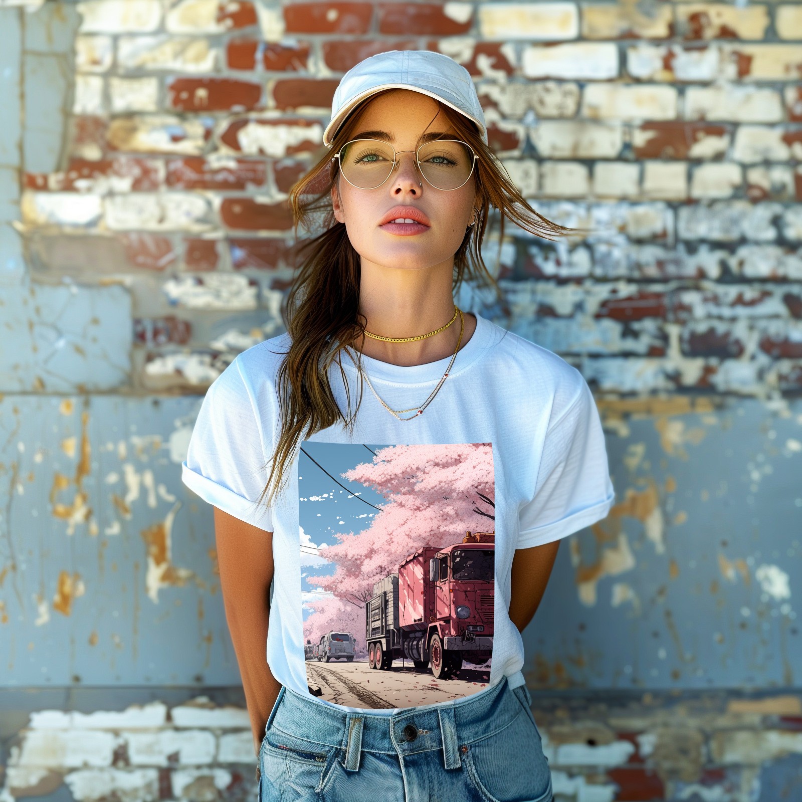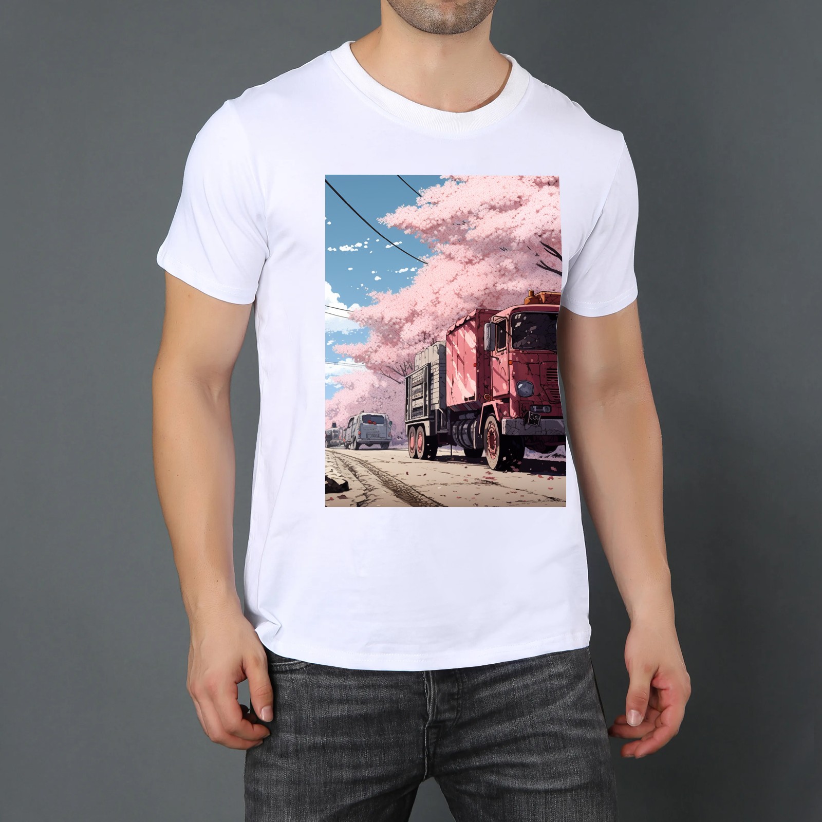 Basic Oversize Tees For Women_bjkj_the_truck_is_parked_on_the_road_in_the_style_of_yuko_sh_c87b2609-a355-4f61-8867-01dd2df7d668_0 Loose Boyfriend Shirts Casual Blouse round neck