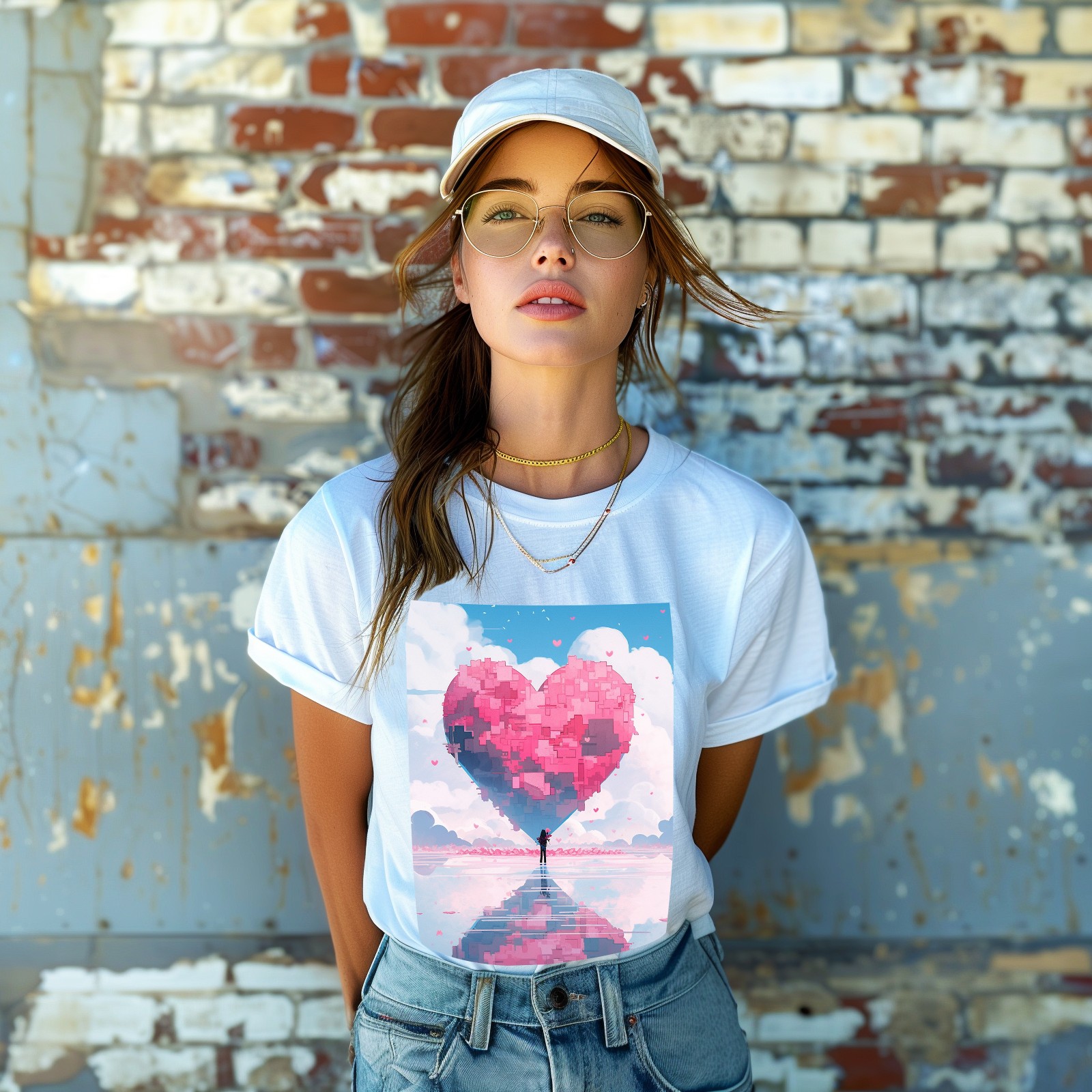 Basic Oversize Tees For Women_bjkj_the_image_depicts_a_man_looking_at_a_giant_heart_in_the_3a492f51-dbc6-426e-8f4b-a0bdddeed976_0 Loose Boyfriend Shirts Casual Blouse round neck