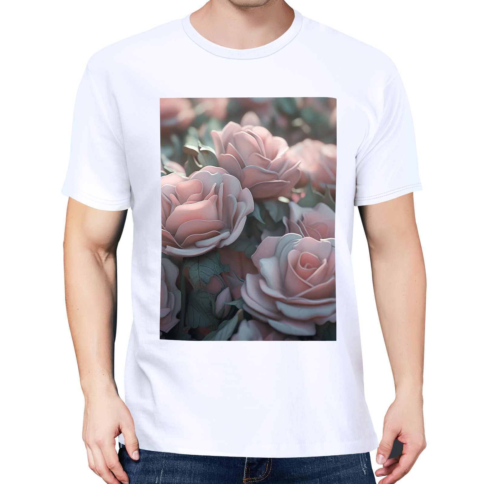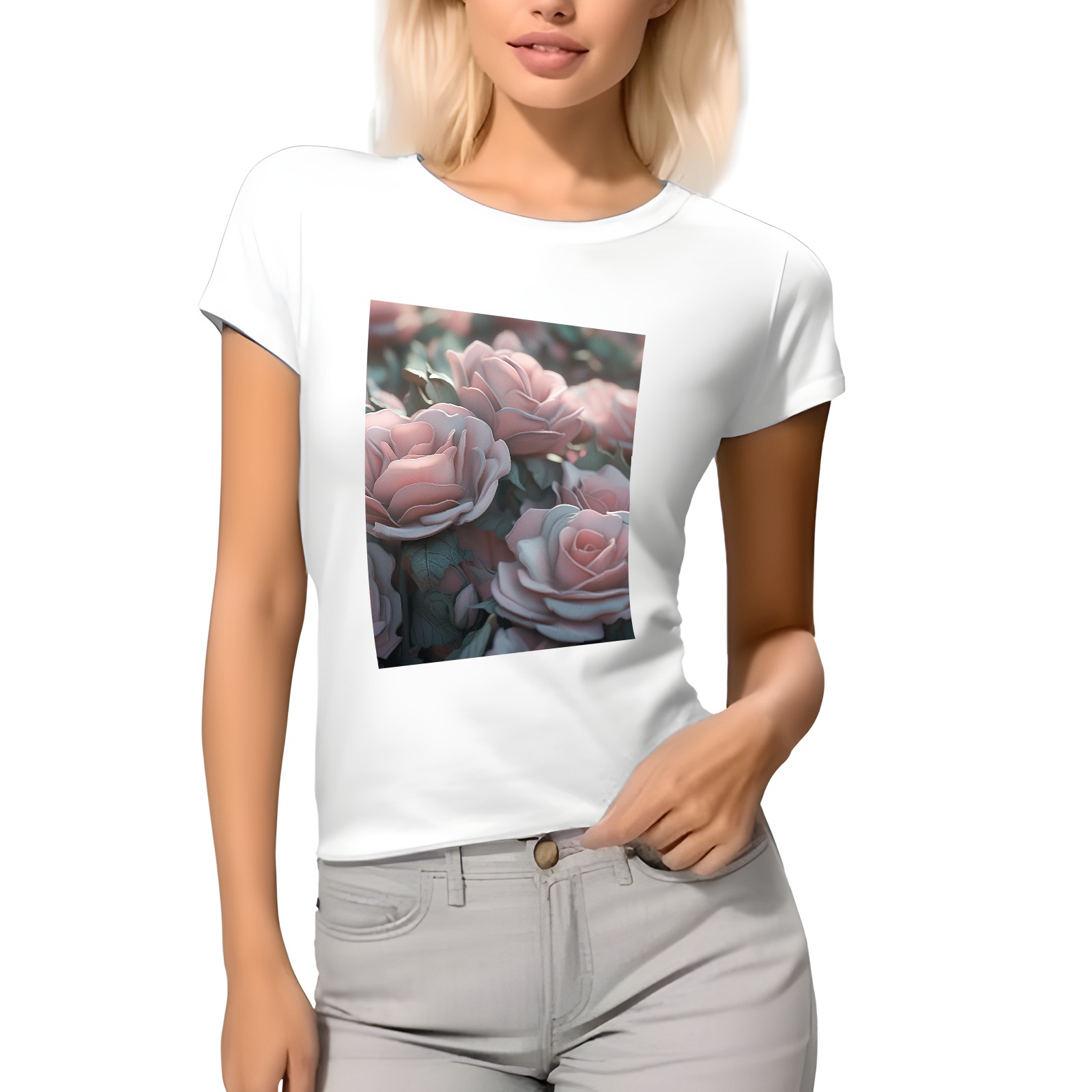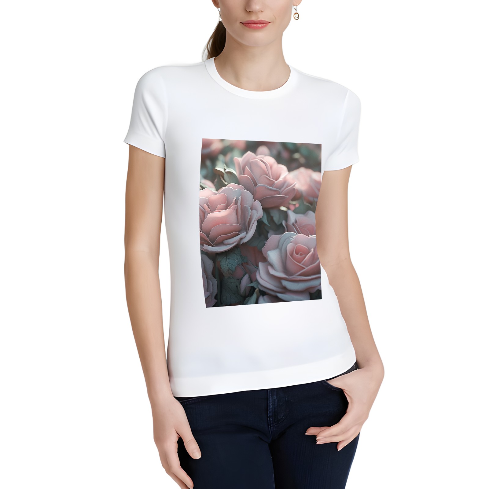 Basic Oversize Tees For Women_bjkj_pink_roses_of_various_sizes_in_the_style_of_sculpted_zeis_63be1be3-c95d-47a8-bdd9-8de2b16d88b4 Loose Boyfriend Shirts Casual Blouse round neck