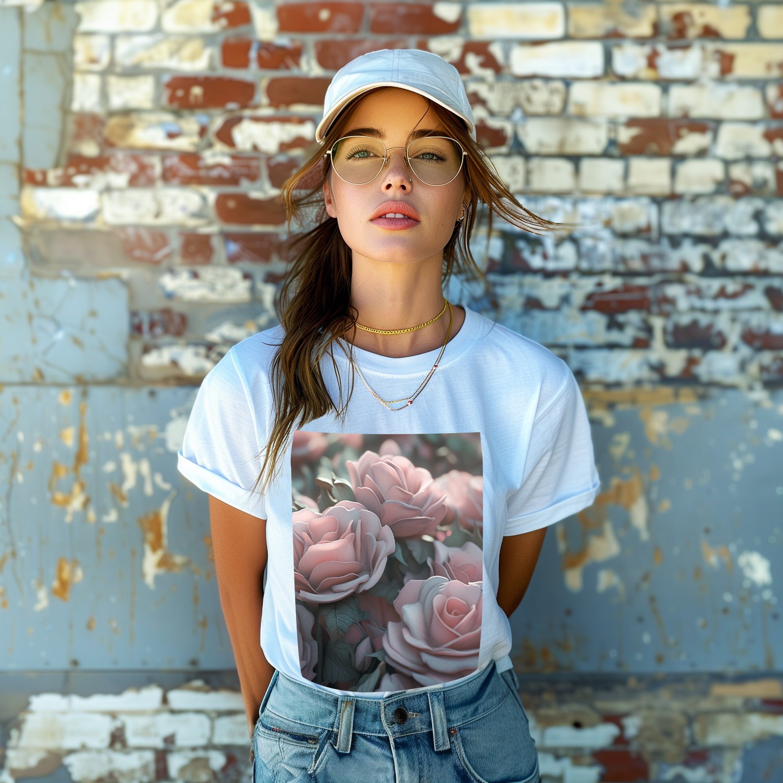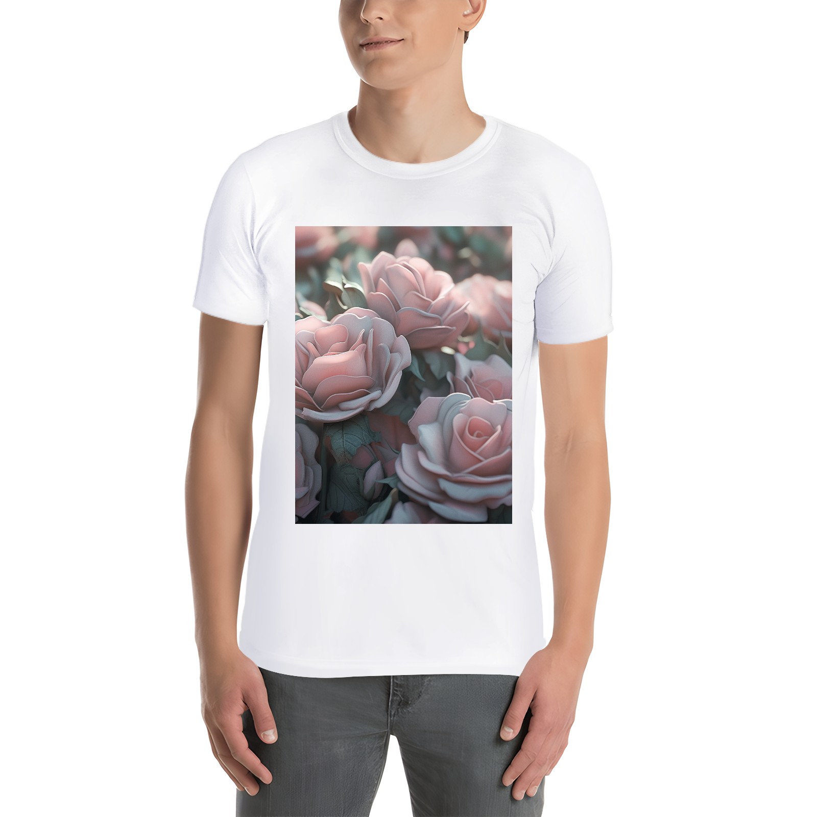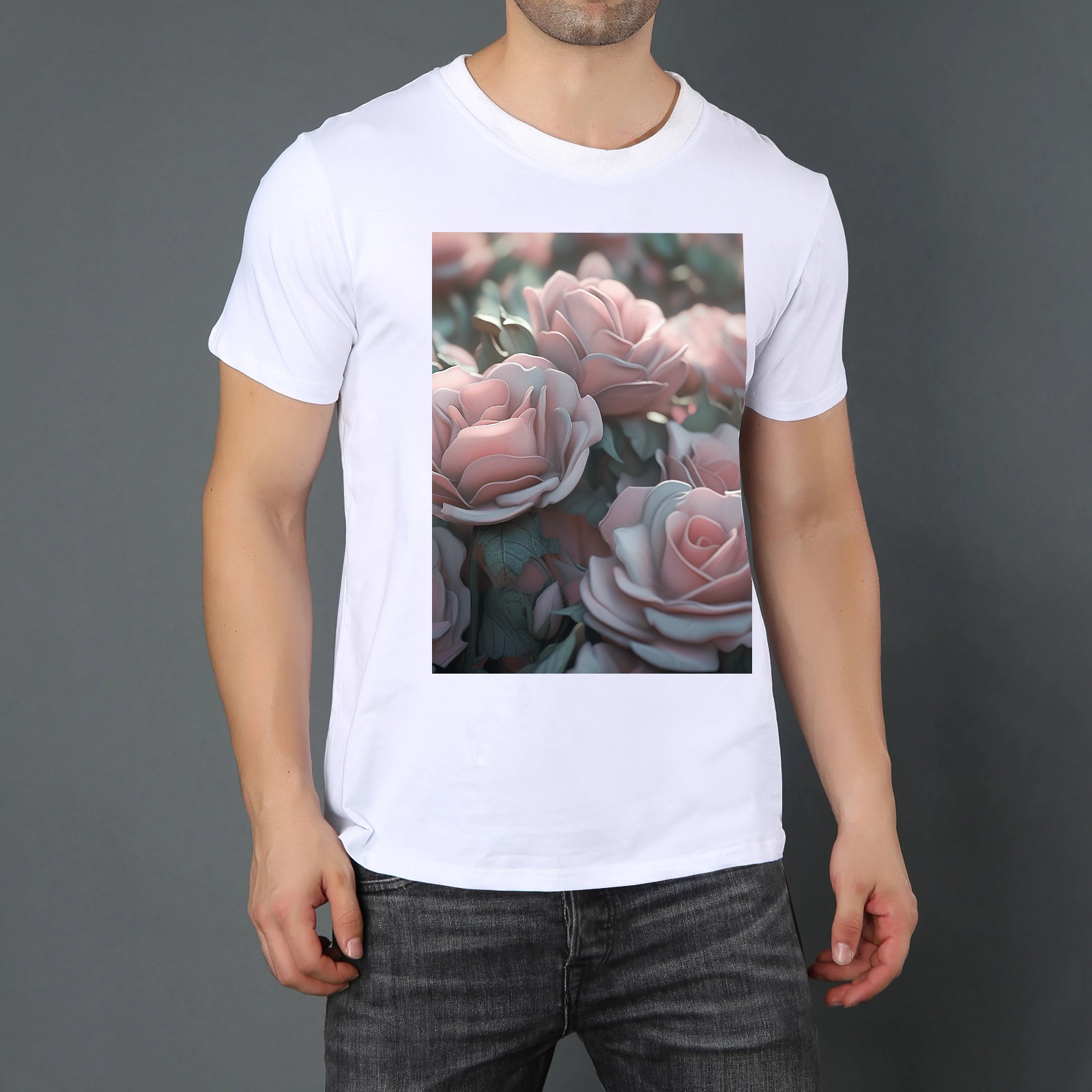 Basic Oversize Tees For Women_bjkj_pink_roses_of_various_sizes_in_the_style_of_sculpted_zeis_63be1be3-c95d-47a8-bdd9-8de2b16d88b4 Loose Boyfriend Shirts Casual Blouse round neck