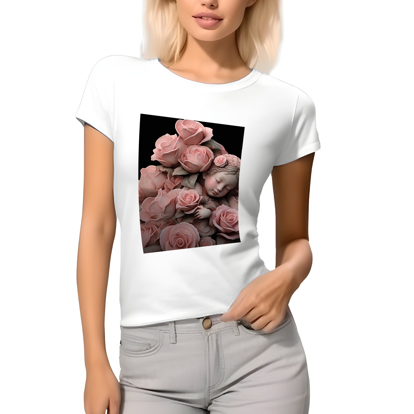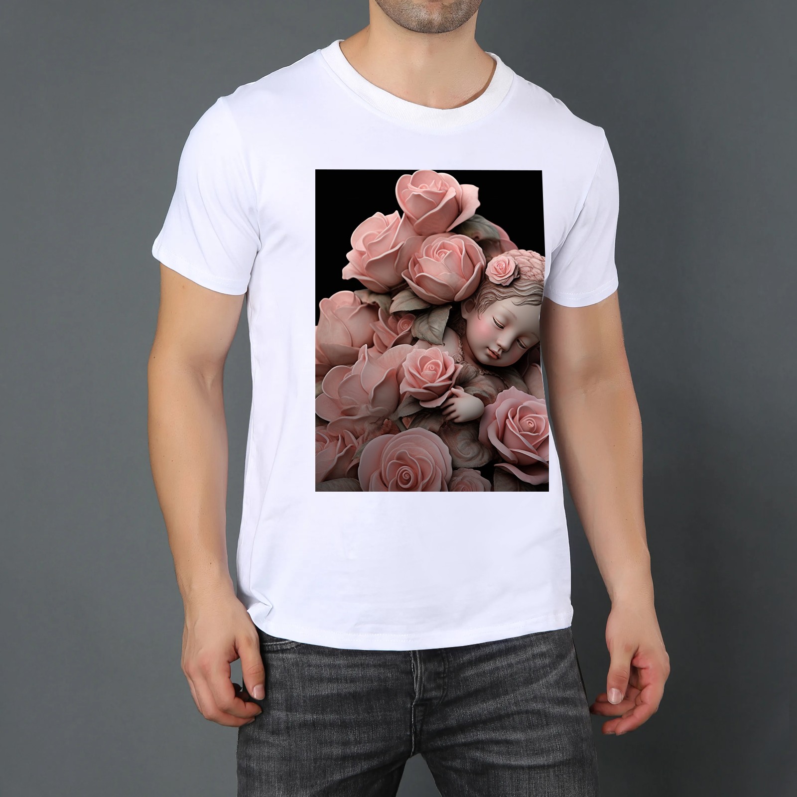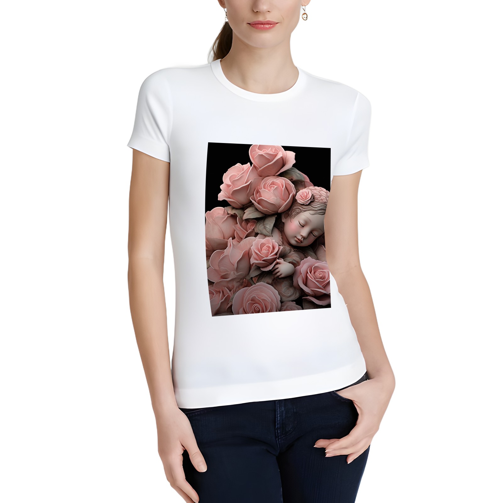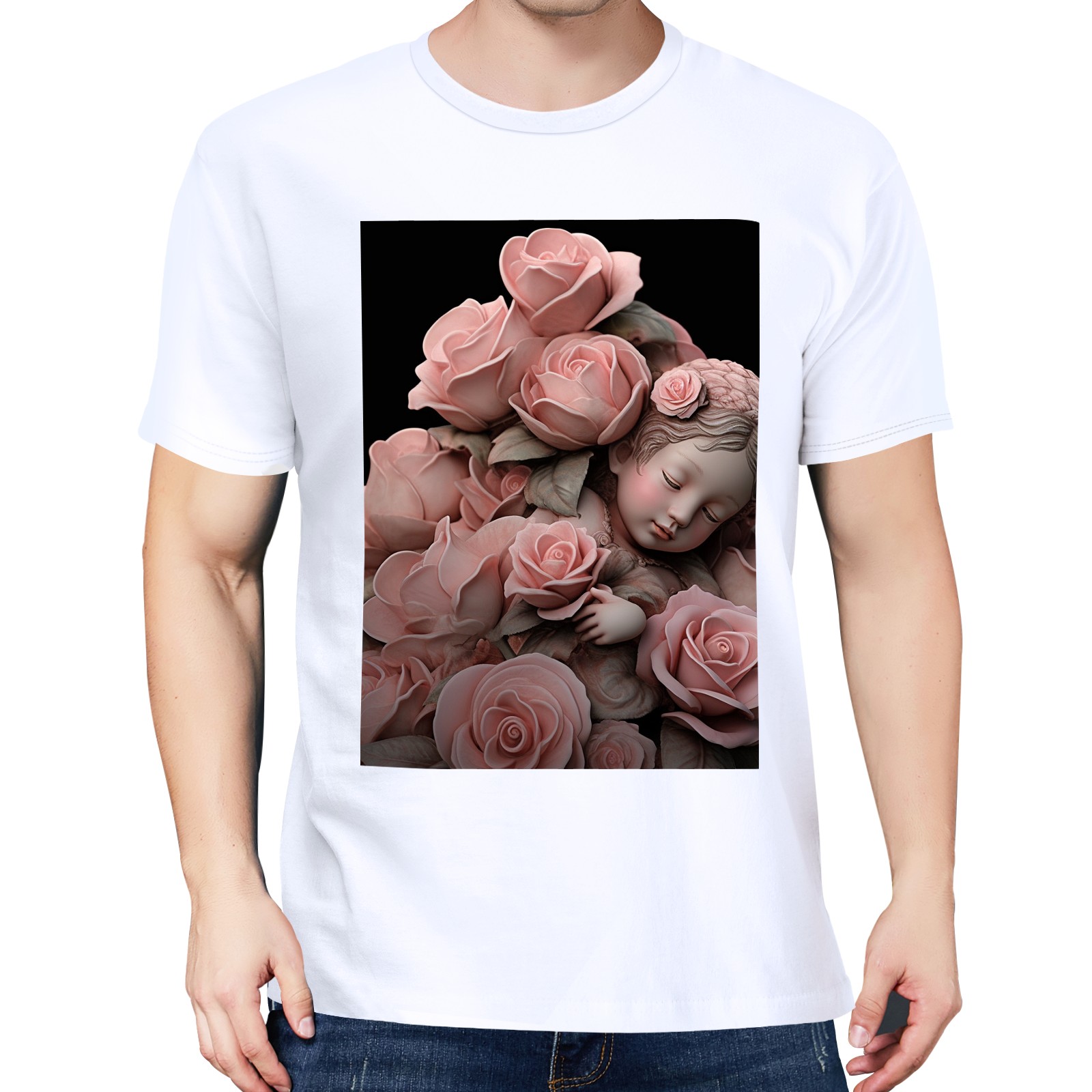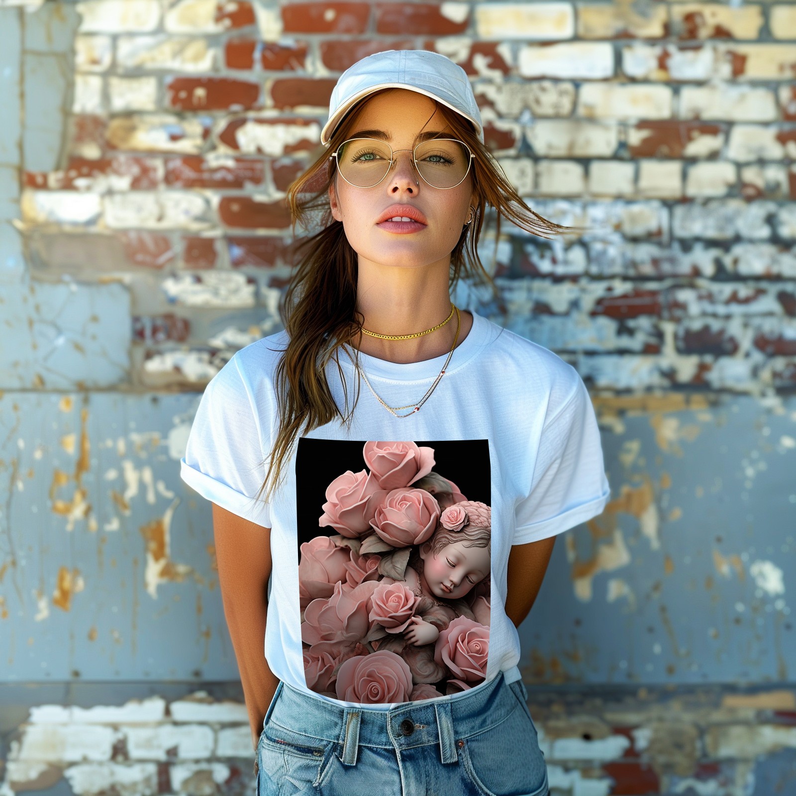 Basic Oversize Tees For Women_bjkj_pink_roses_of_various_sizes_in_the_style_of_sculpted_zeis_5a287a6e-6f4a-4bdf-88f8-13db04bc2f61 Loose Boyfriend Shirts Casual Blouse round neck