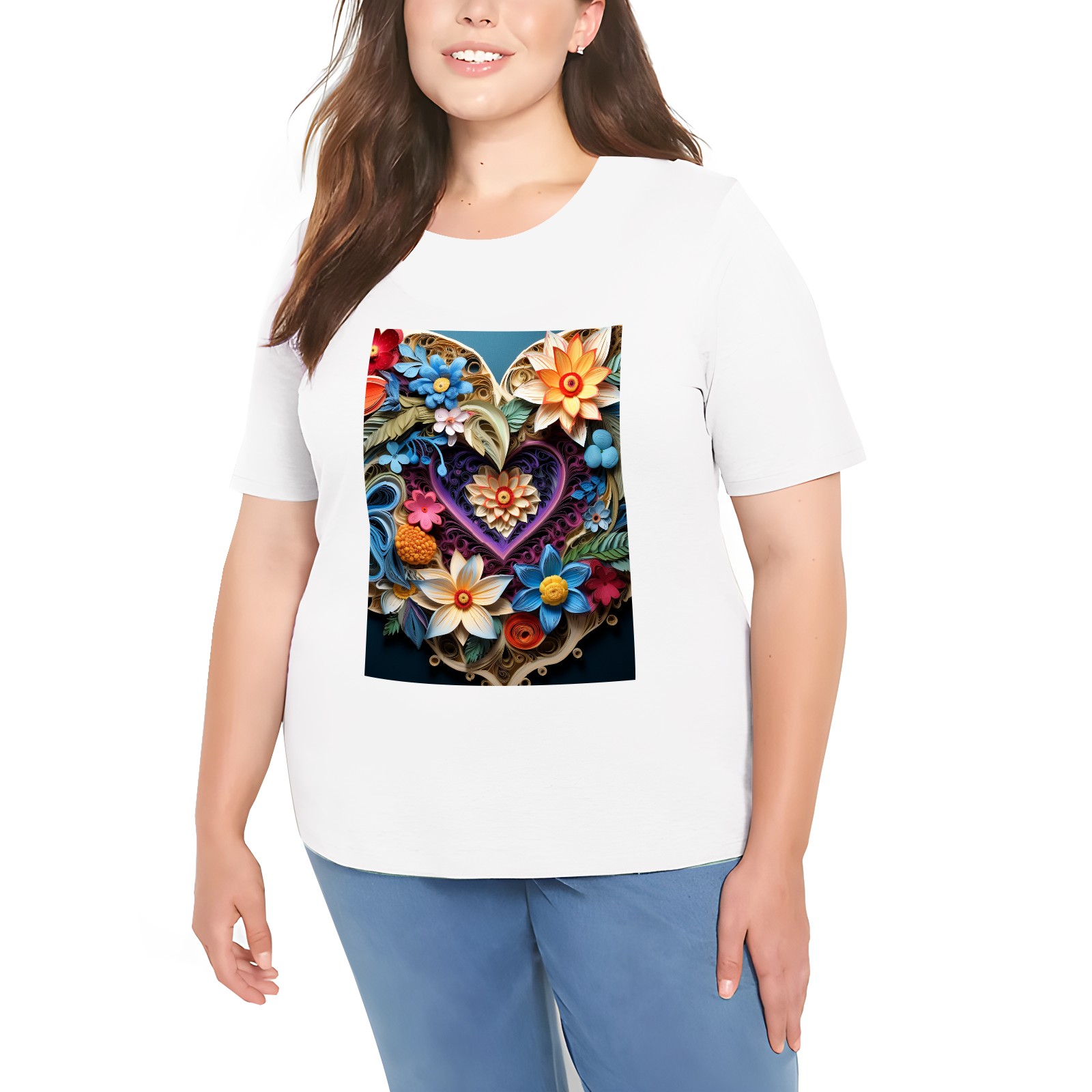 Basic Oversize Tees For Women_bjkj_flower_art_design_koilova_koilova_in_the_centre_of_a_hear_dd05d68b-79eb-4ffd-93b6-69ca22ee8bbe Loose Boyfriend Shirts Casual Blouse round neck