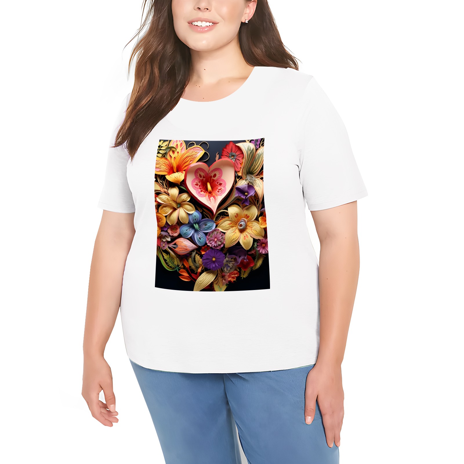 Basic Oversize Tees For Women_bjkj_flower_art_design_koilova_koilova_in_the_centre_of_a_he_9959560e-de6f-450c-ab4a-5ac90c46cf8f_2 Loose Boyfriend Shirts Casual Blouse round neck