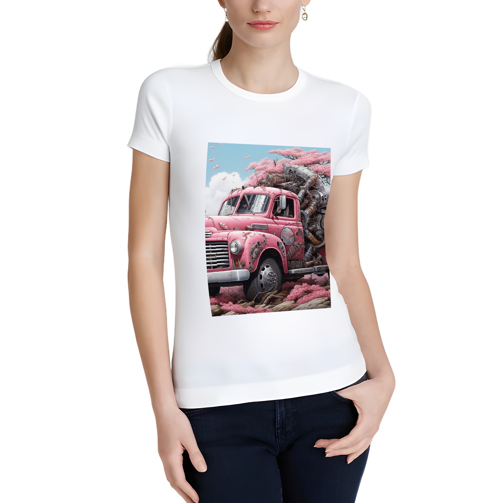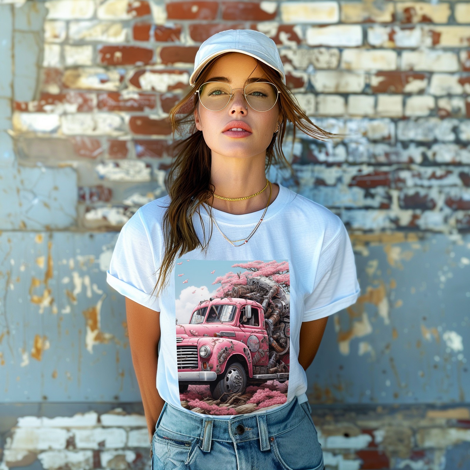 Basic Oversize Tees For Women_bjkj_an_old_truck_in_the_style_of_cherry_blossoms_surreal_cy_f8cade6d-e4a6-4540-a1d6-6d471129c9be_3 Loose Boyfriend Shirts Casual Blouse round neck