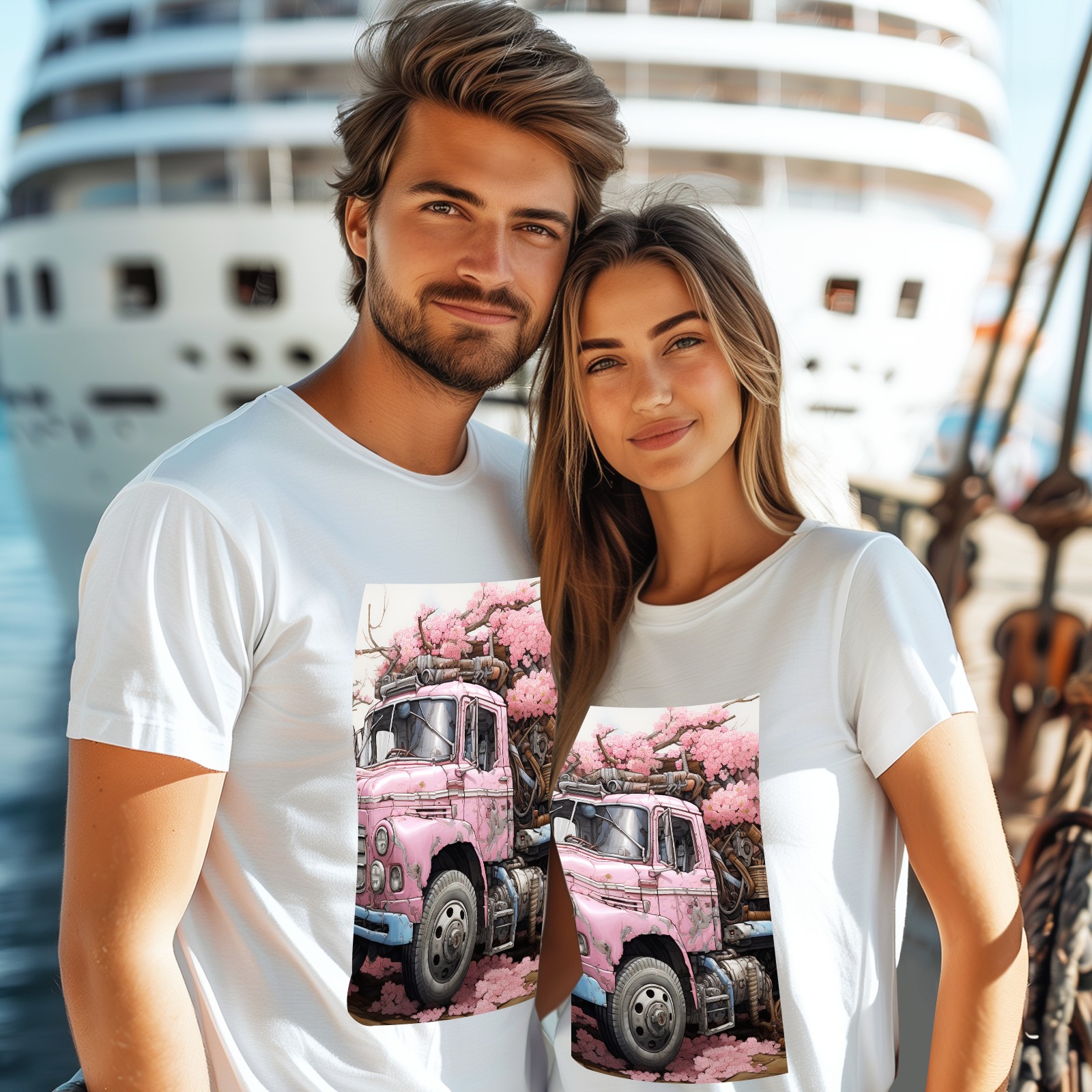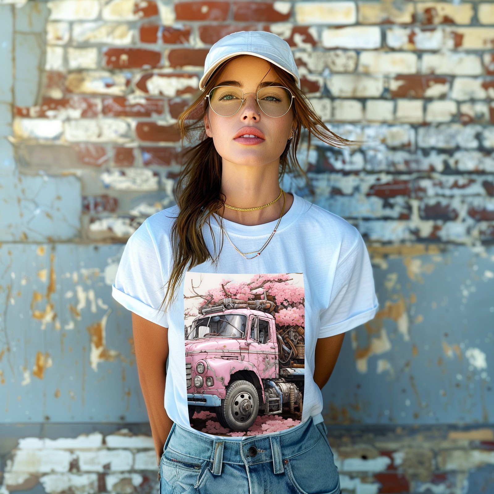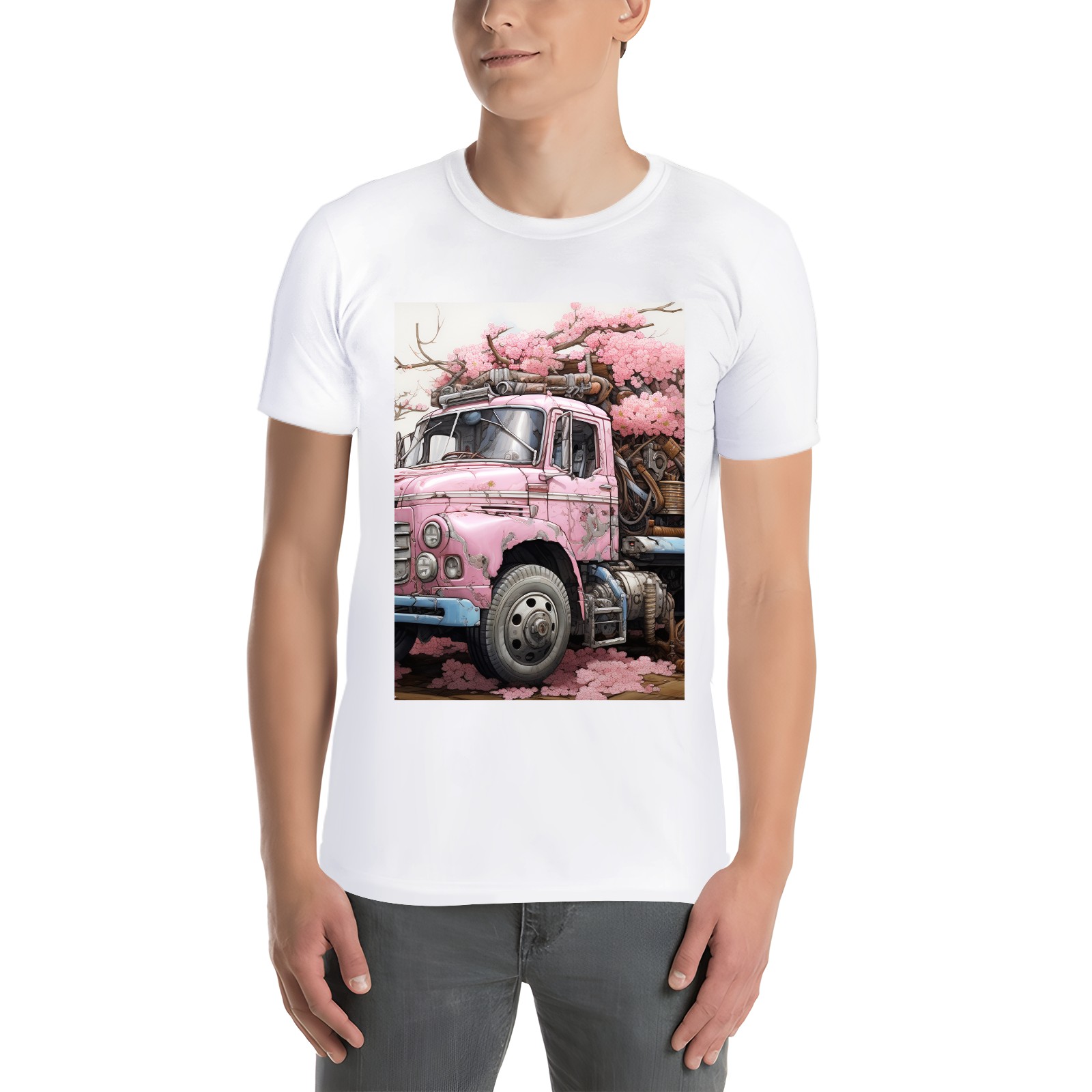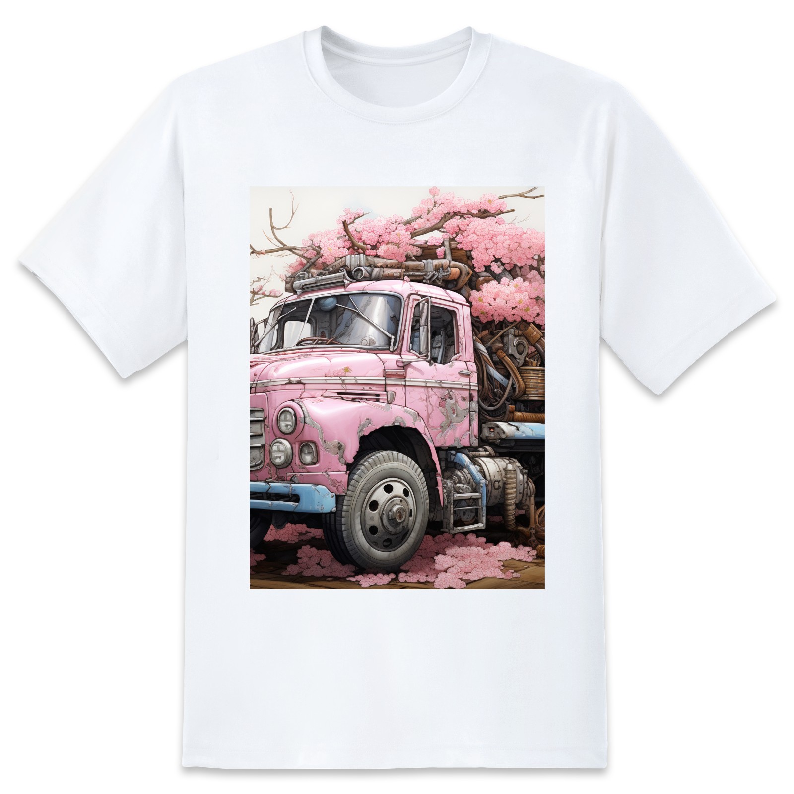 Basic Oversize Tees For Women_bjkj_an_old_truck_in_the_style_of_cherry_blossoms_surreal_cy_f8cade6d-e4a6-4540-a1d6-6d471129c9be_0 Loose Boyfriend Shirts Casual Blouse round neck
