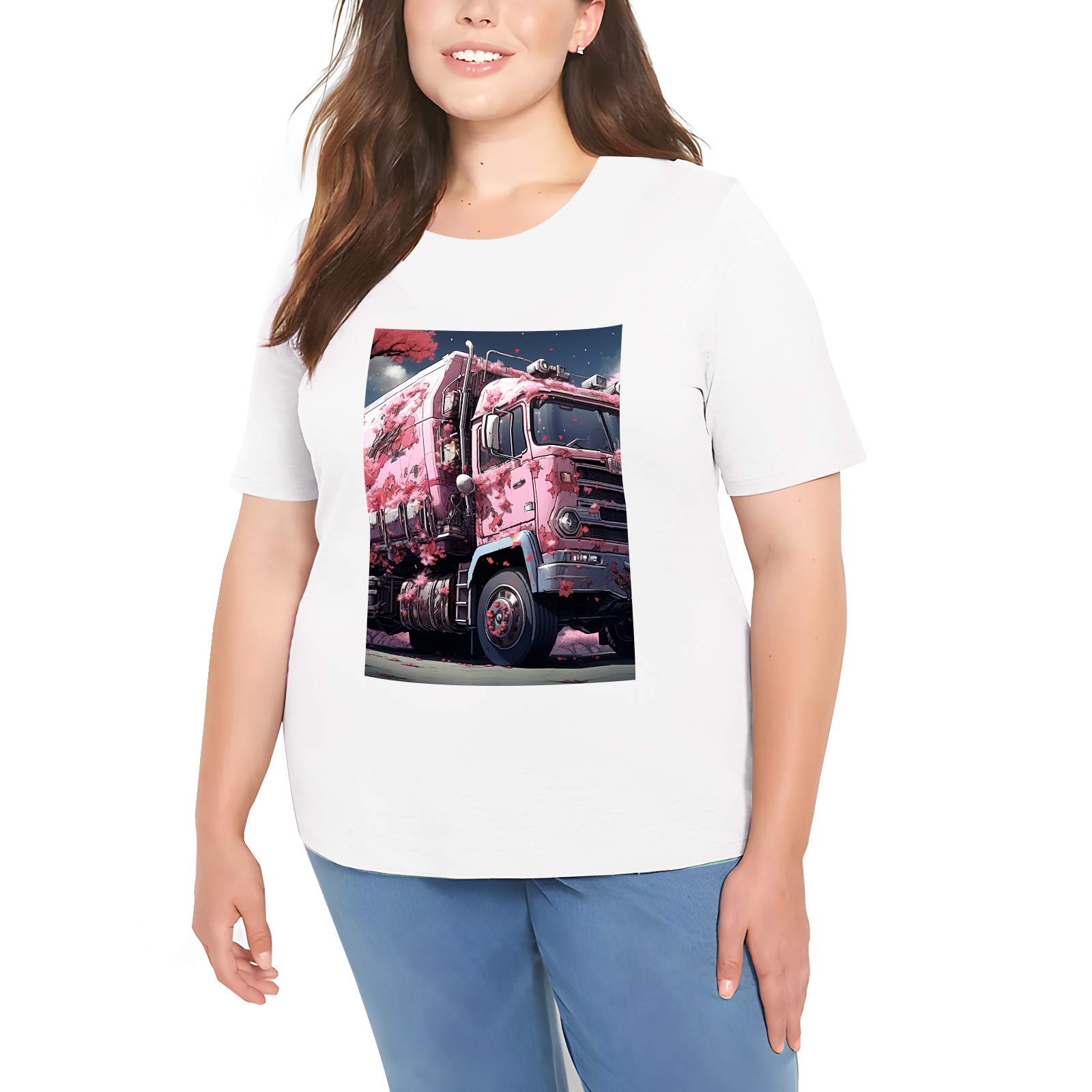 Basic Oversize Tees For Women_bjkj_an_empty_truck_in_the_style_of_cherry_blossoms_detailed_s_fcbe4acb-4dbf-4dc1-9b76-d8d00f306f42 Loose Boyfriend Shirts Casual Blouse round neck