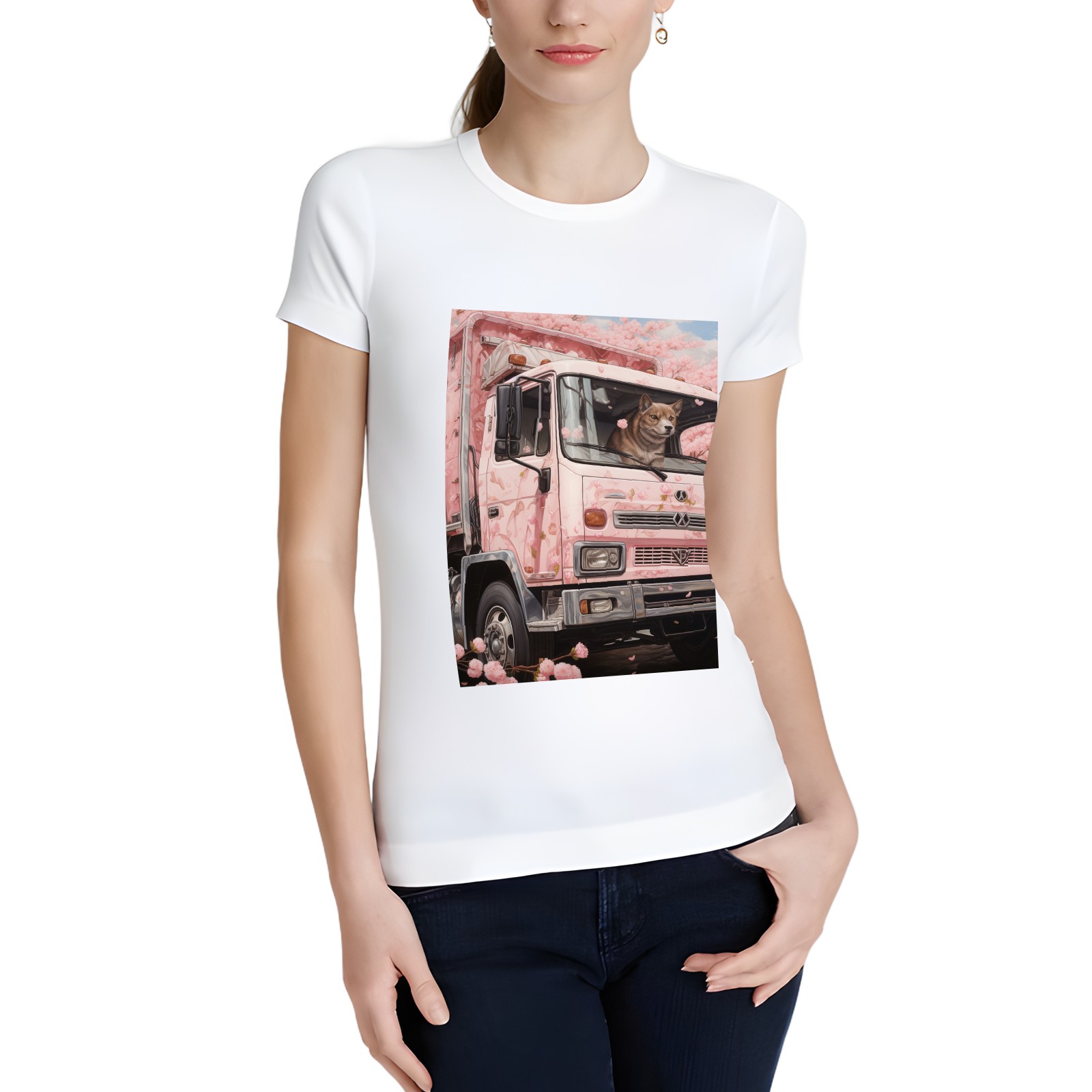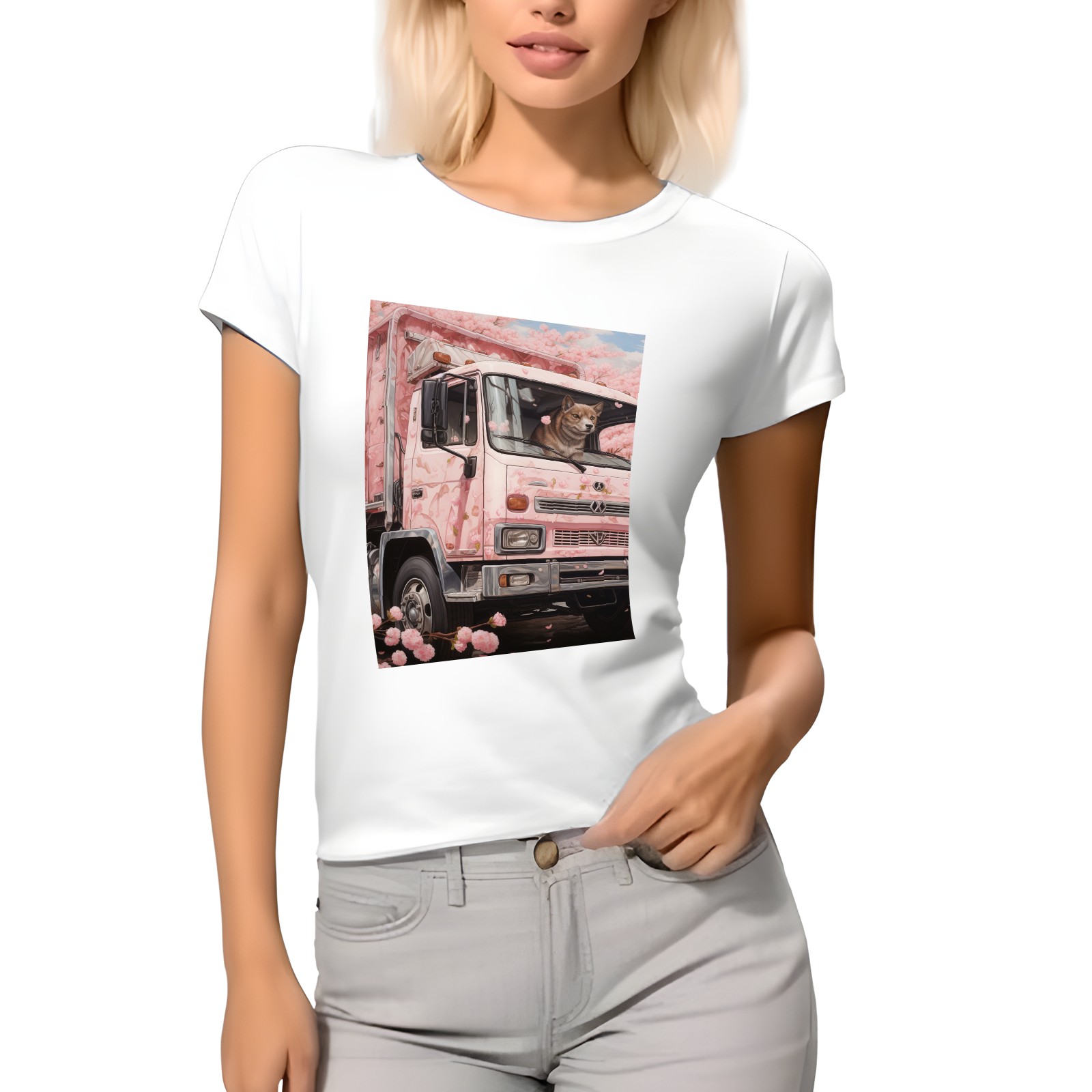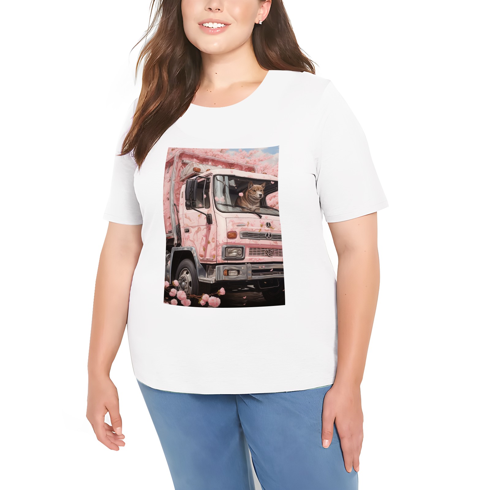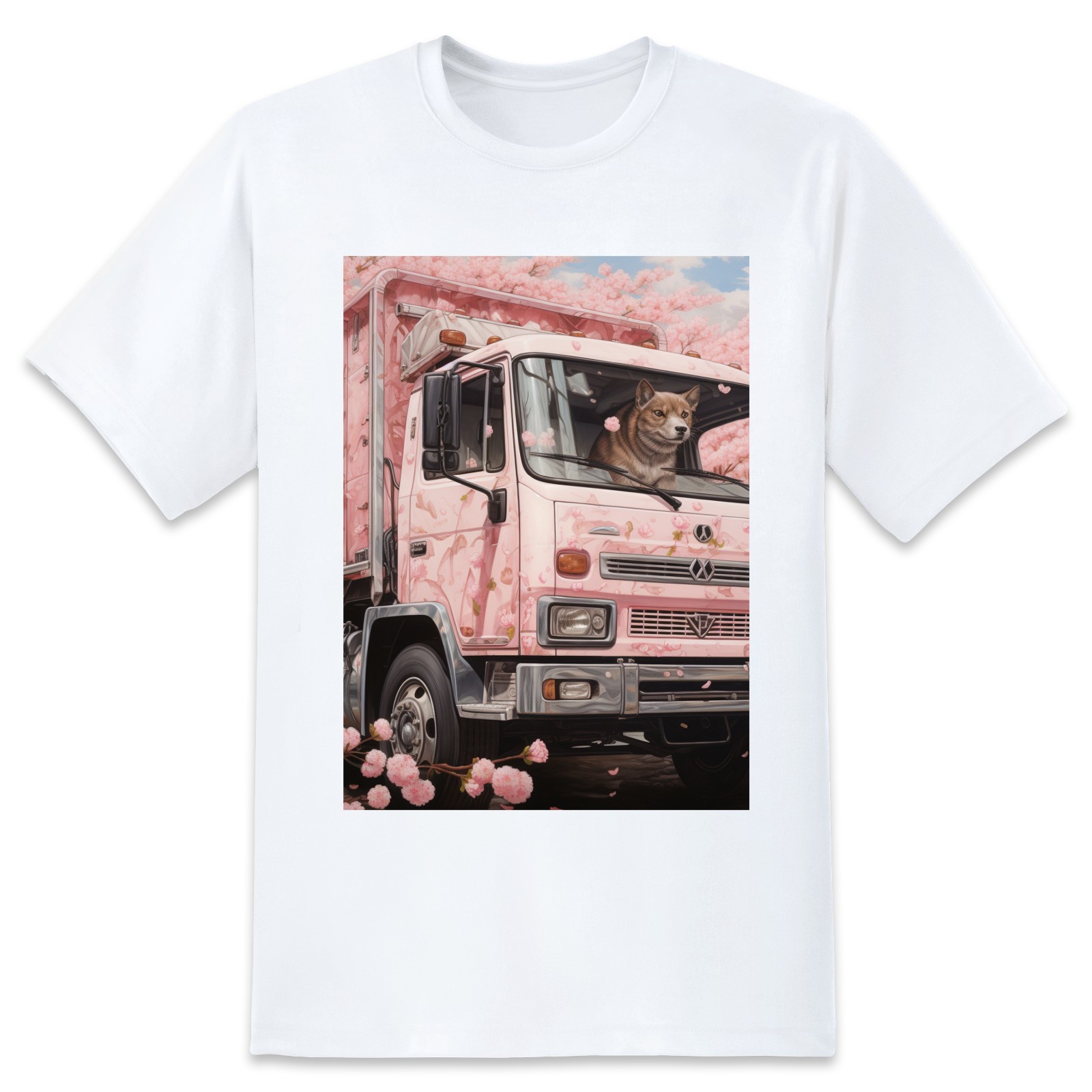 Basic Oversize Tees For Women_bjkj_an_empty_truck_in_the_style_of_cherry_blossoms_detailed_s_d08c0559-b0b2-4d01-bda6-15027c7a76fc Loose Boyfriend Shirts Casual Blouse round neck