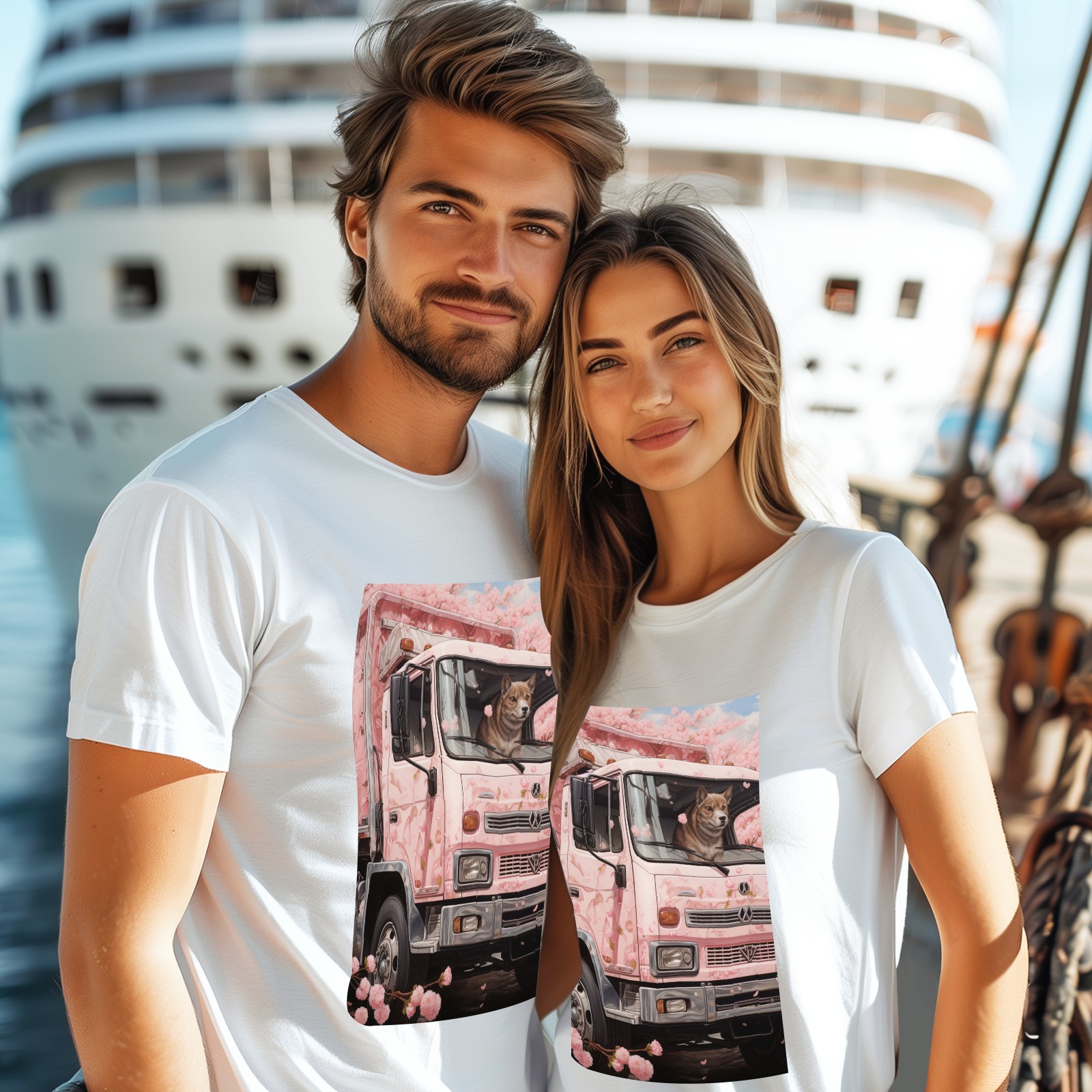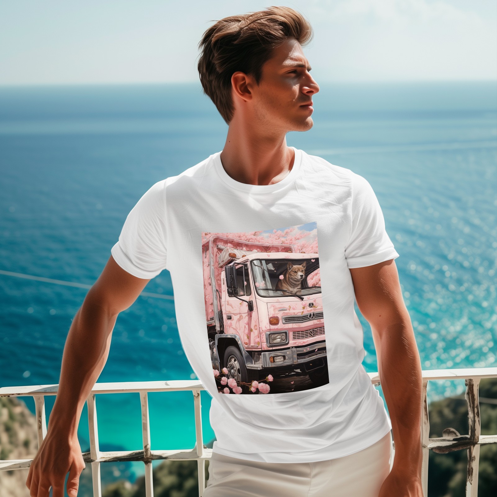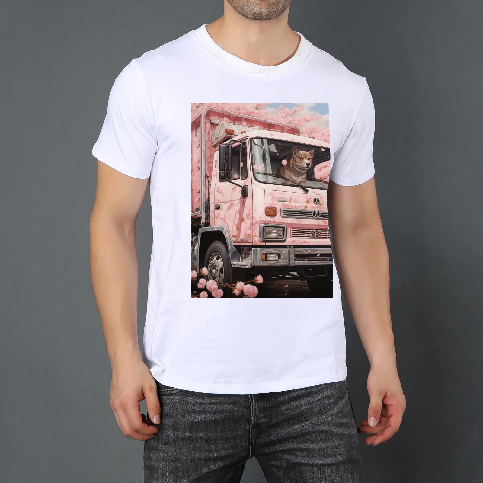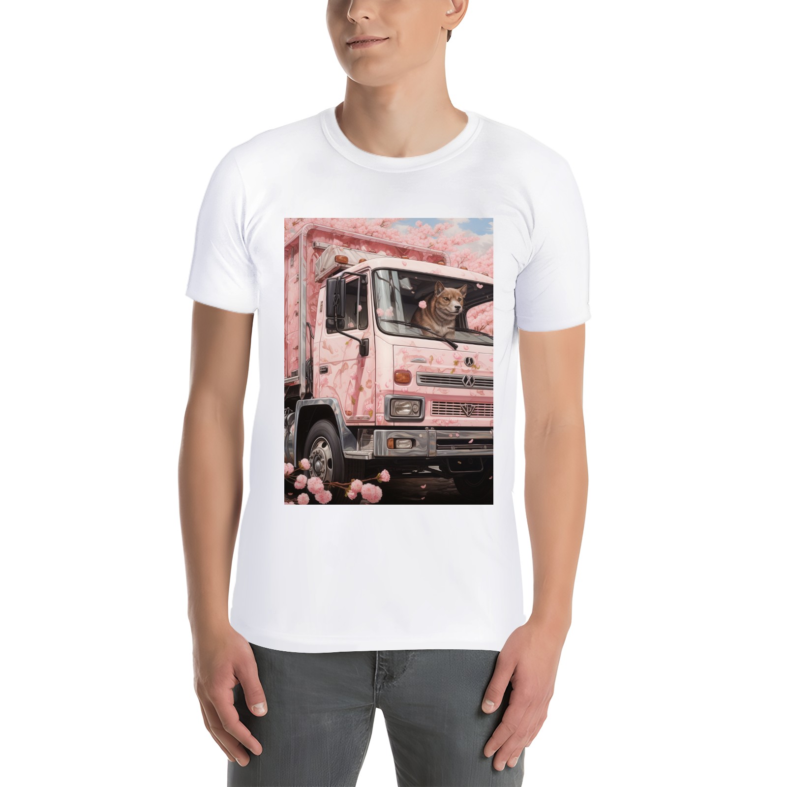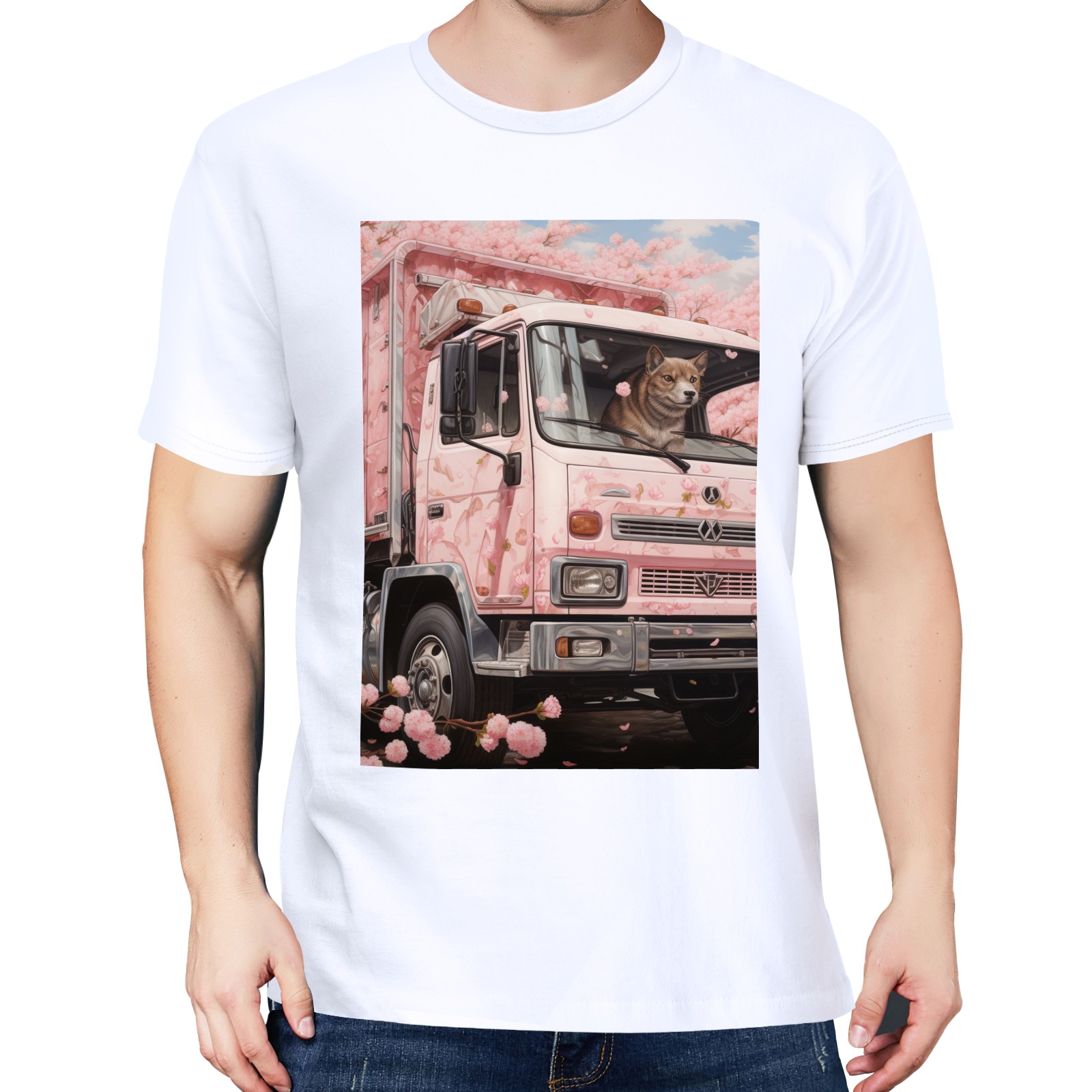 Basic Oversize Tees For Women_bjkj_an_empty_truck_in_the_style_of_cherry_blossoms_detailed_s_d08c0559-b0b2-4d01-bda6-15027c7a76fc Loose Boyfriend Shirts Casual Blouse round neck