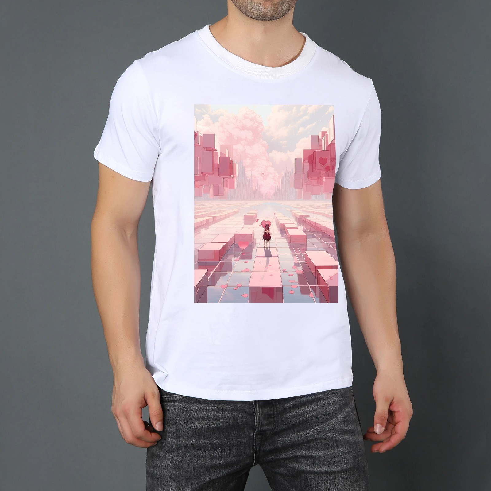 Basic Oversize Tees For Women_bjkj_a_man_is_walking_through_a_group_of_blocks_that_look_li_7bc7c403-9bac-4295-b15f-99df6620d4b5_1 Loose Boyfriend Shirts Casual Blouse round neck
