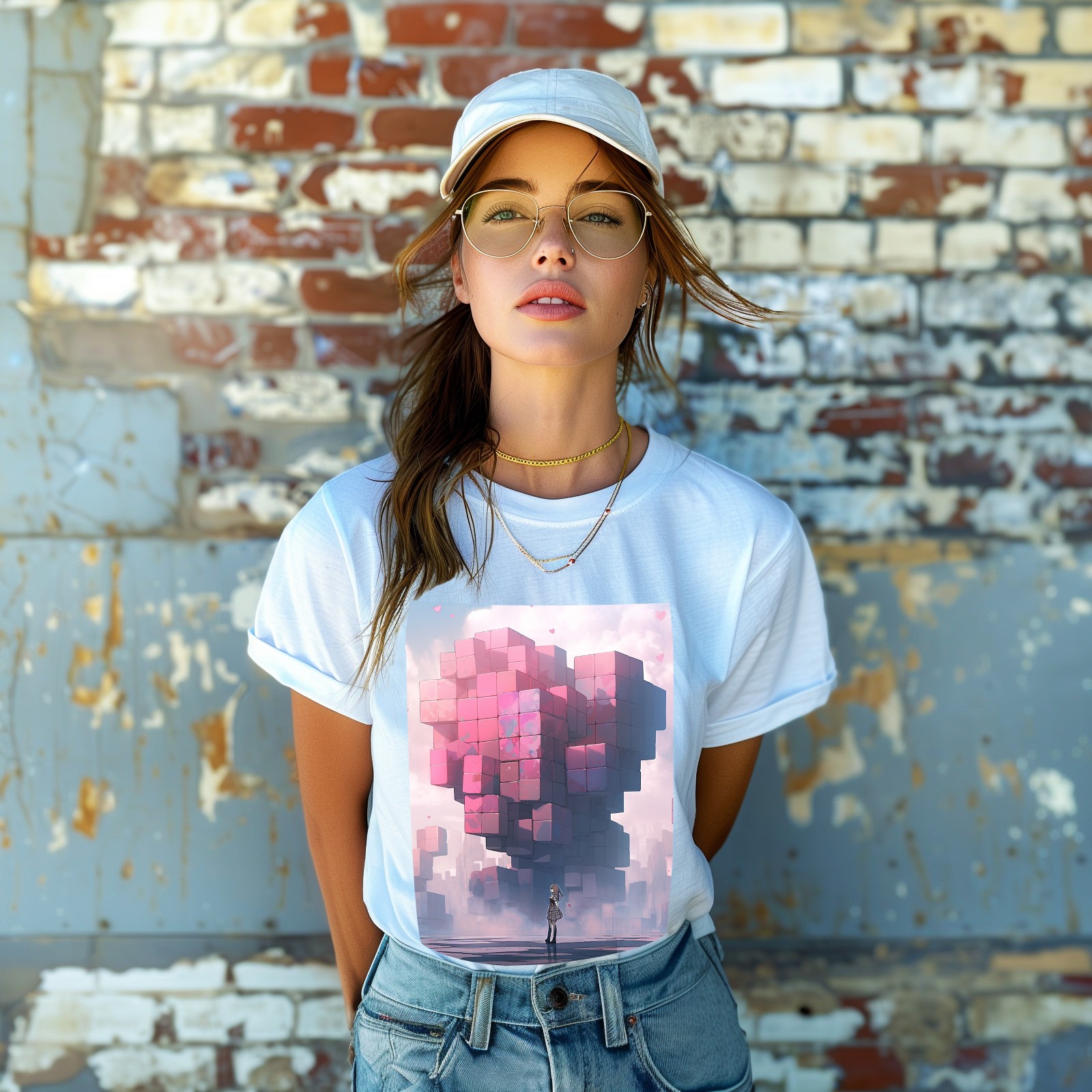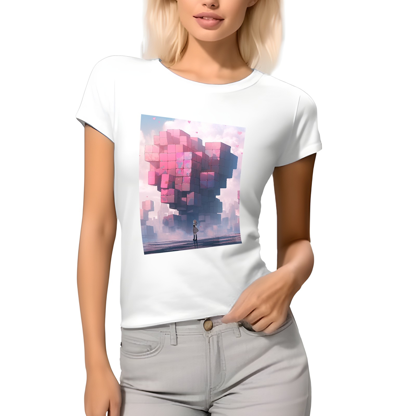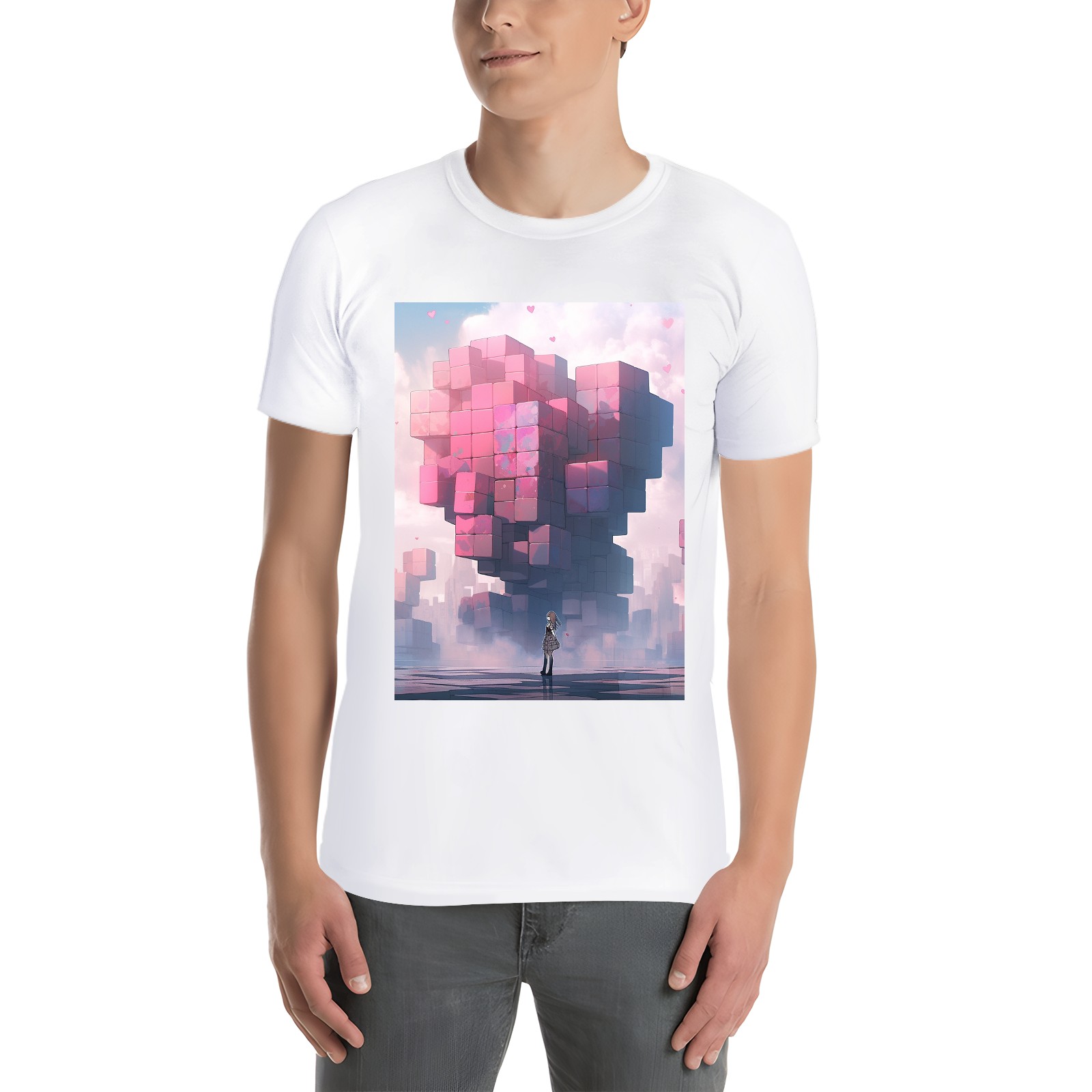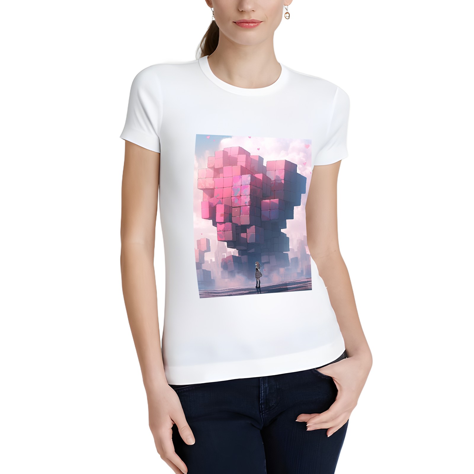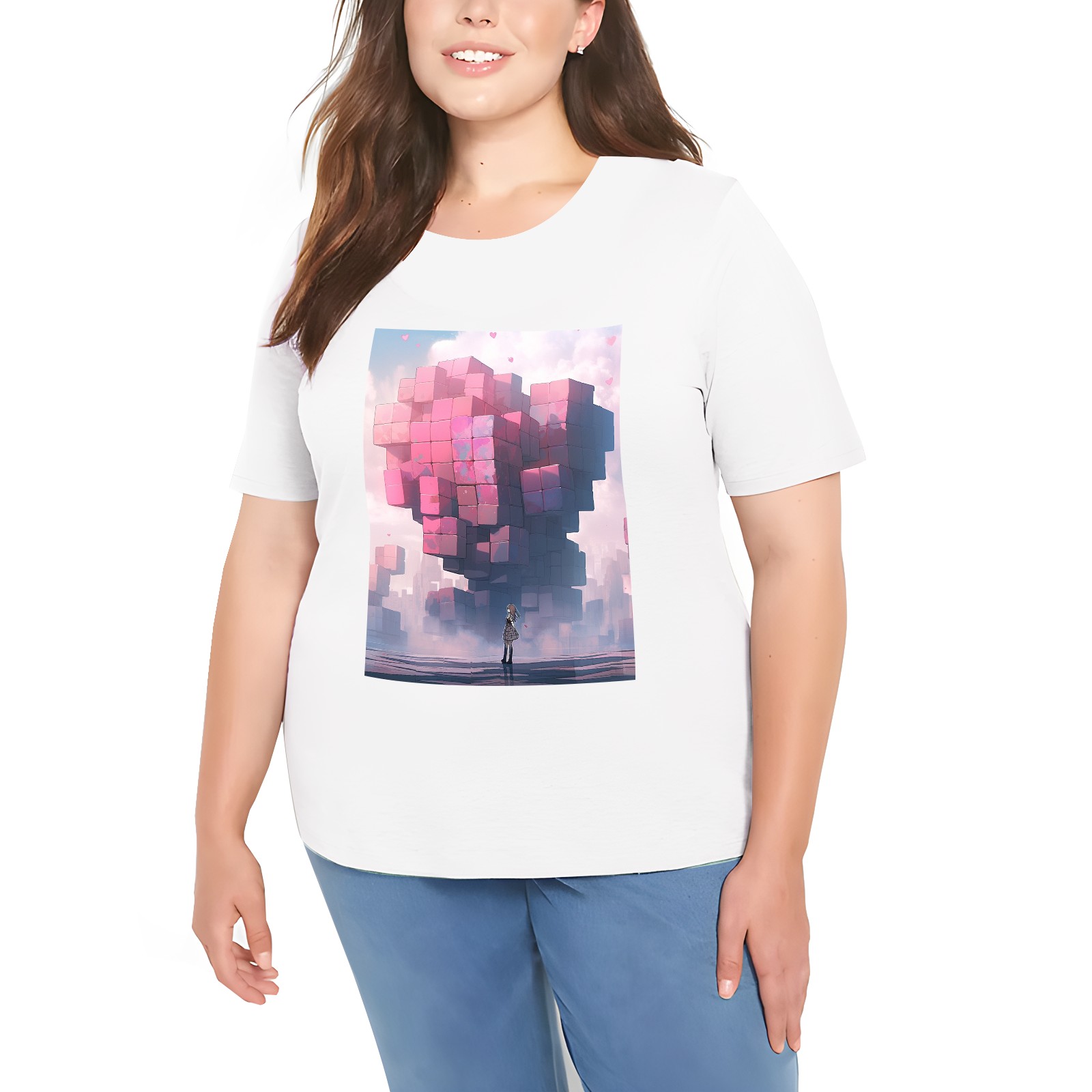 Basic Oversize Tees For Women_bjkj_a_man_is_standing_alone_near_a_large_heart_made_of_blocks_ff91852f-5029-4deb-8145-ce51dc7fce0a Loose Boyfriend Shirts Casual Blouse round neck