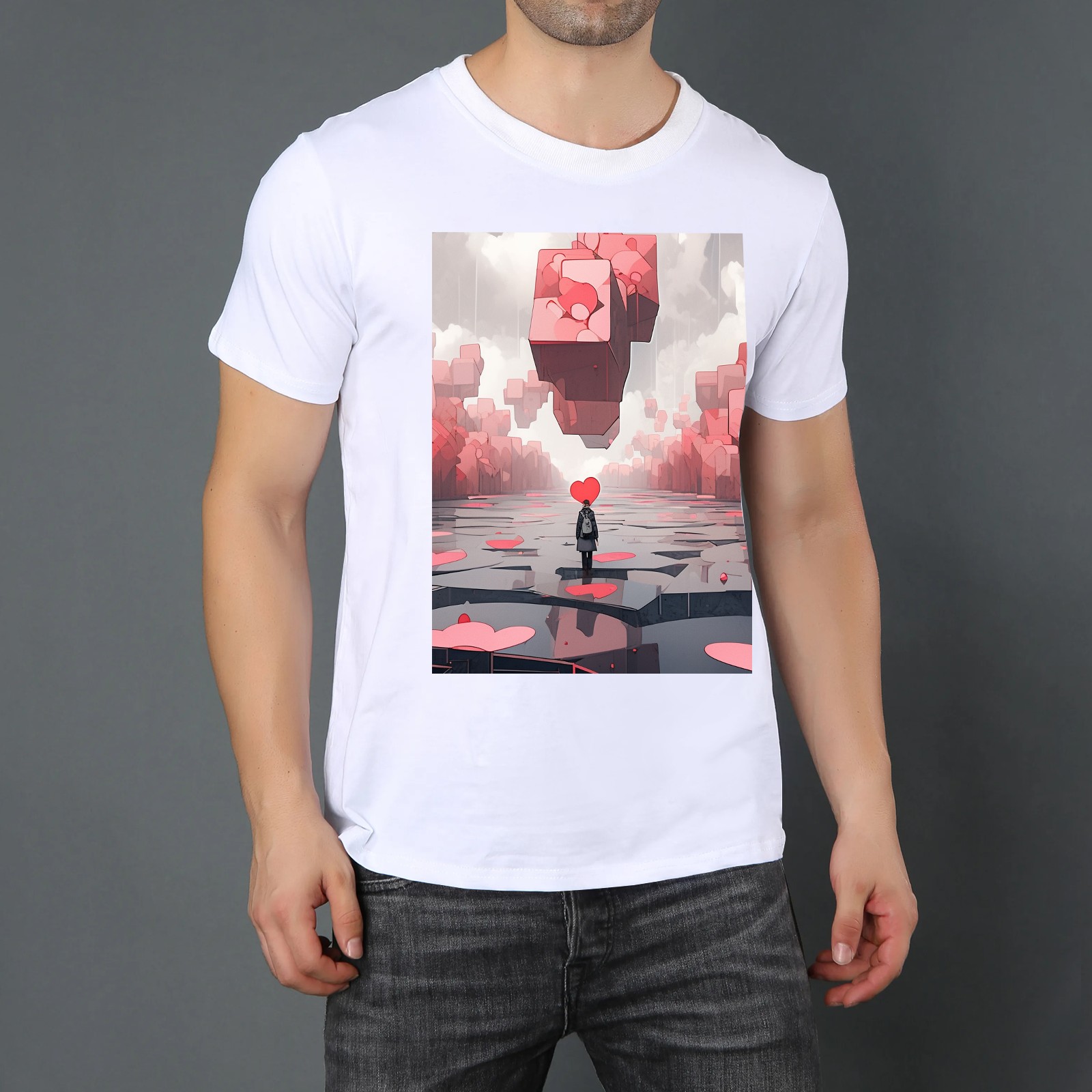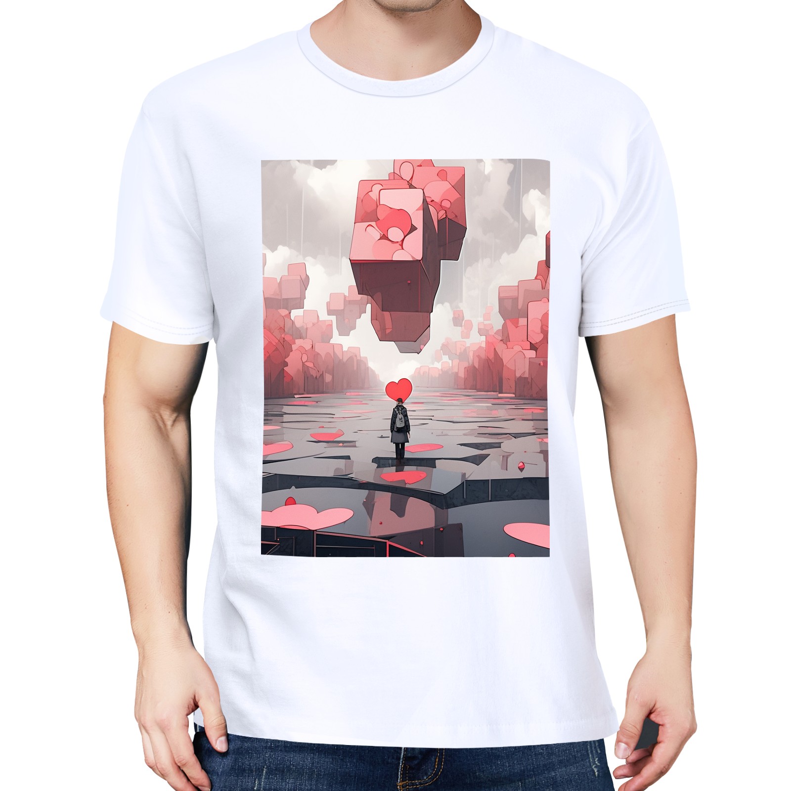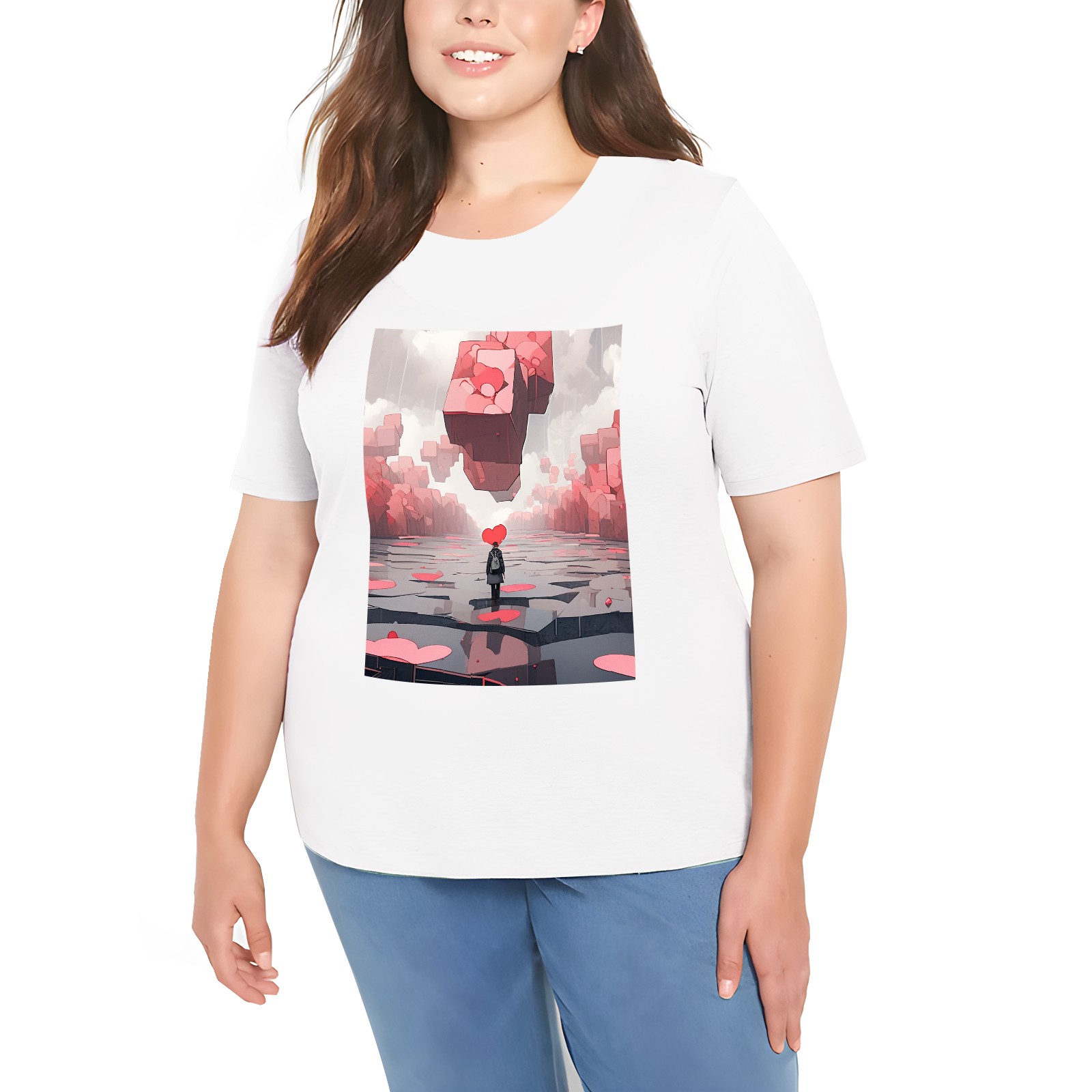 Basic Oversize Tees For Women_bjkj_a_man_is_walking_through_a_group_of_blocks_that_look_li_7bc7c403-9bac-4295-b15f-99df6620d4b5_0 Loose Boyfriend Shirts Casual Blouse round neck