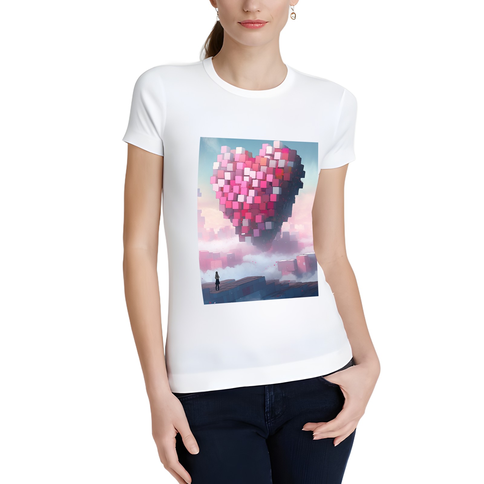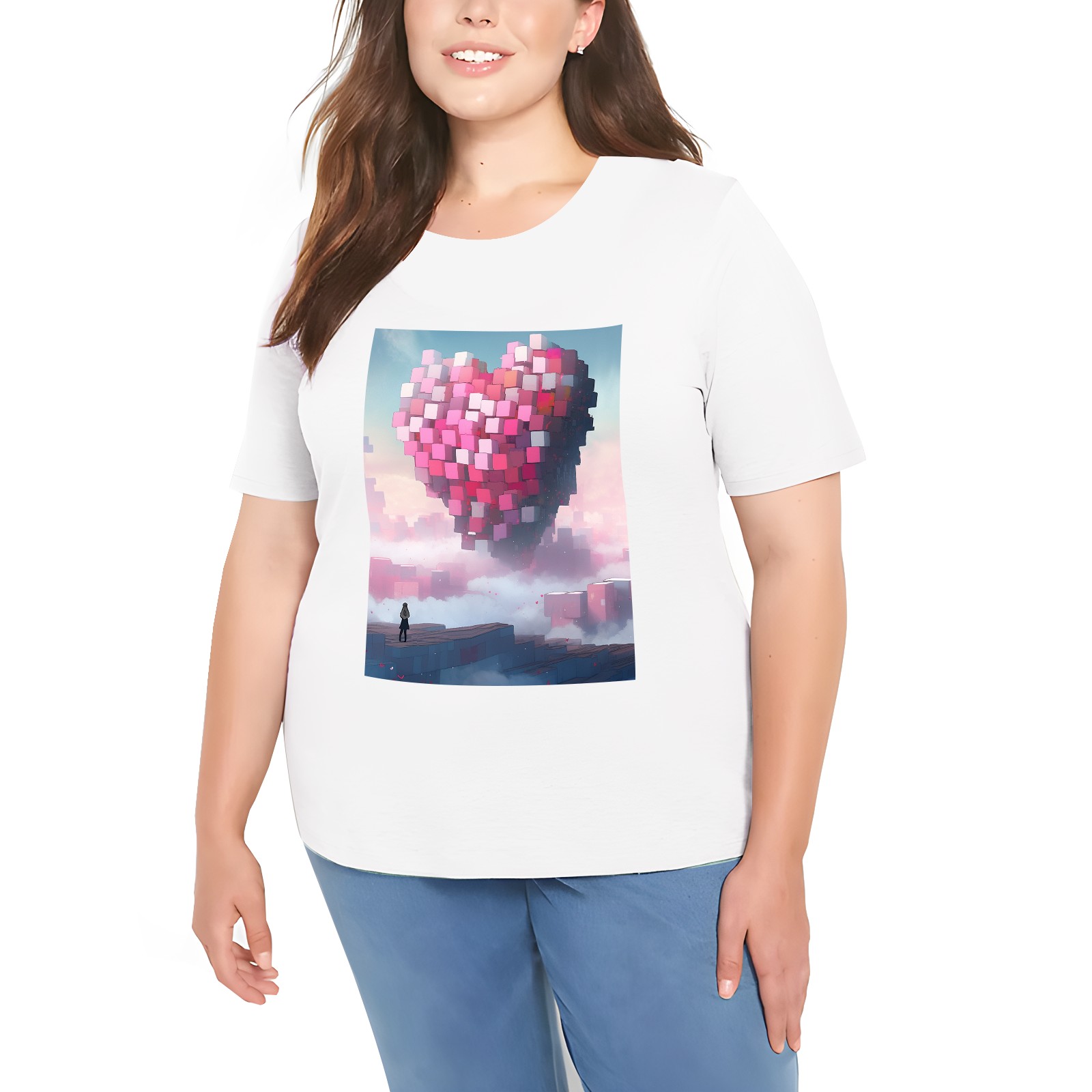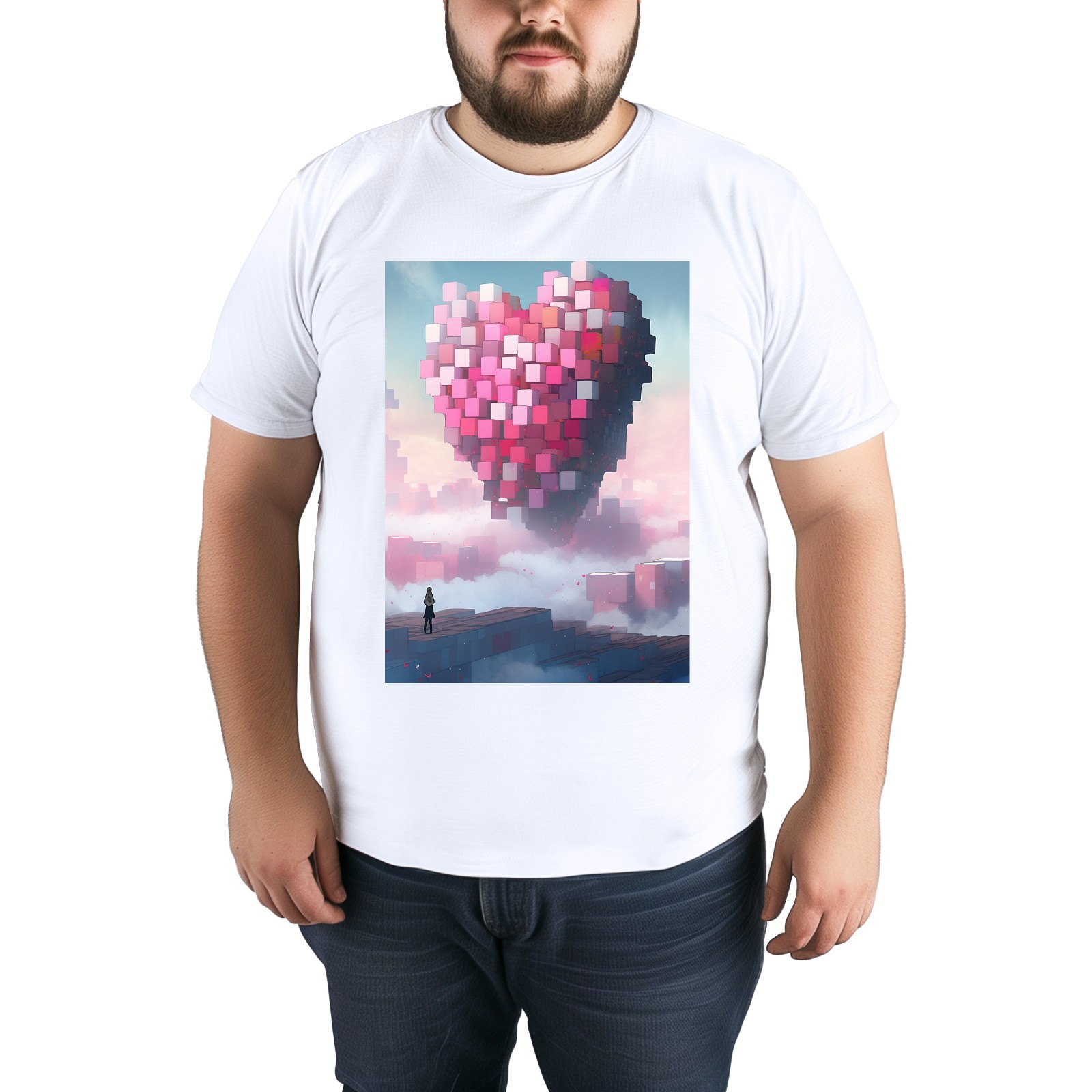 Basic Oversize Tees For Women_bjkj_a_man_is_standing_alone_near_a_large_heart_made_of_blocks_f96942f5-d4fe-4308-a01a-bbfc7e46e159 Loose Boyfriend Shirts Casual Blouse round neck