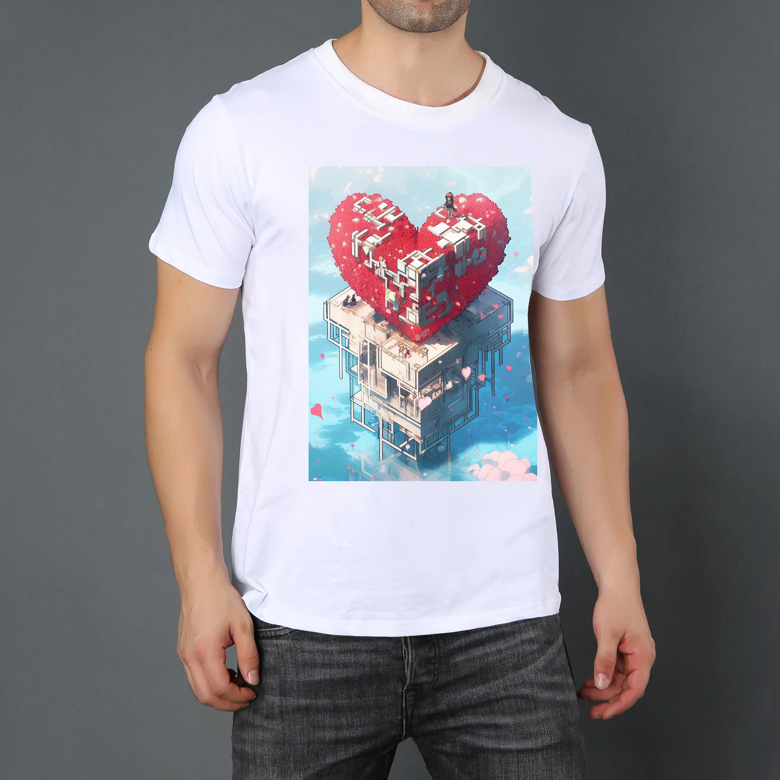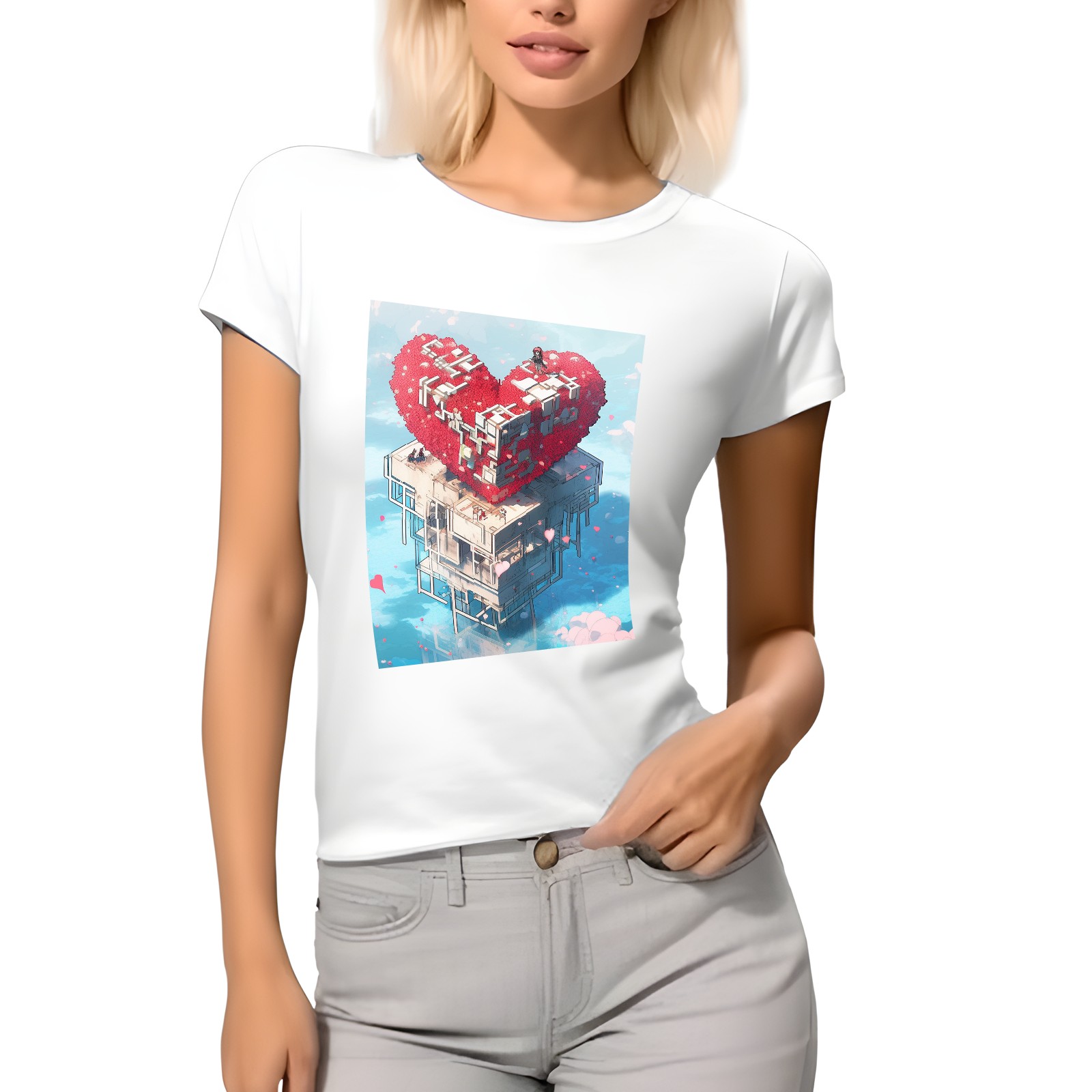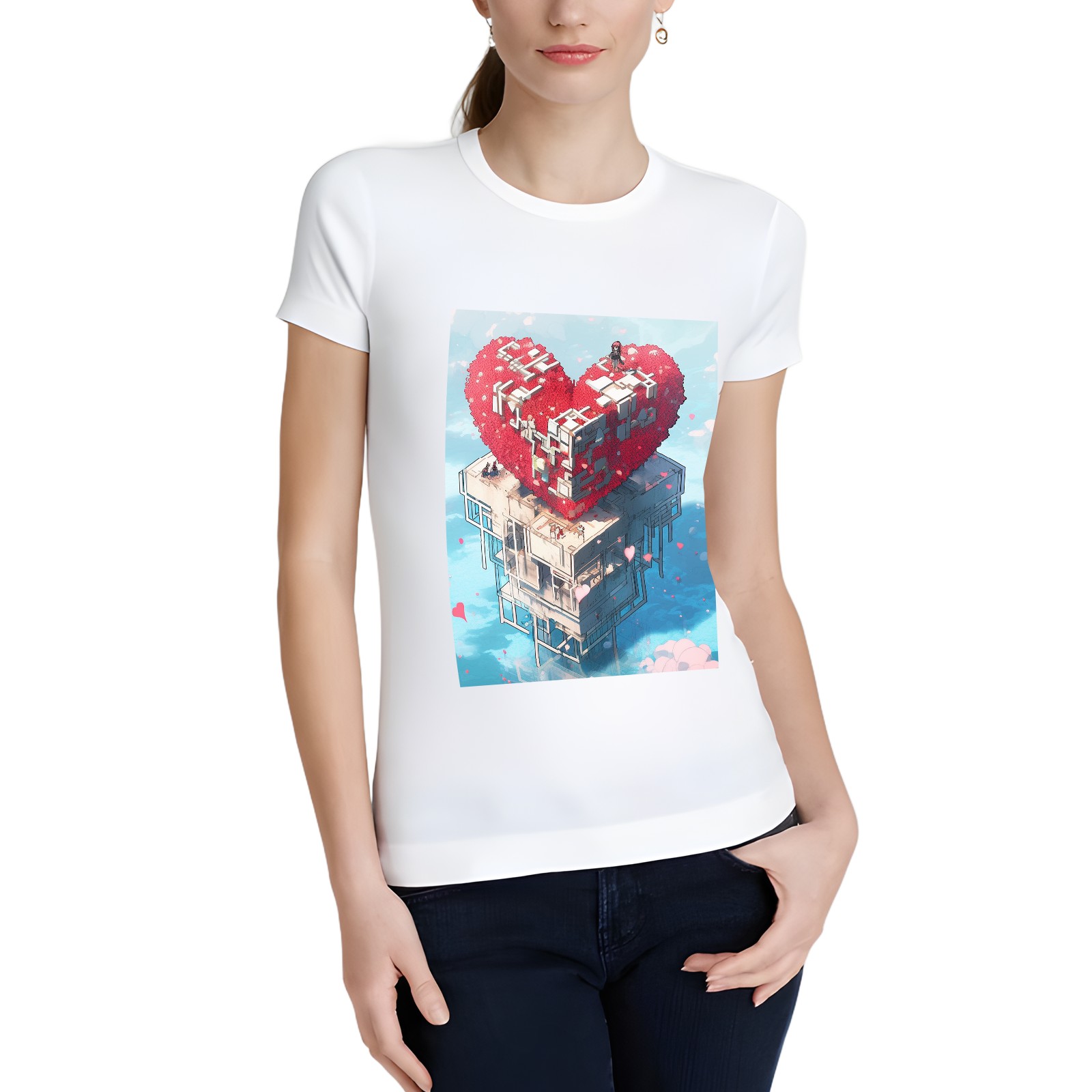 Basic Oversize Tees For Women_bjkj_a_man_atop_a_large_red_cube_structure_in_the_sea_in_the_s_91db90b2-12f5-40dd-9a3b-3340548ad8f7 Loose Boyfriend Shirts Casual Blouse round neck