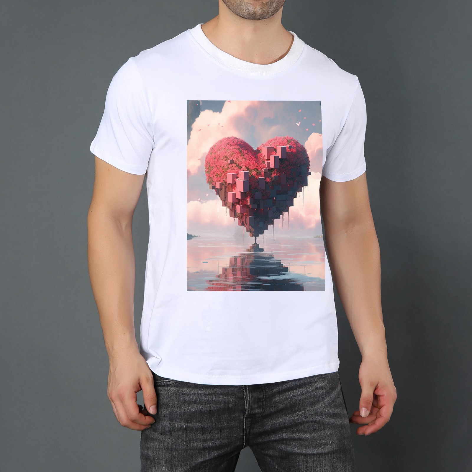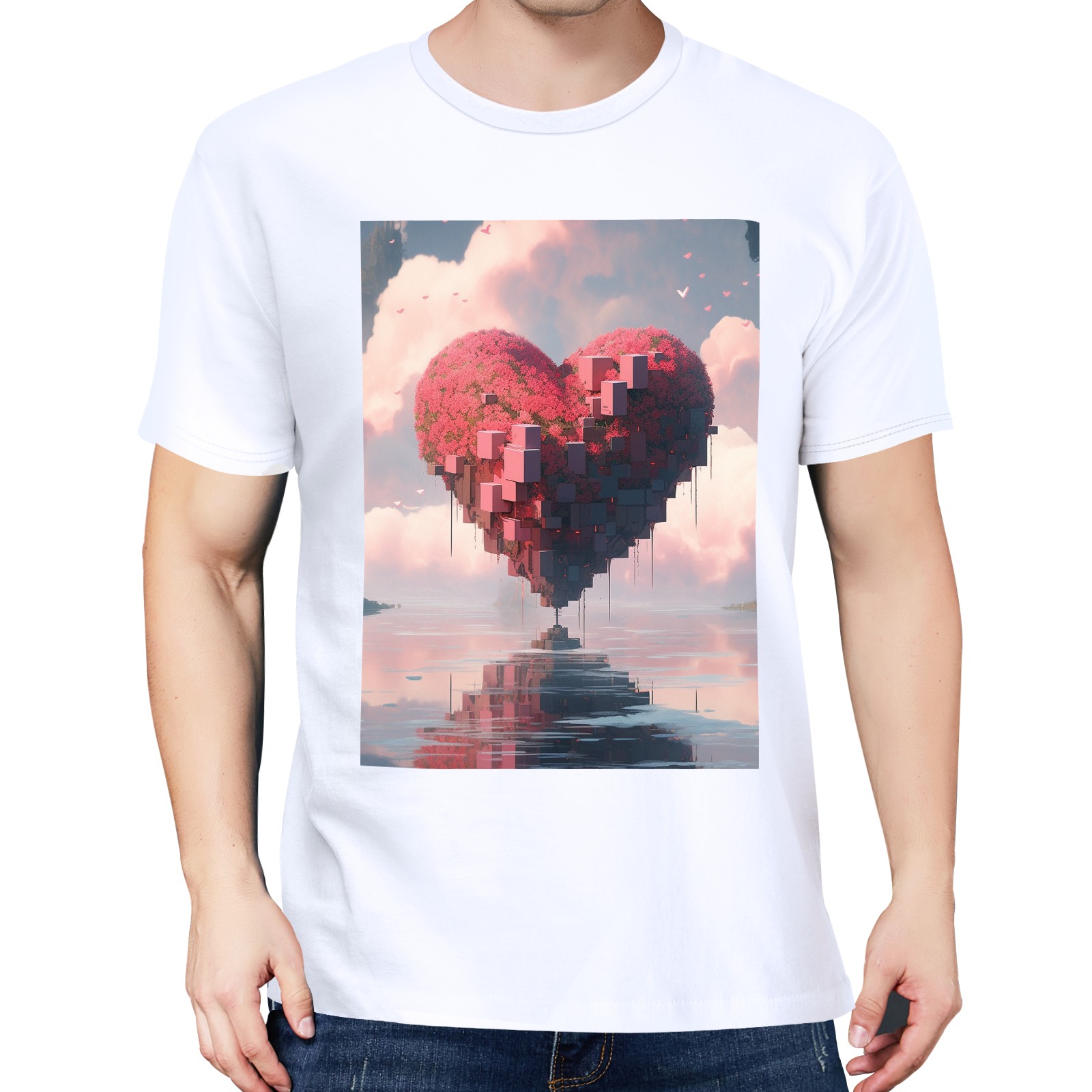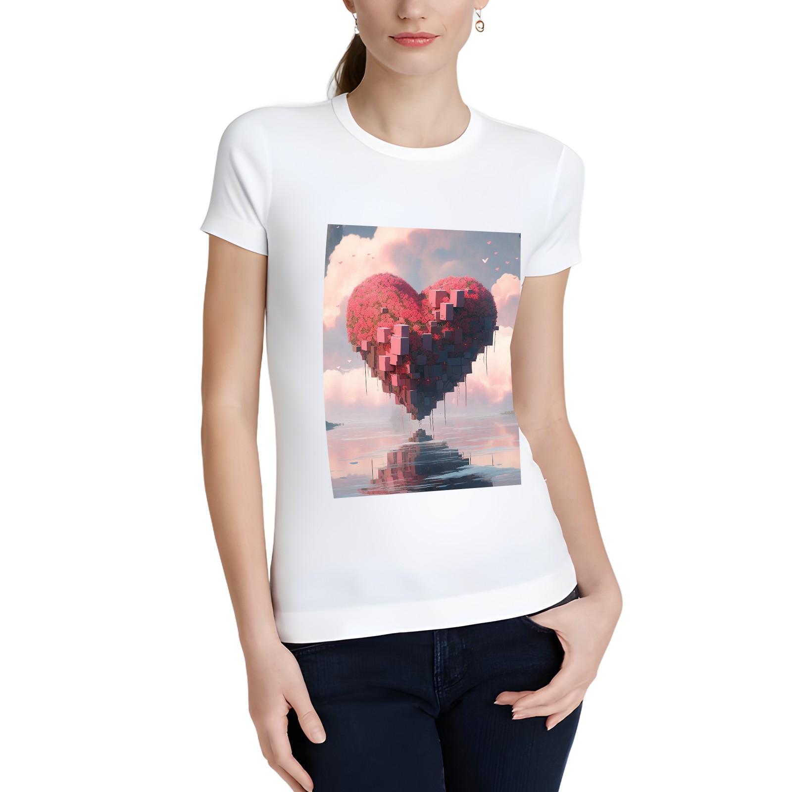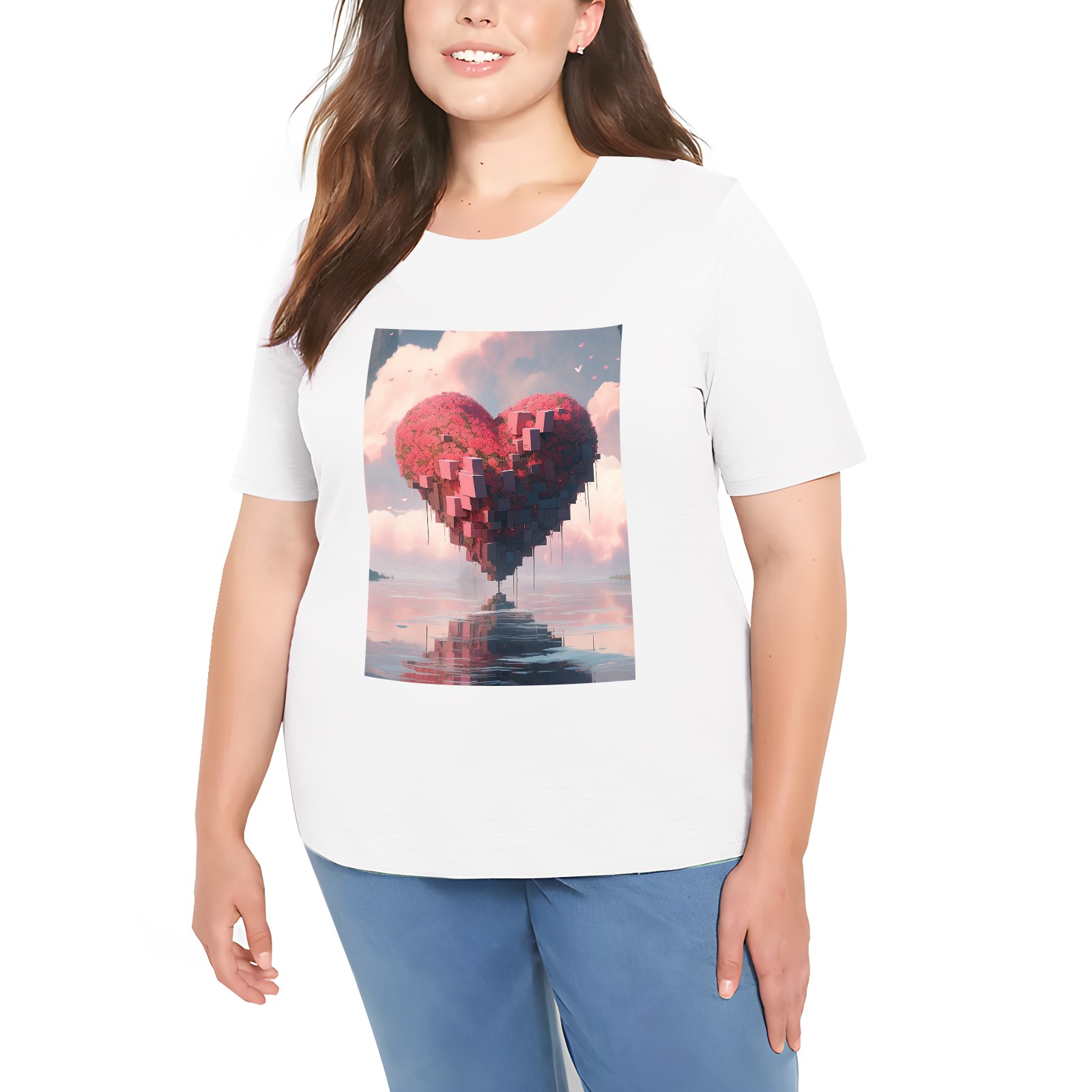 Basic Oversize Tees For Women_bjkj_a_large_heart_is_floating_in_the_water_in_the_style_of__f164b13b-5bcf-4435-88f8-804f922b9e85_3 Loose Boyfriend Shirts Casual Blouse round neck