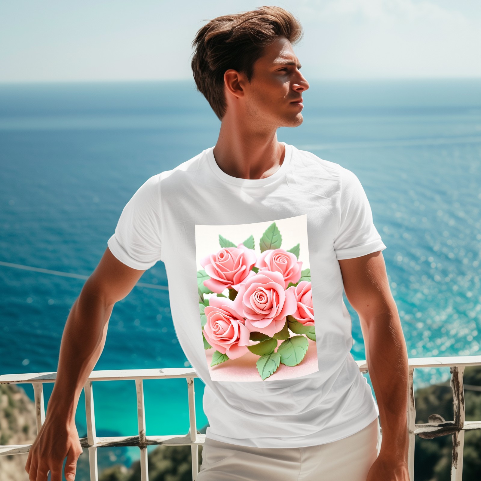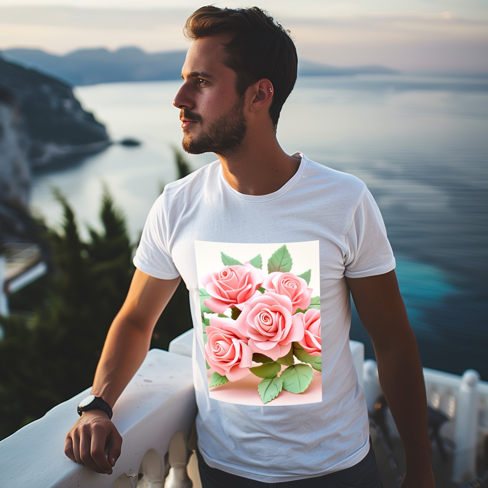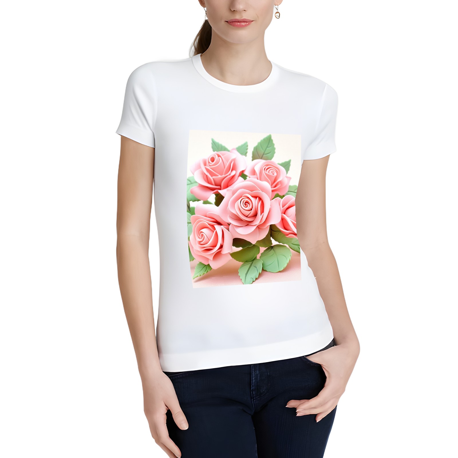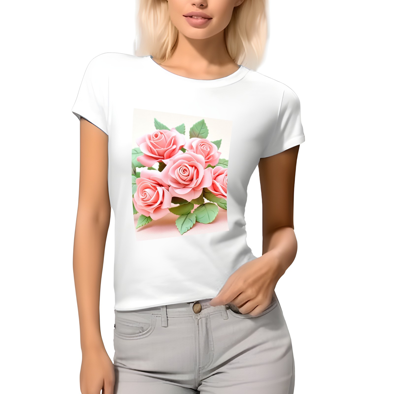 Basic Oversize Tees For Women_bjkj_a_bouquet_has_pink_roses_inside_in_the_style_of_realist_5c062857-2194-4cf0-a576-0b11cf59a437_3 Loose Boyfriend Shirts Casual Blouse round neck