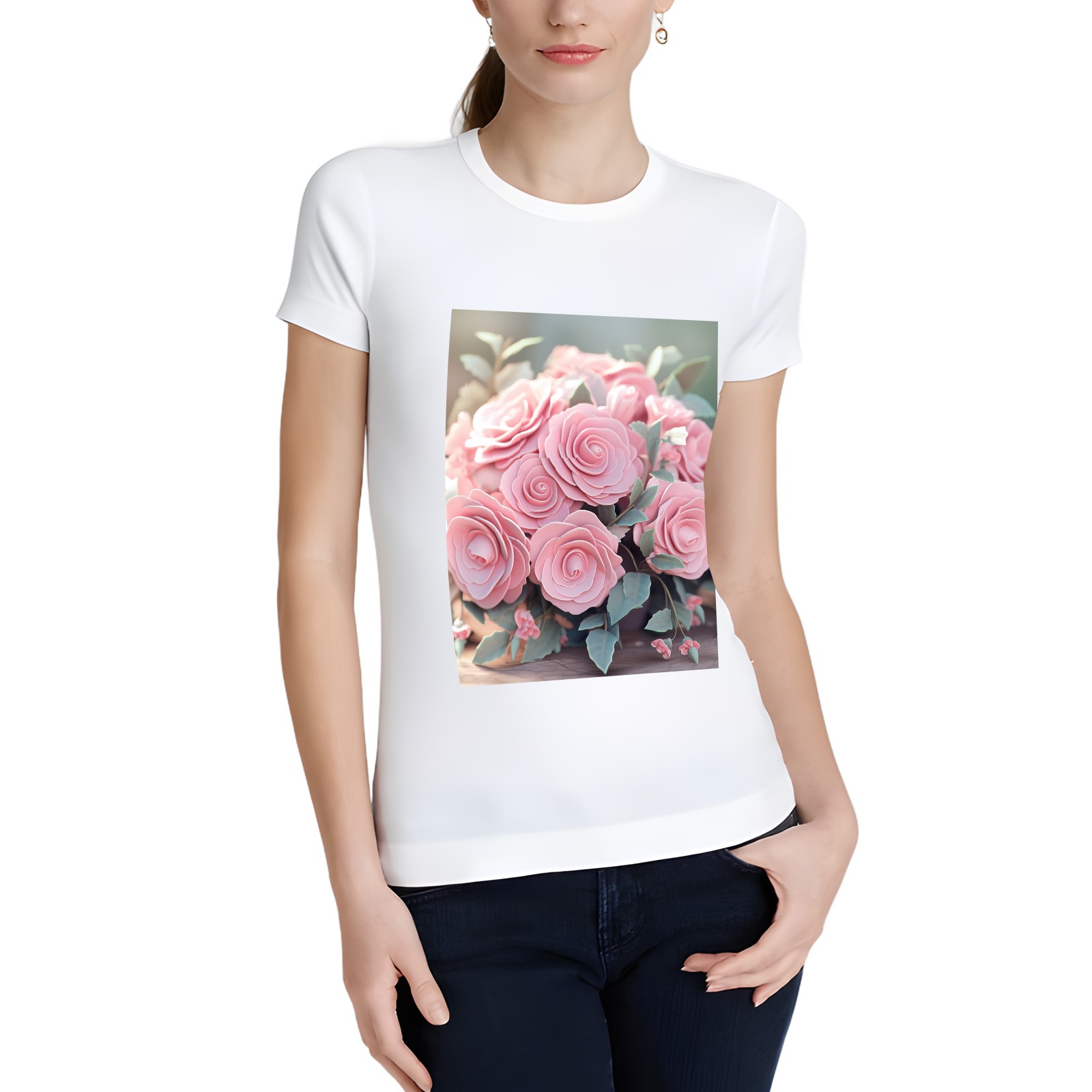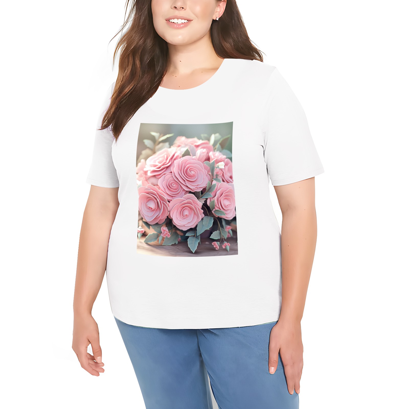 Basic Oversize Tees For Women_bjkj_a_bouquet_has_pink_roses_inside_in_the_style_of_realist_5c062857-2194-4cf0-a576-0b11cf59a437_2 Loose Boyfriend Shirts Casual Blouse round neck