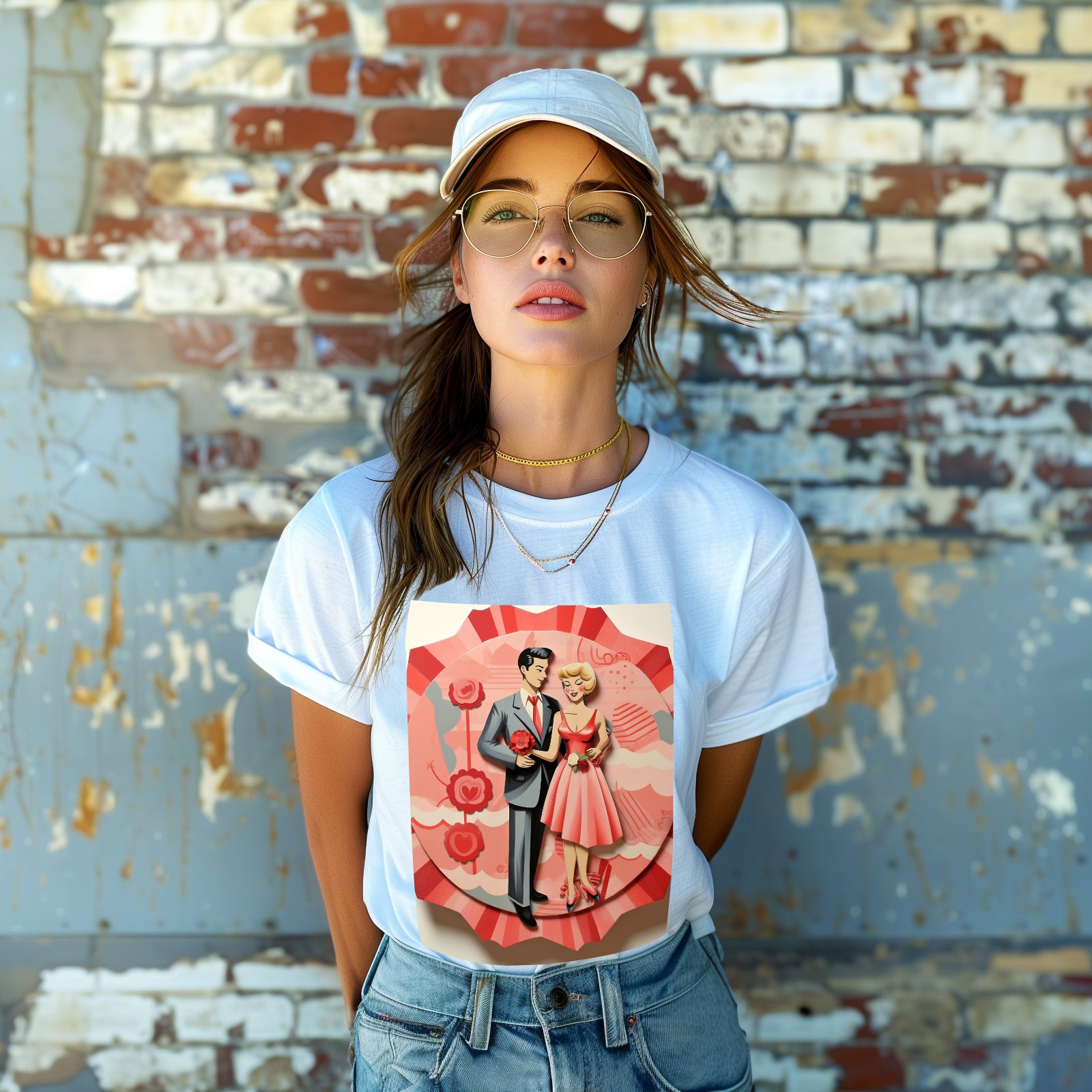 Basic Oversize Tees For WomenValentine Couple Loose Boyfriend Shirts Casual Blouse round neck