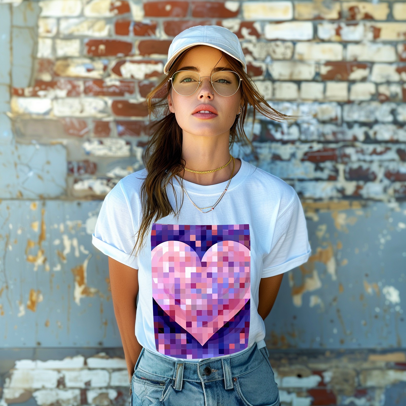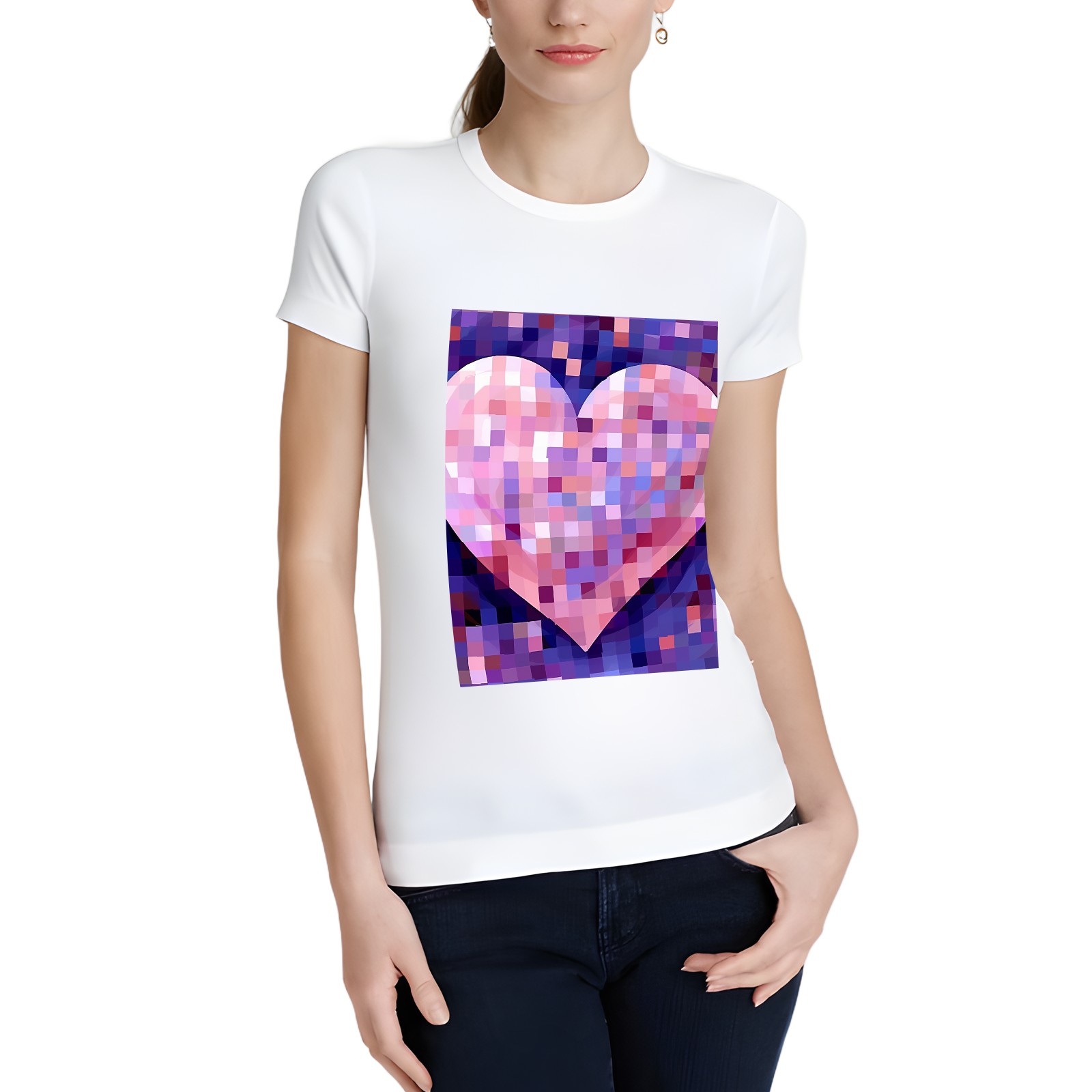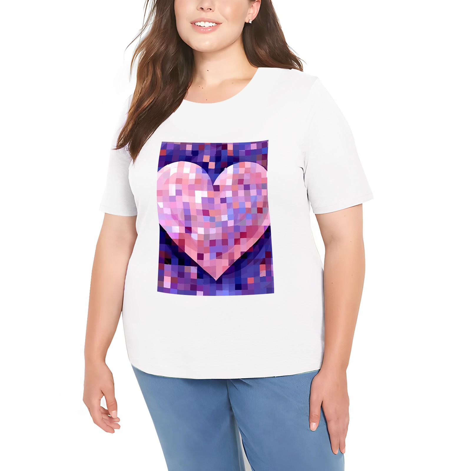 Basic Oversize Tees For WomenPurple Hearts (6) Loose Boyfriend Shirts Casual Blouse round neck