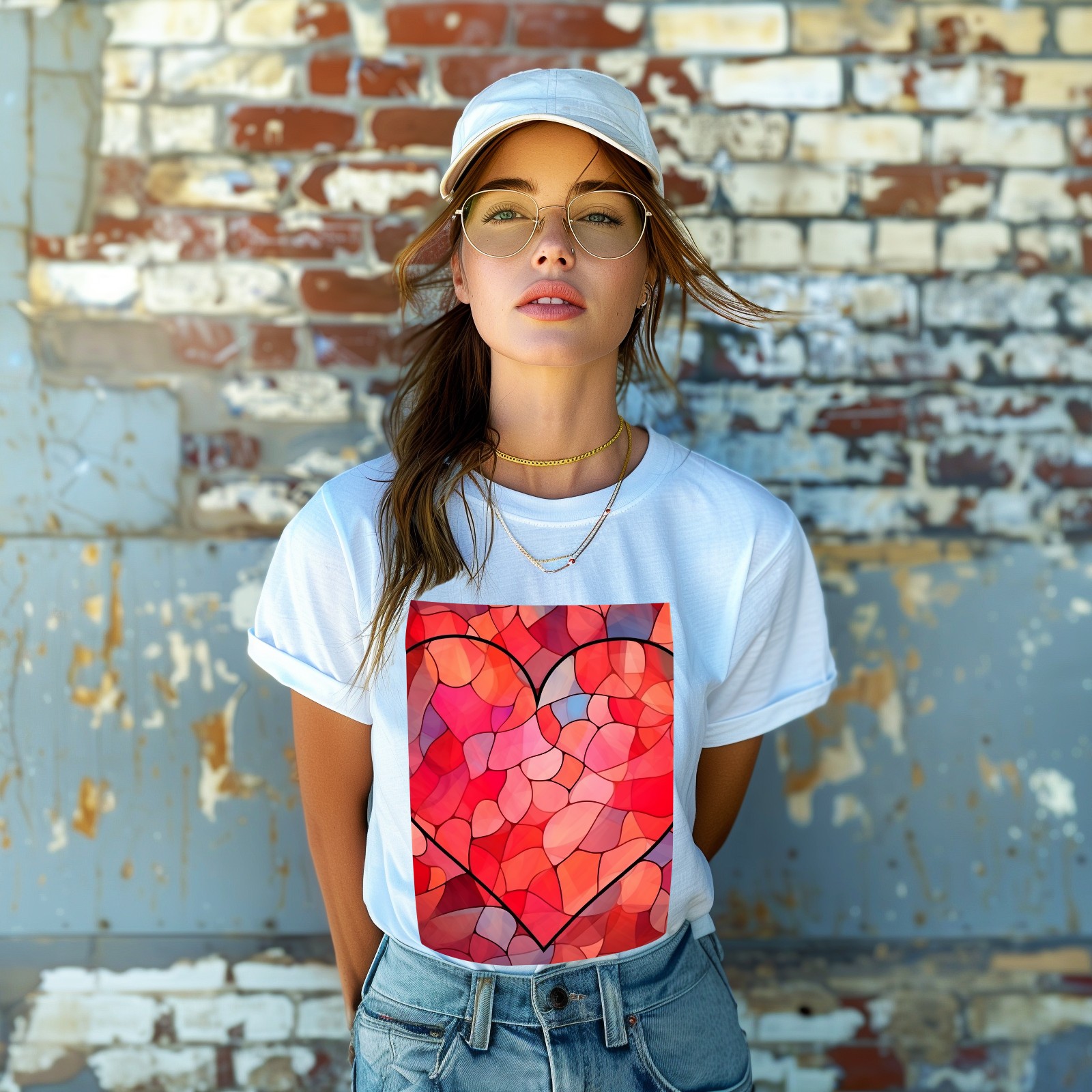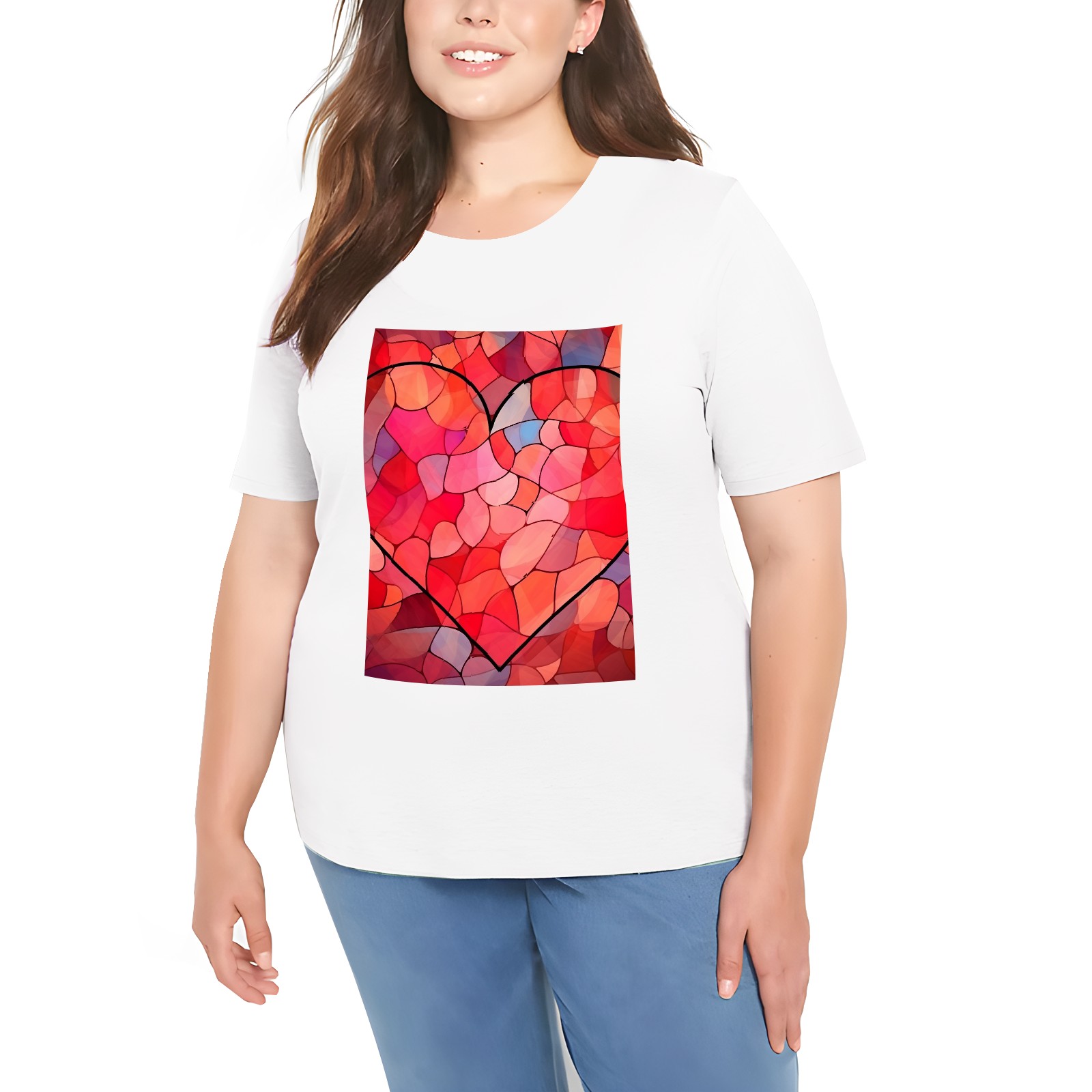 Basic Oversize Tees For WomenPurple Hearts (5) Loose Boyfriend Shirts Casual Blouse round neck