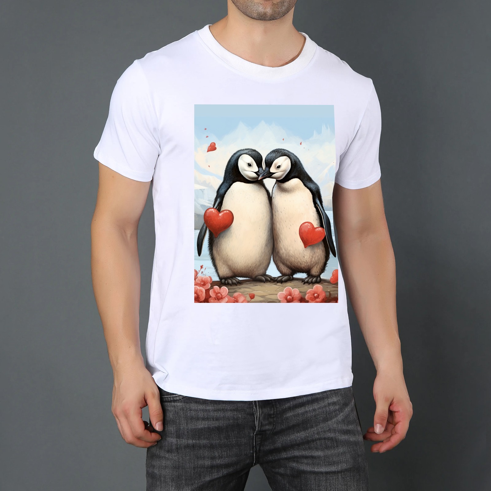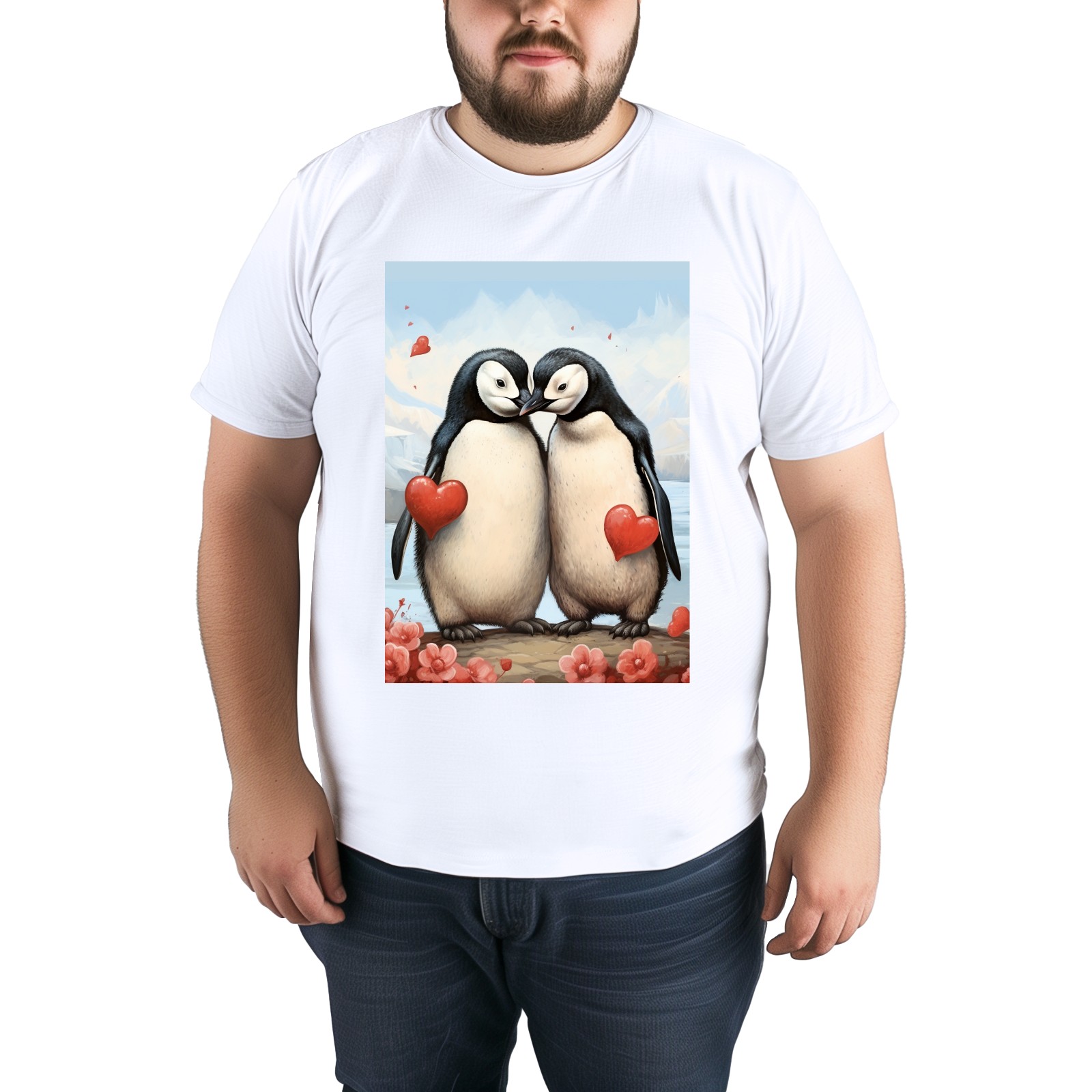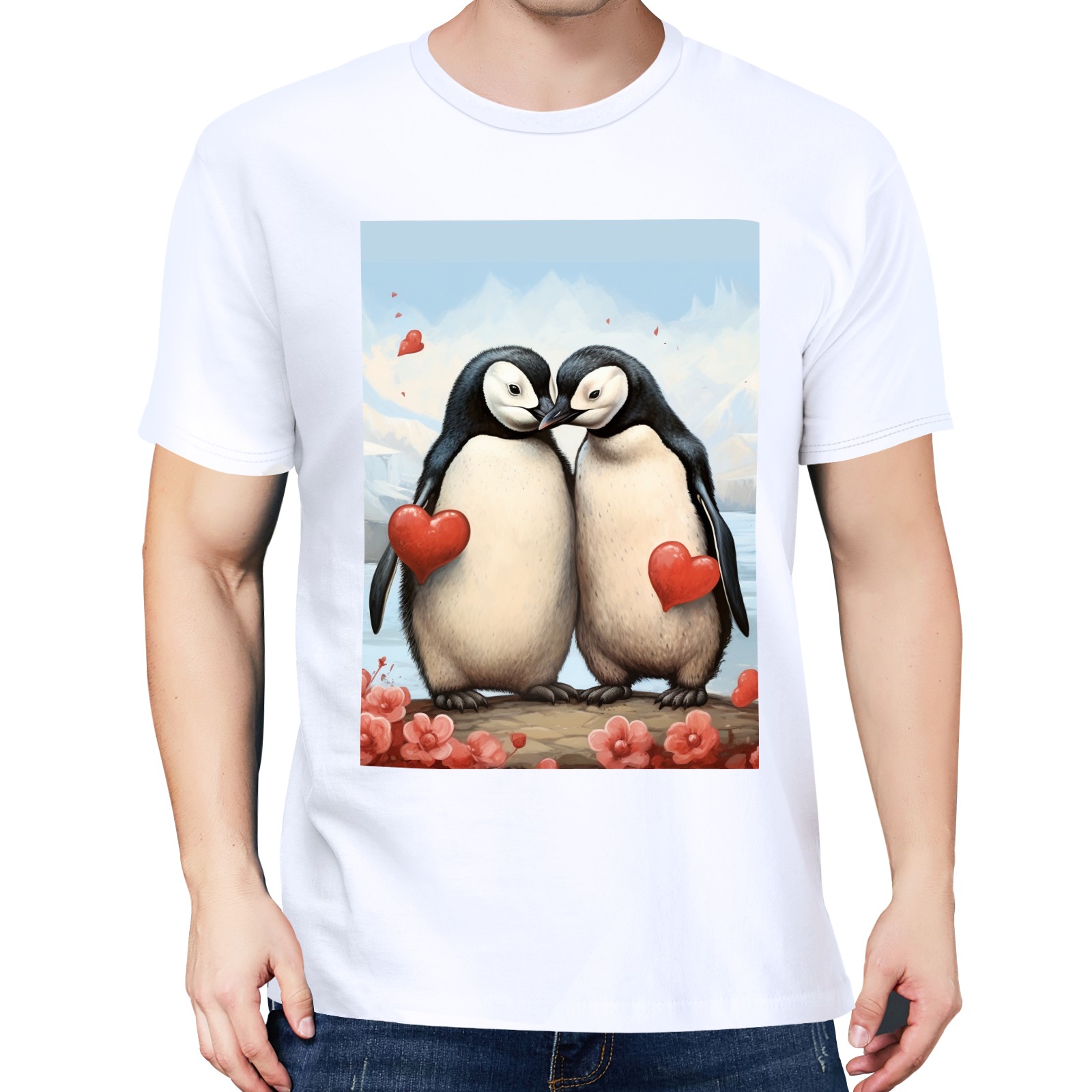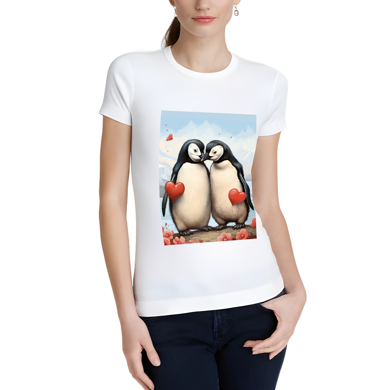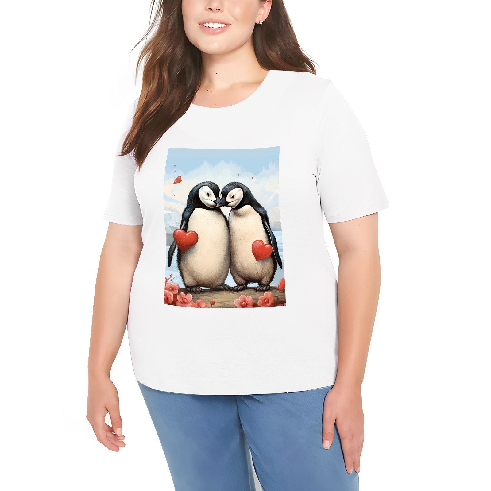 Basic Oversize Tees For WomenTwo Penguins Hugging A Red Heart (1) Loose Boyfriend Shirts Casual Blouse round neck
