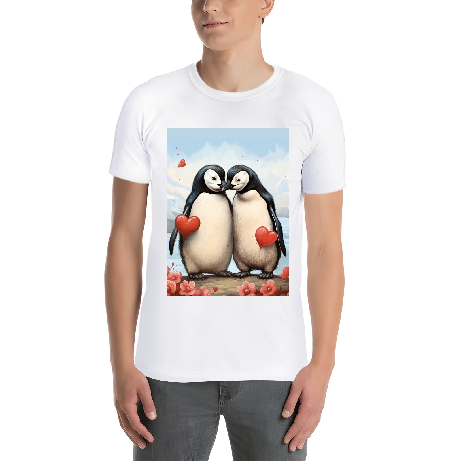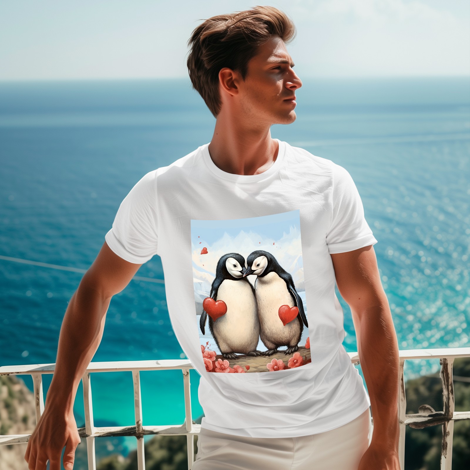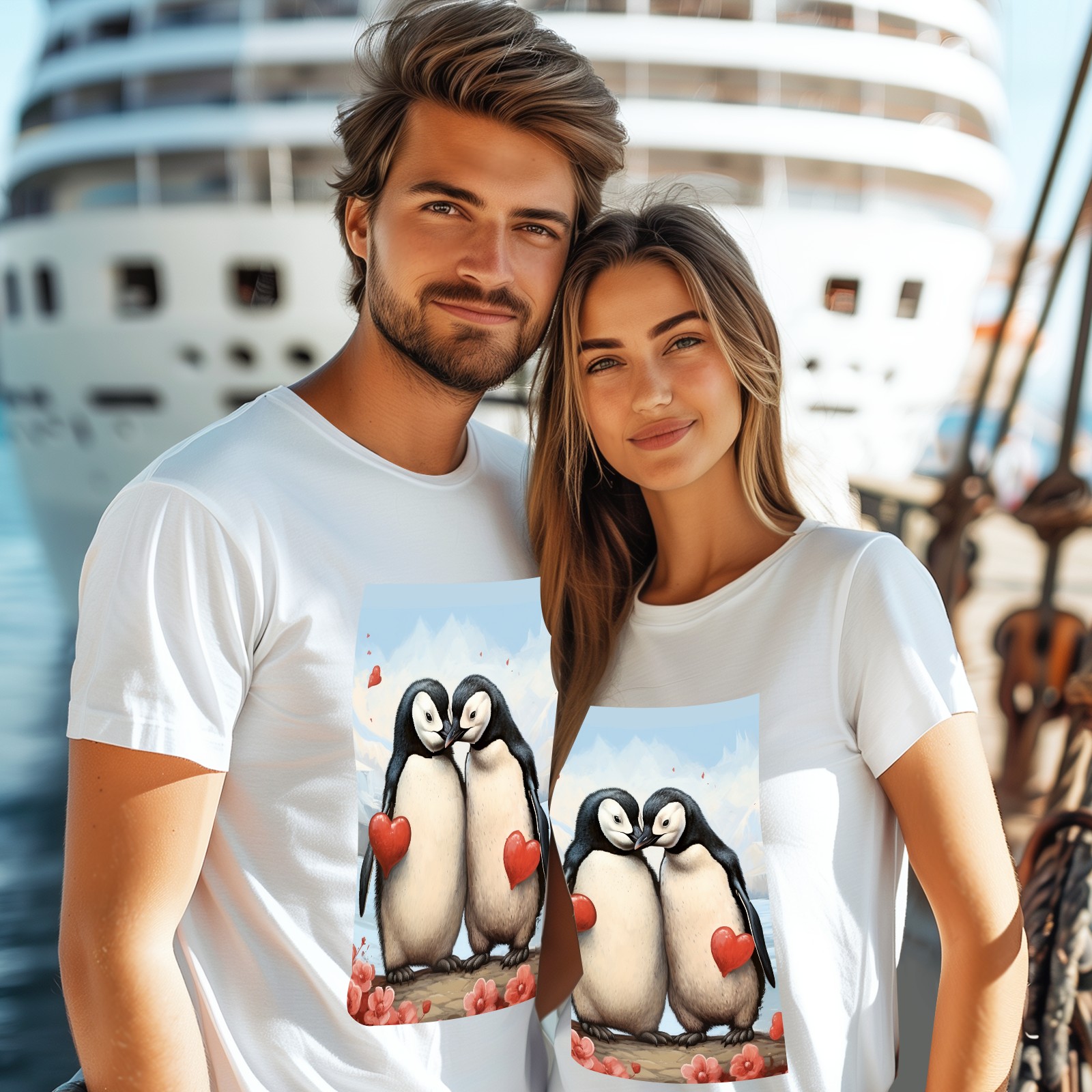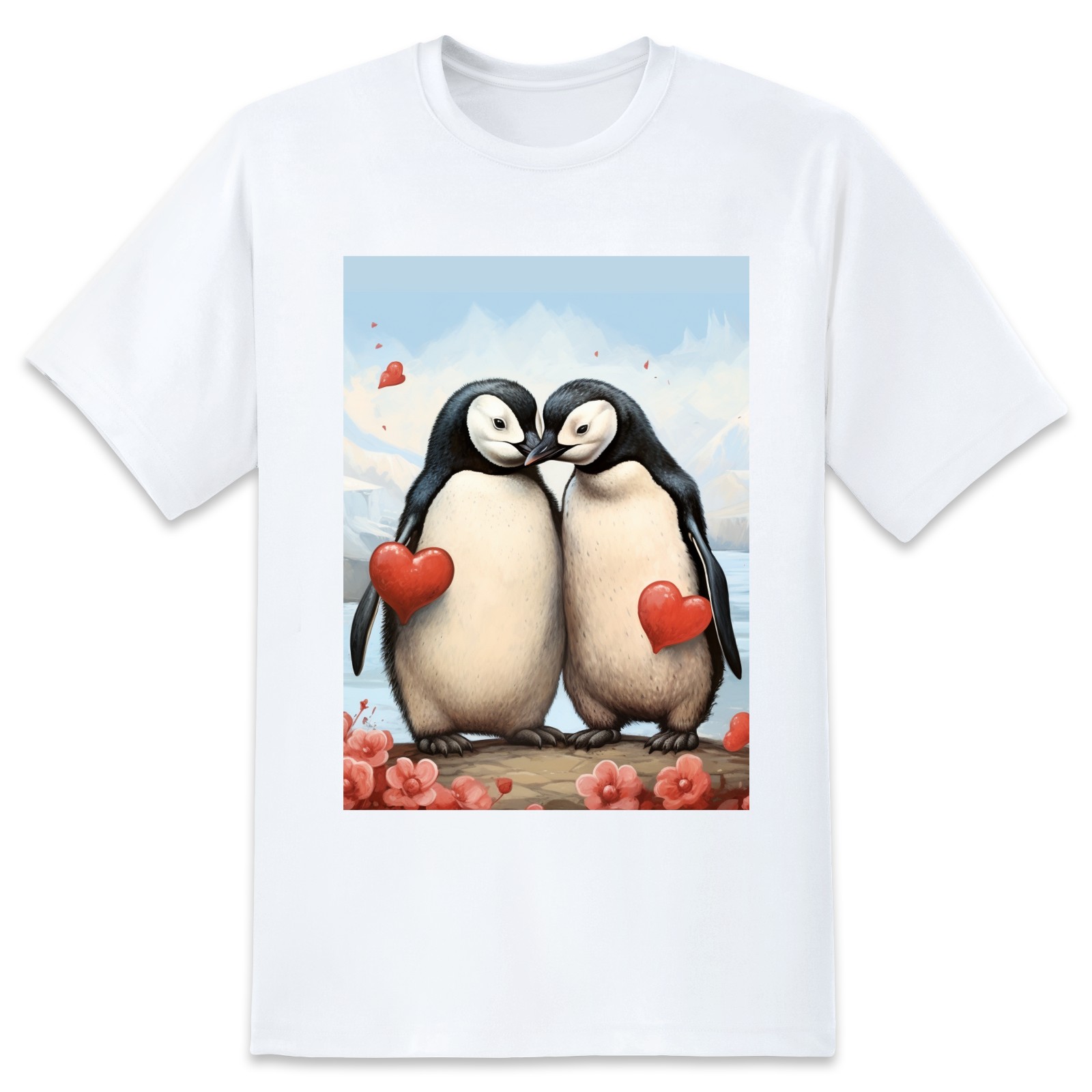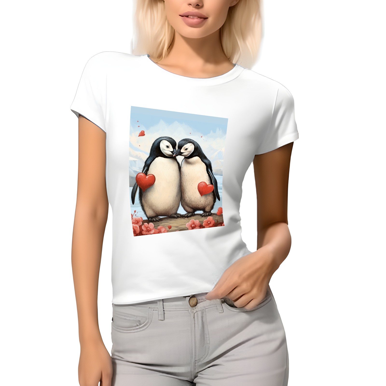 Basic Oversize Tees For WomenTwo Penguins Hugging A Red Heart (1) Loose Boyfriend Shirts Casual Blouse round neck