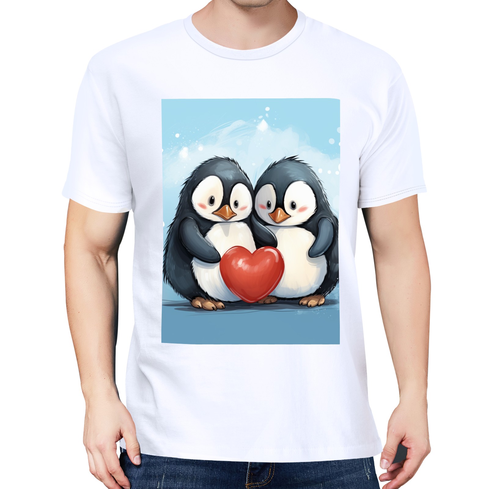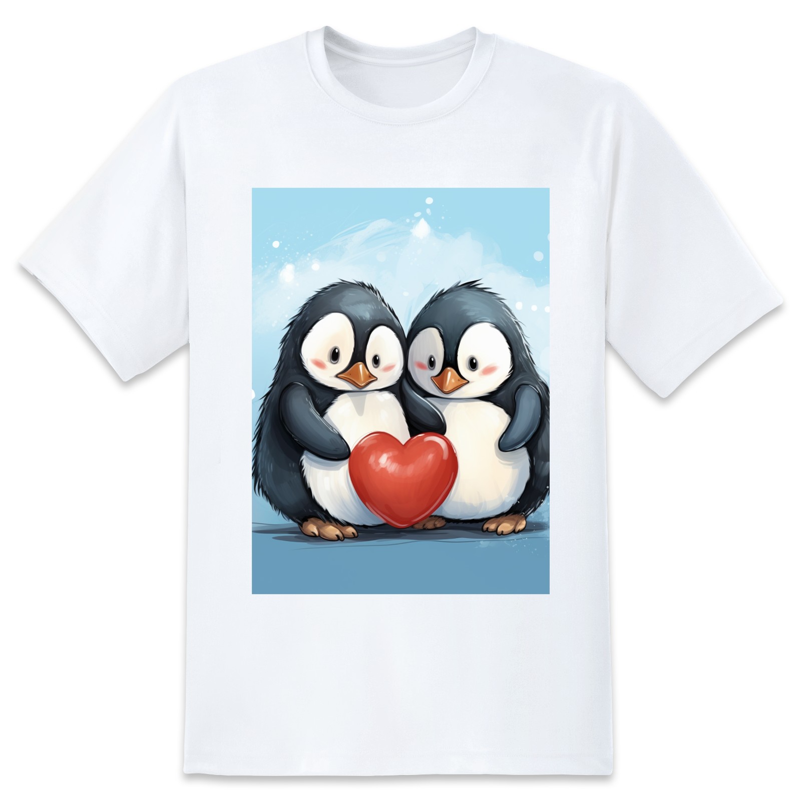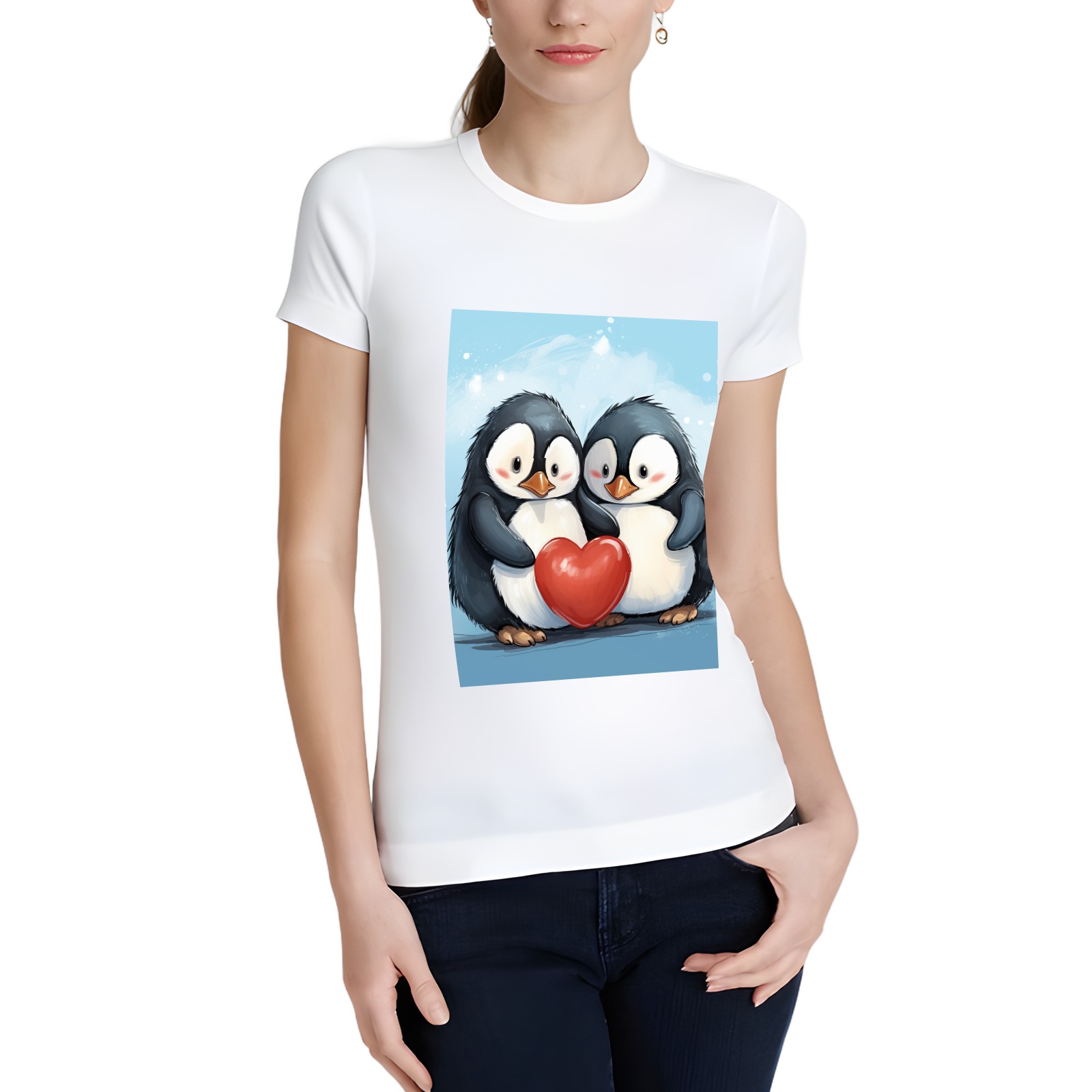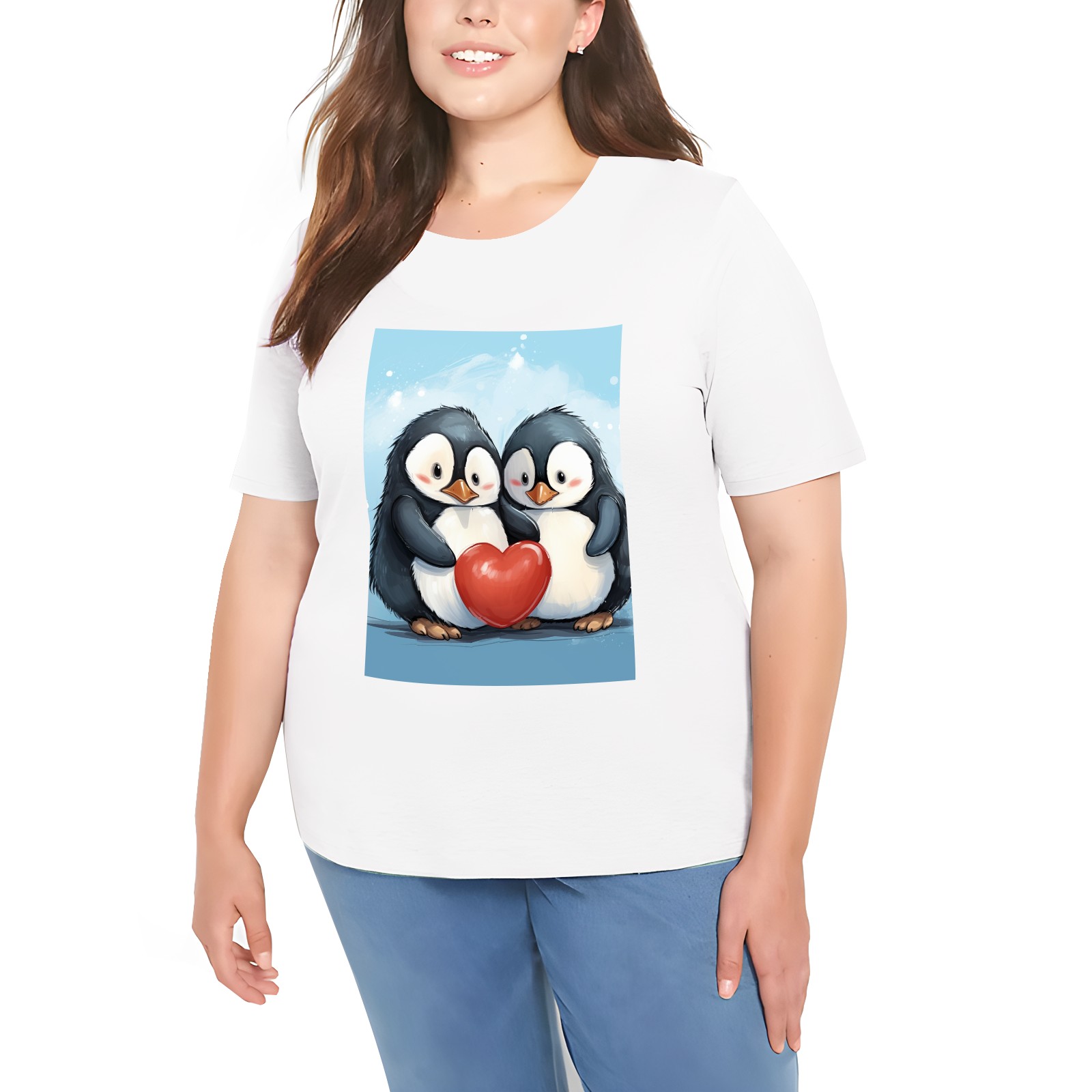 Basic Oversize Tees For WomenTwo Penguins Hugging A Red Heart (2) Loose Boyfriend Shirts Casual Blouse round neck