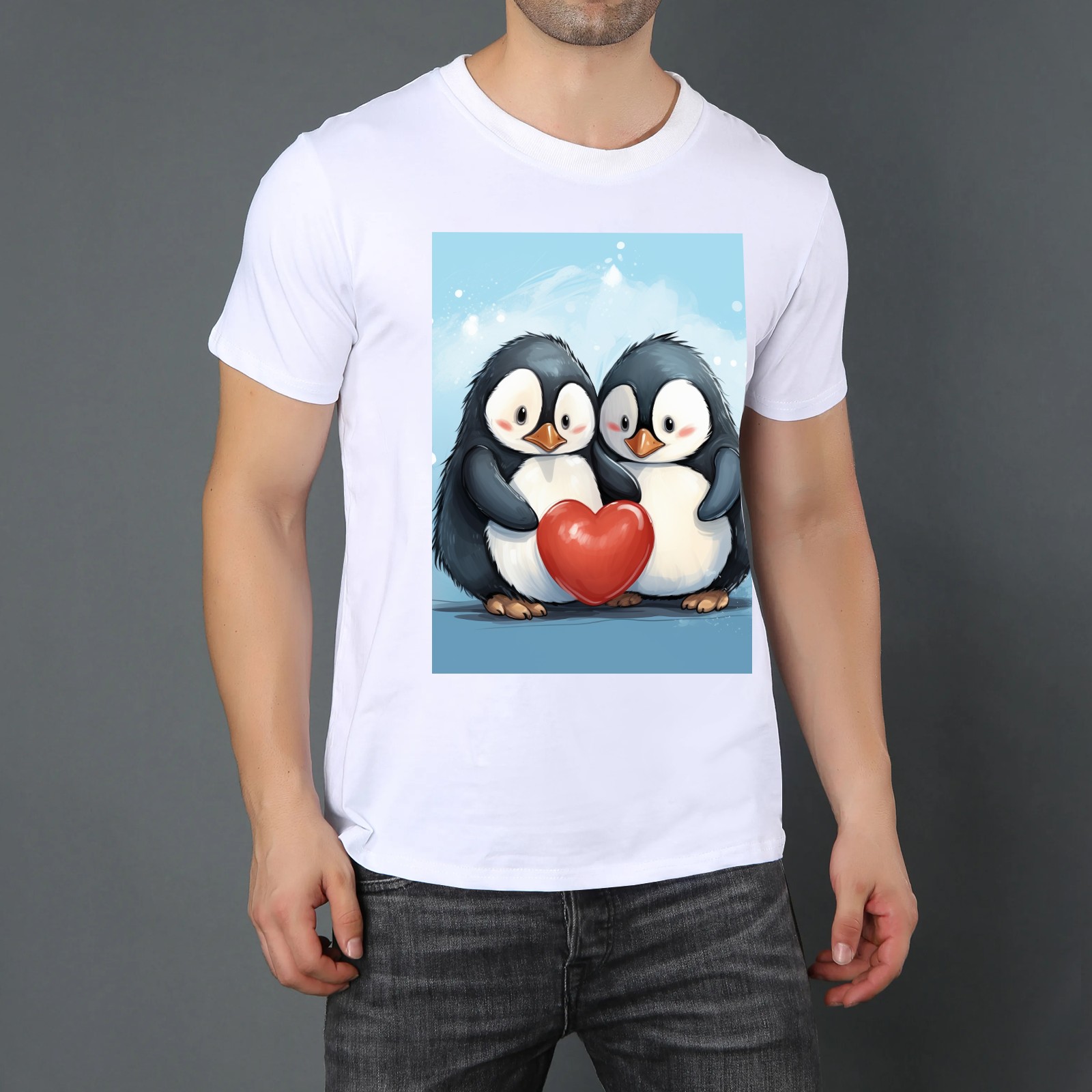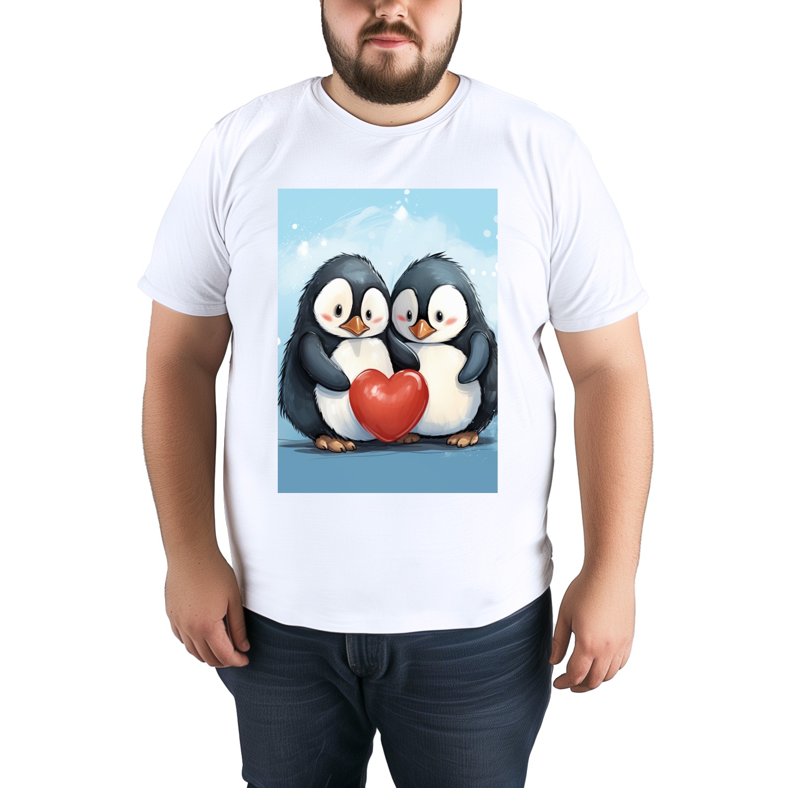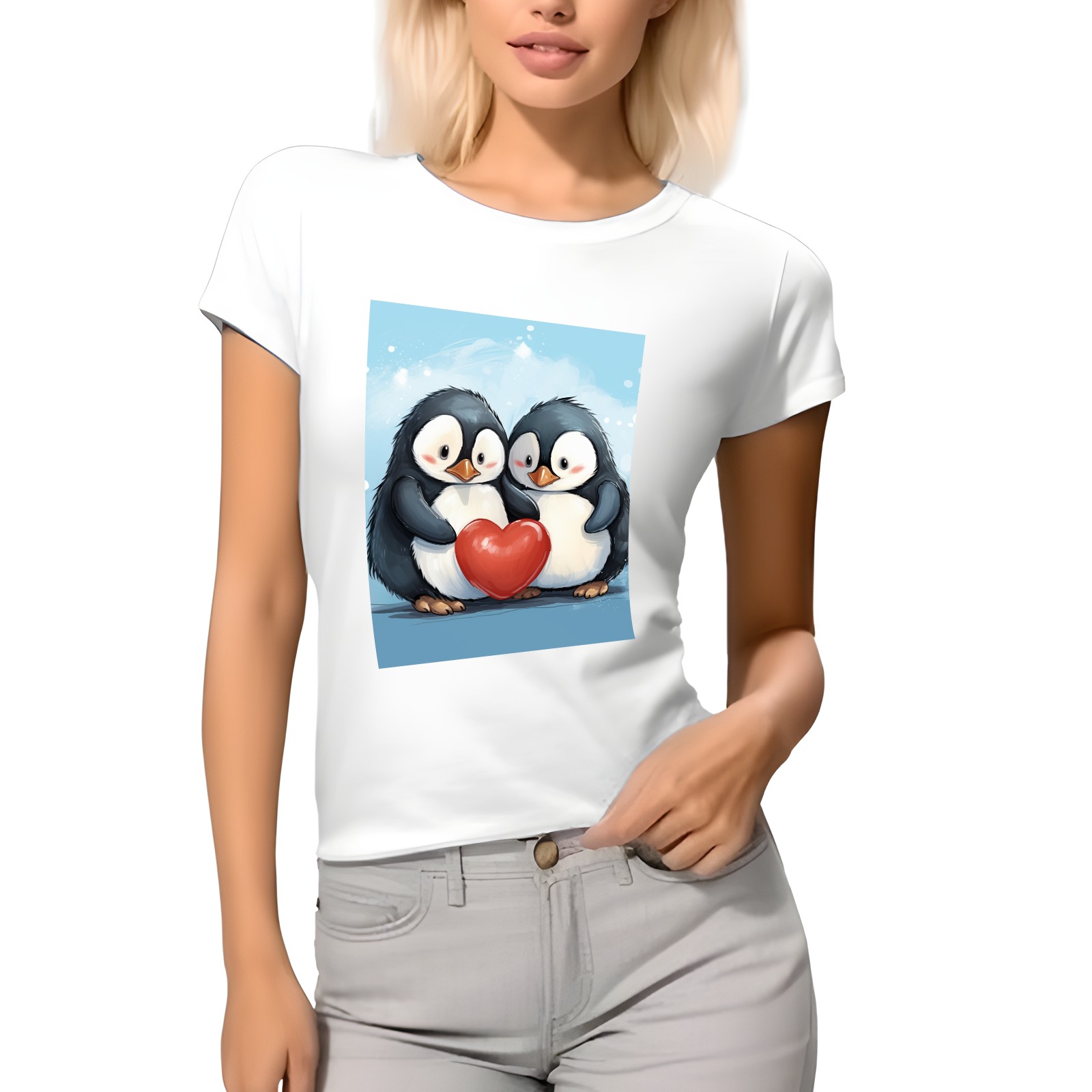 Basic Oversize Tees For WomenTwo Penguins Hugging A Red Heart (2) Loose Boyfriend Shirts Casual Blouse round neck