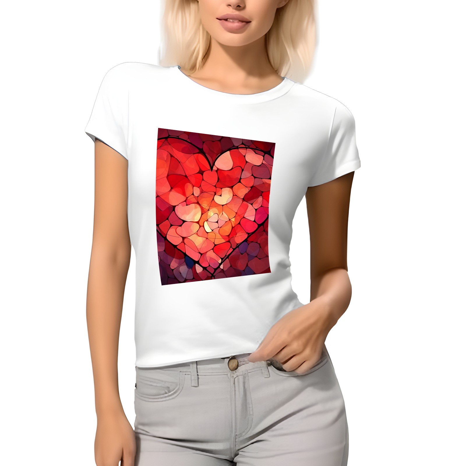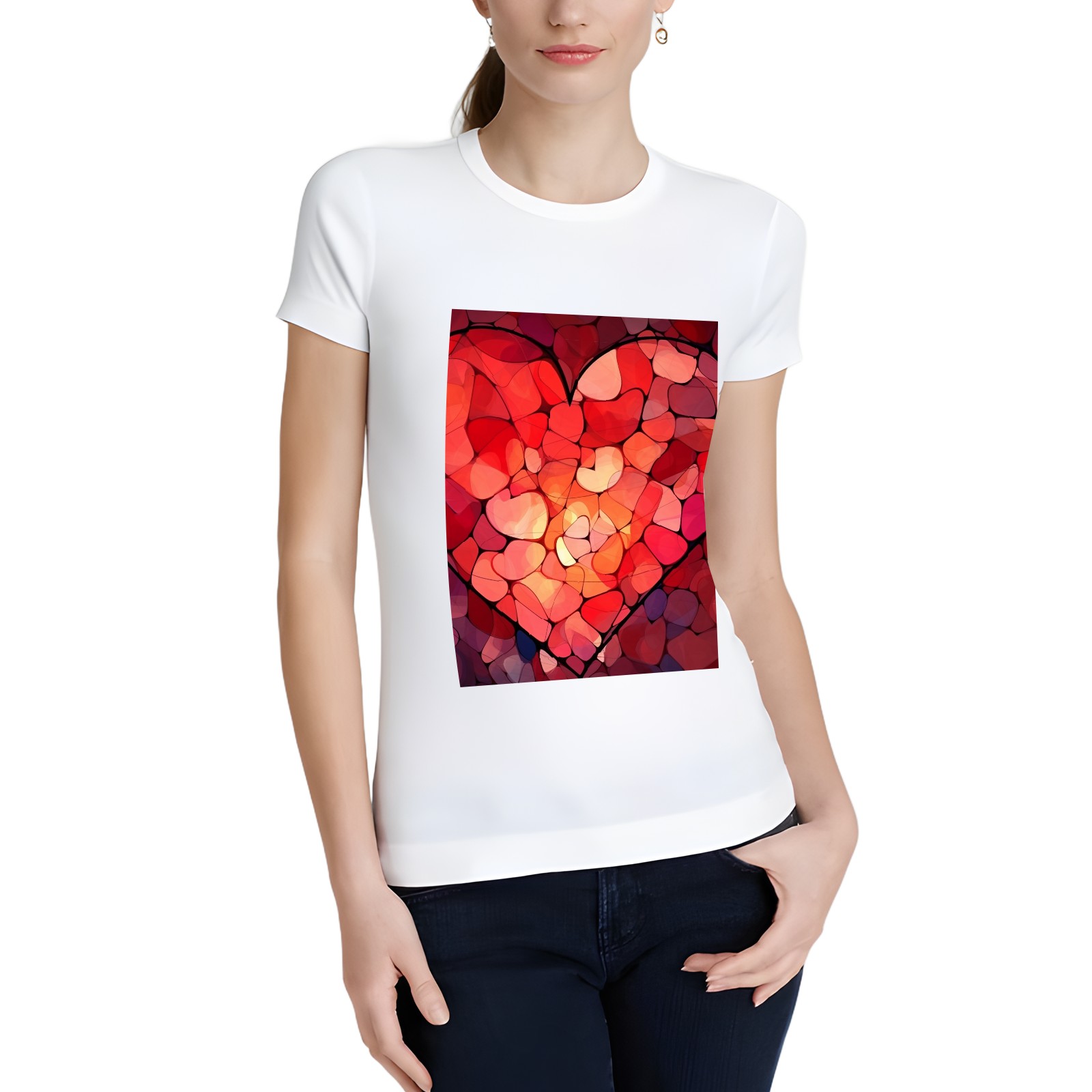Basic Oversize Tees For WomenPurple Hearts (4) Loose Boyfriend Shirts Casual Blouse round neck