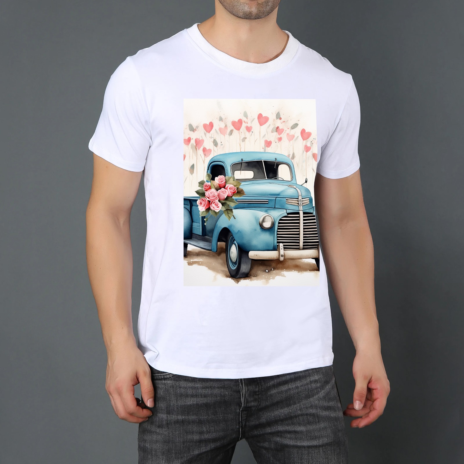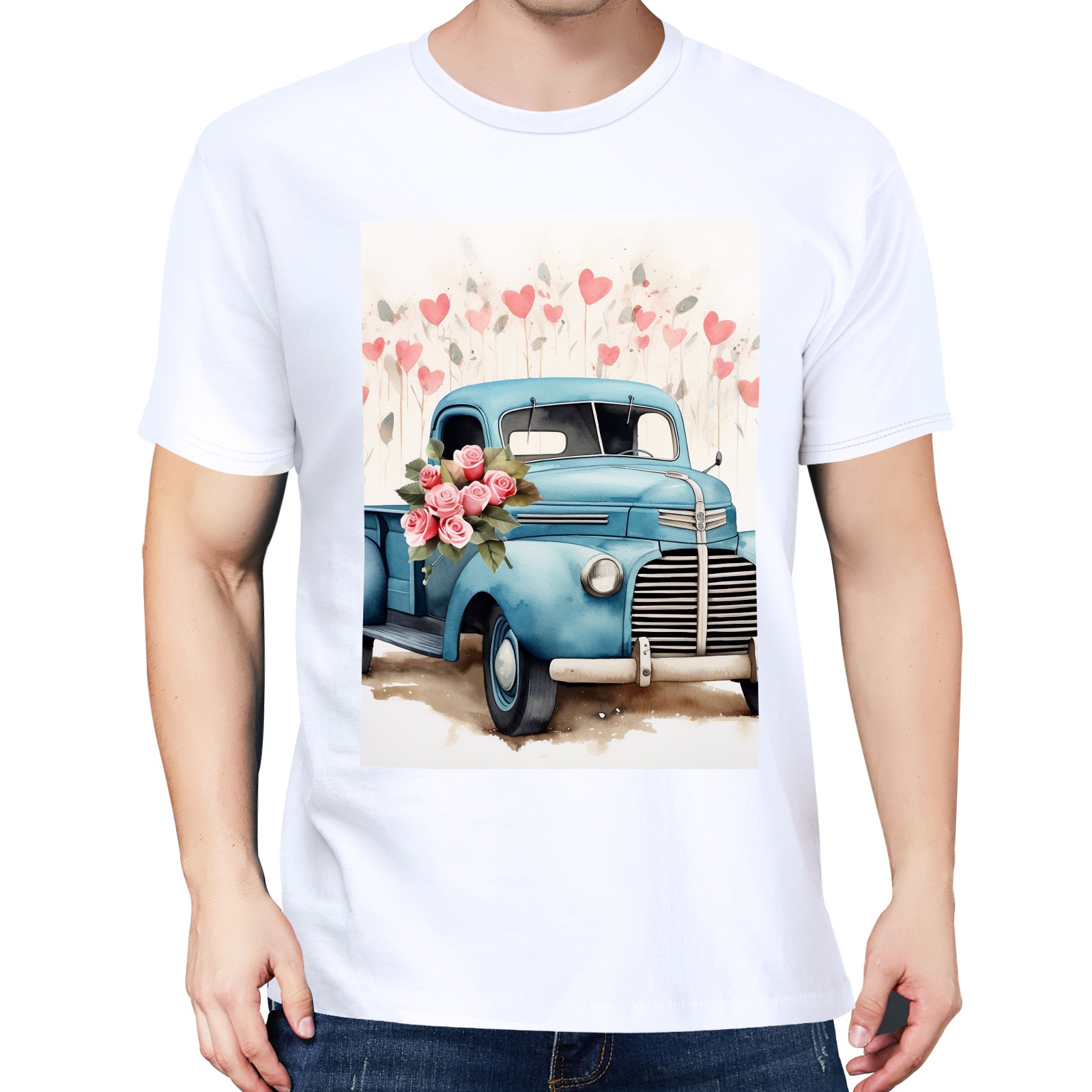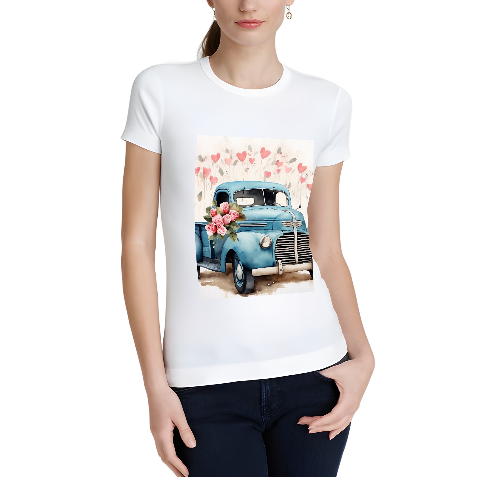 Basic Oversize Tees For WomenLove Truck (9) Loose Boyfriend Shirts Casual Blouse round neck