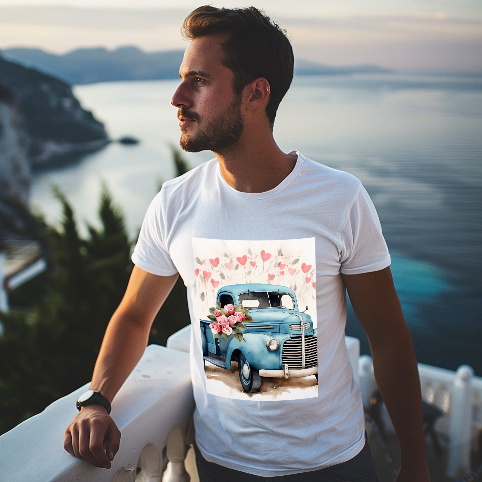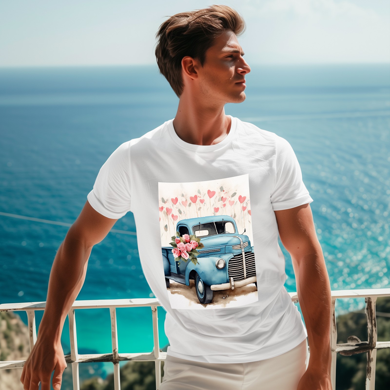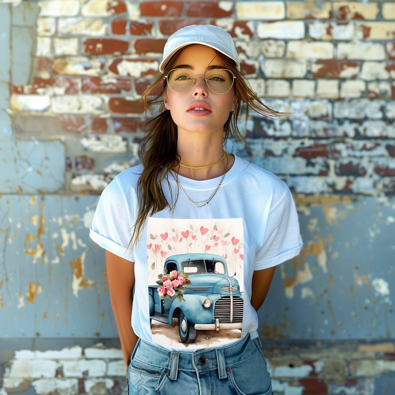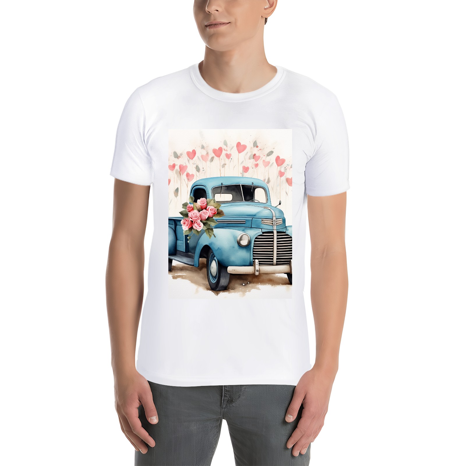 Basic Oversize Tees For WomenLove Truck (9) Loose Boyfriend Shirts Casual Blouse round neck