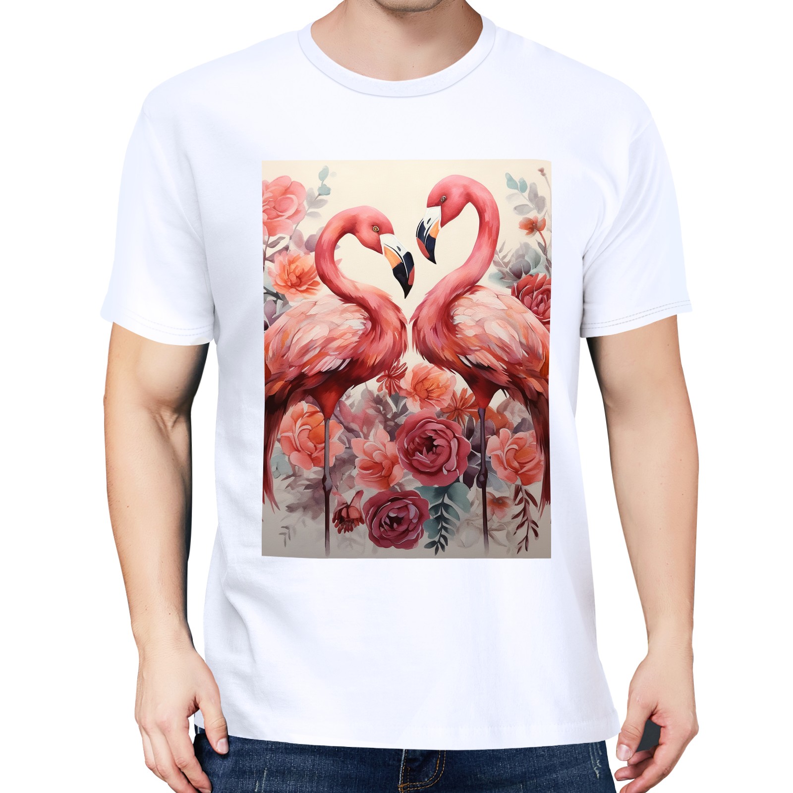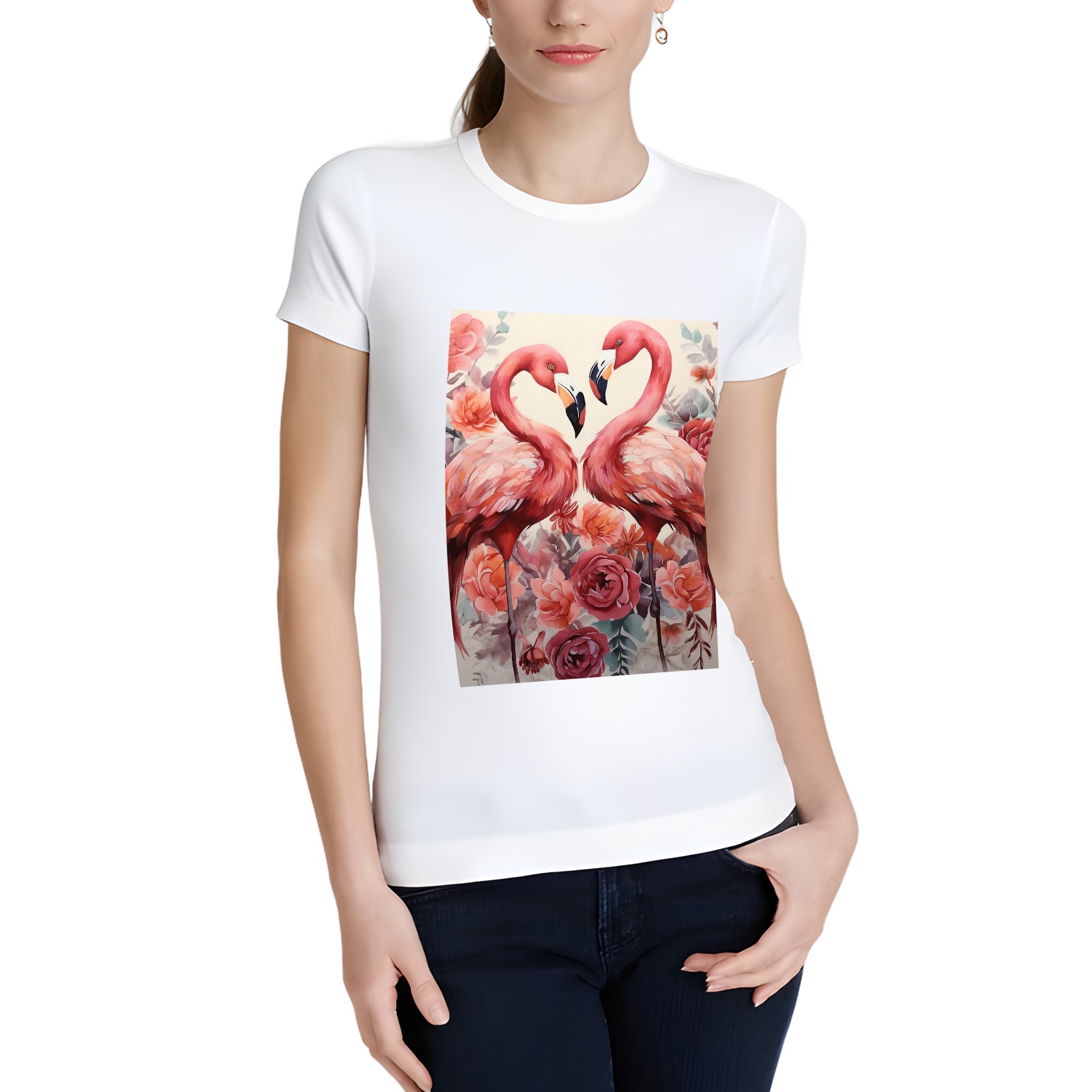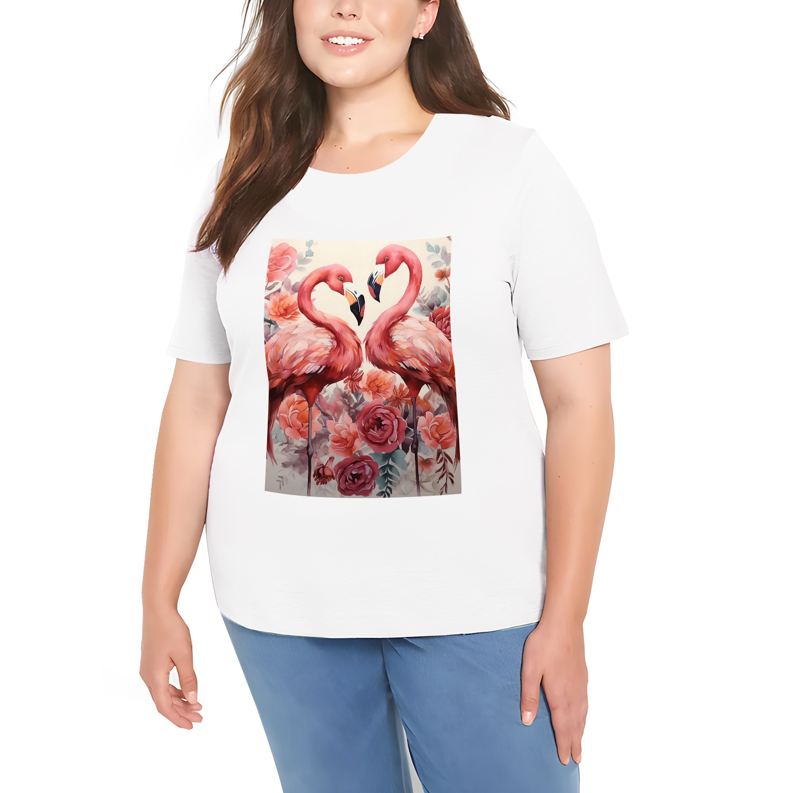 Basic Oversize Tees For WomenPink Flamingo Loose Boyfriend Shirts Casual Blouse round neck