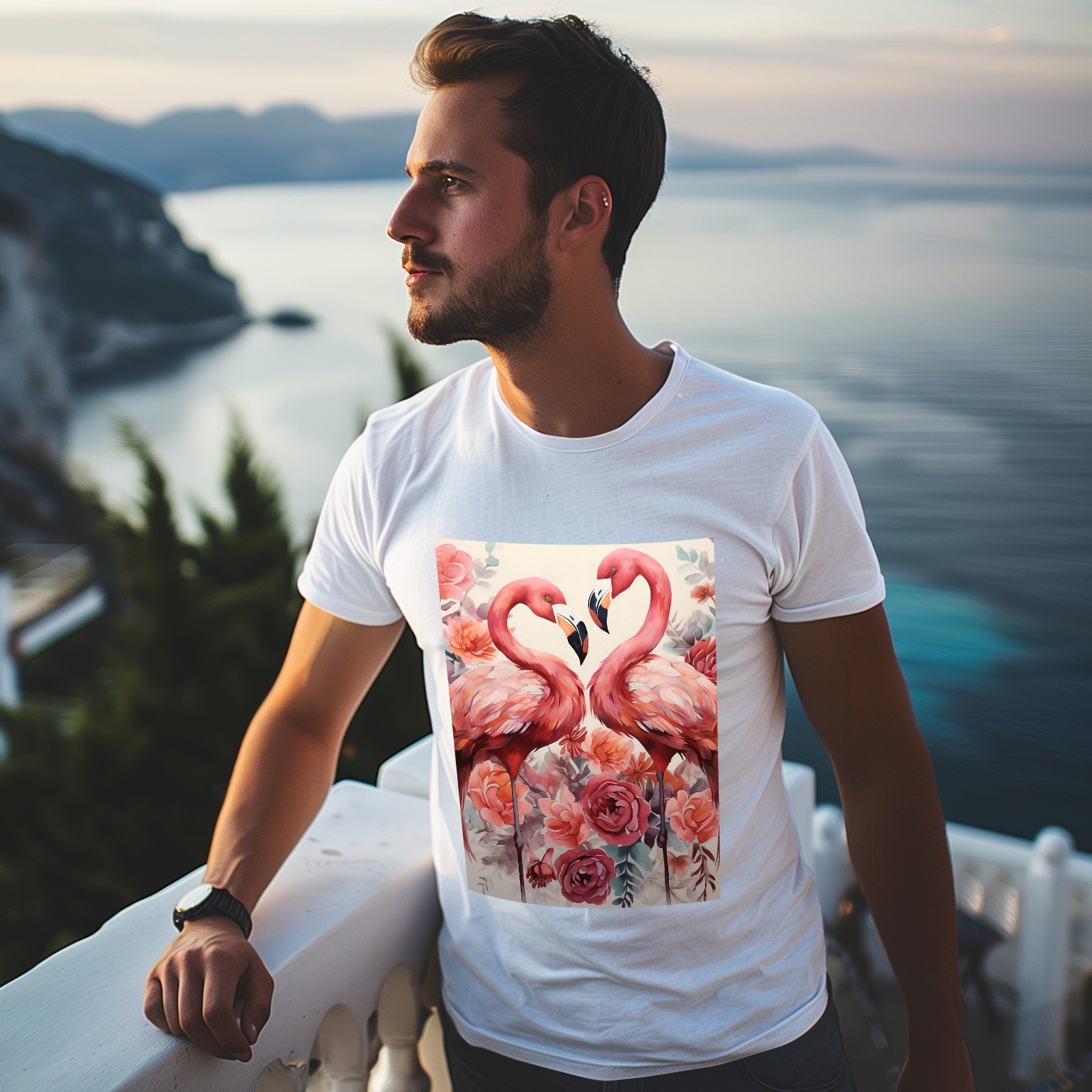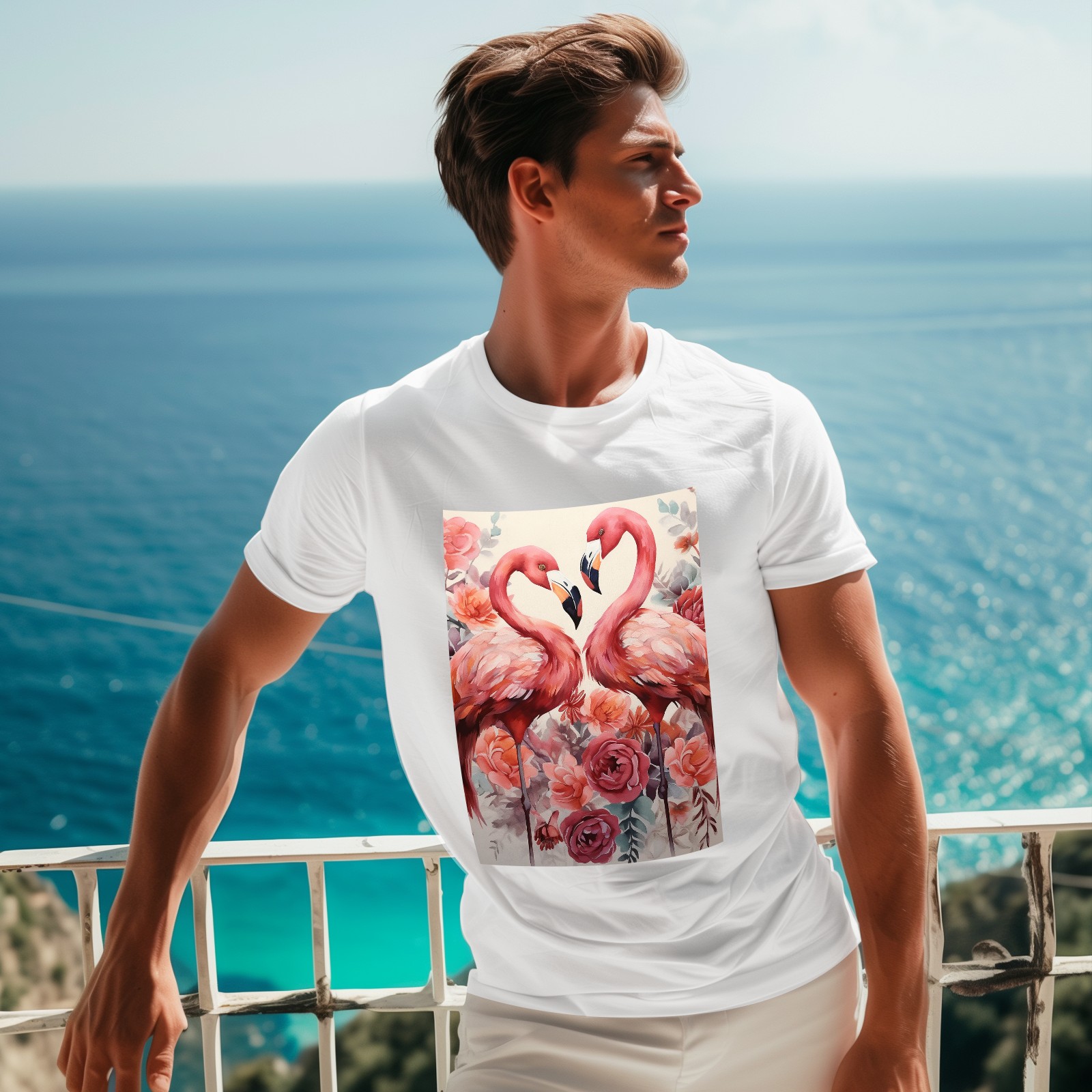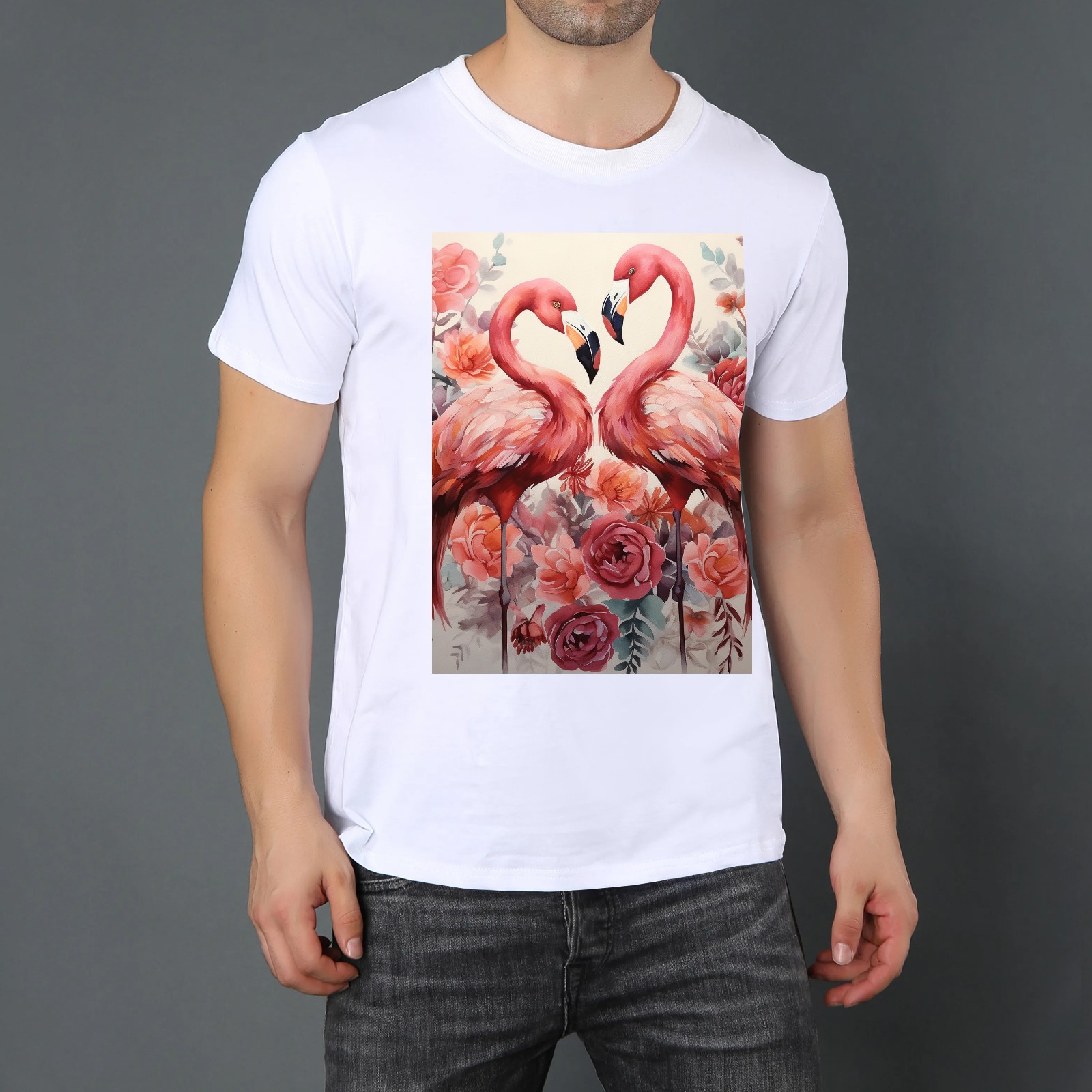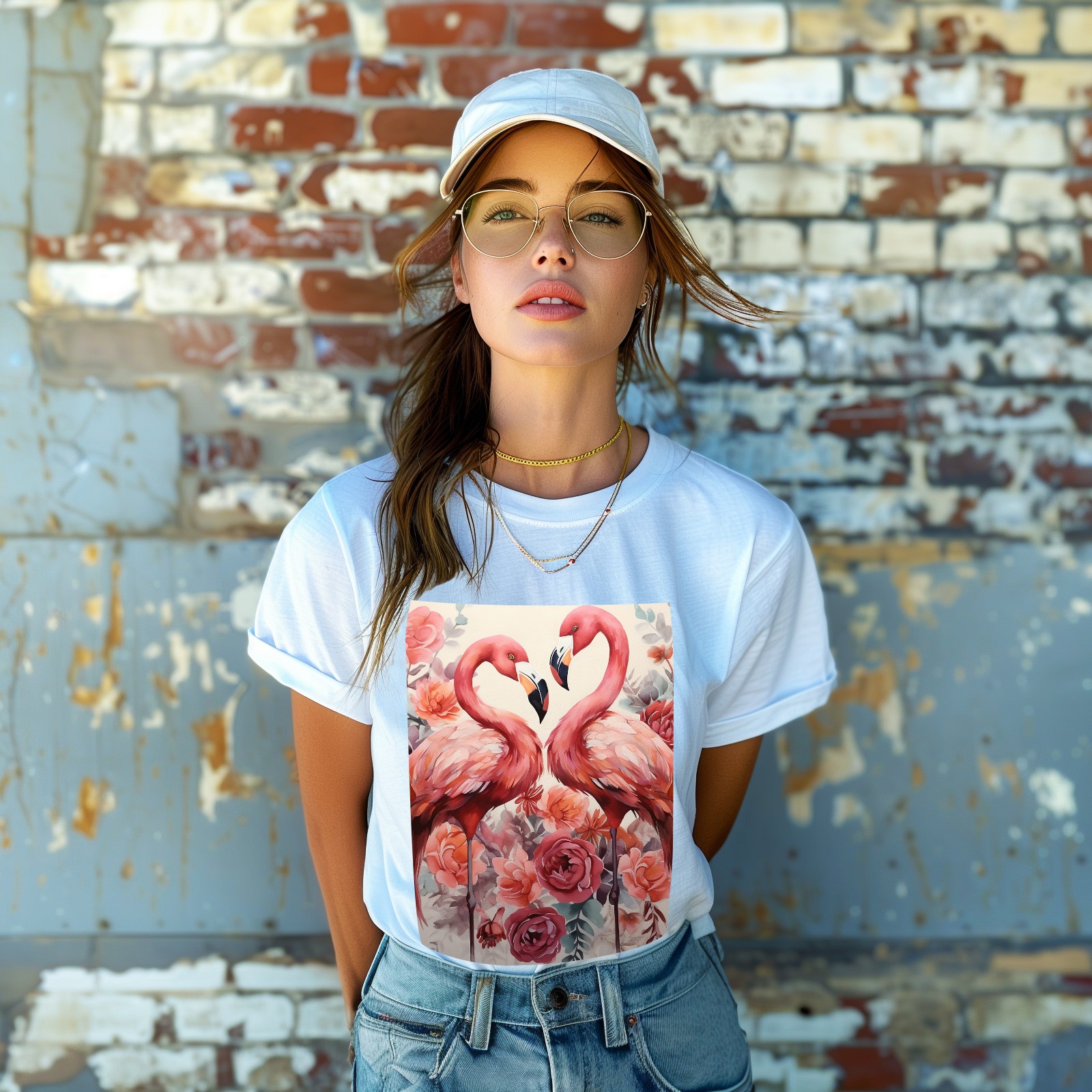 Basic Oversize Tees For WomenPink Flamingo Loose Boyfriend Shirts Casual Blouse round neck