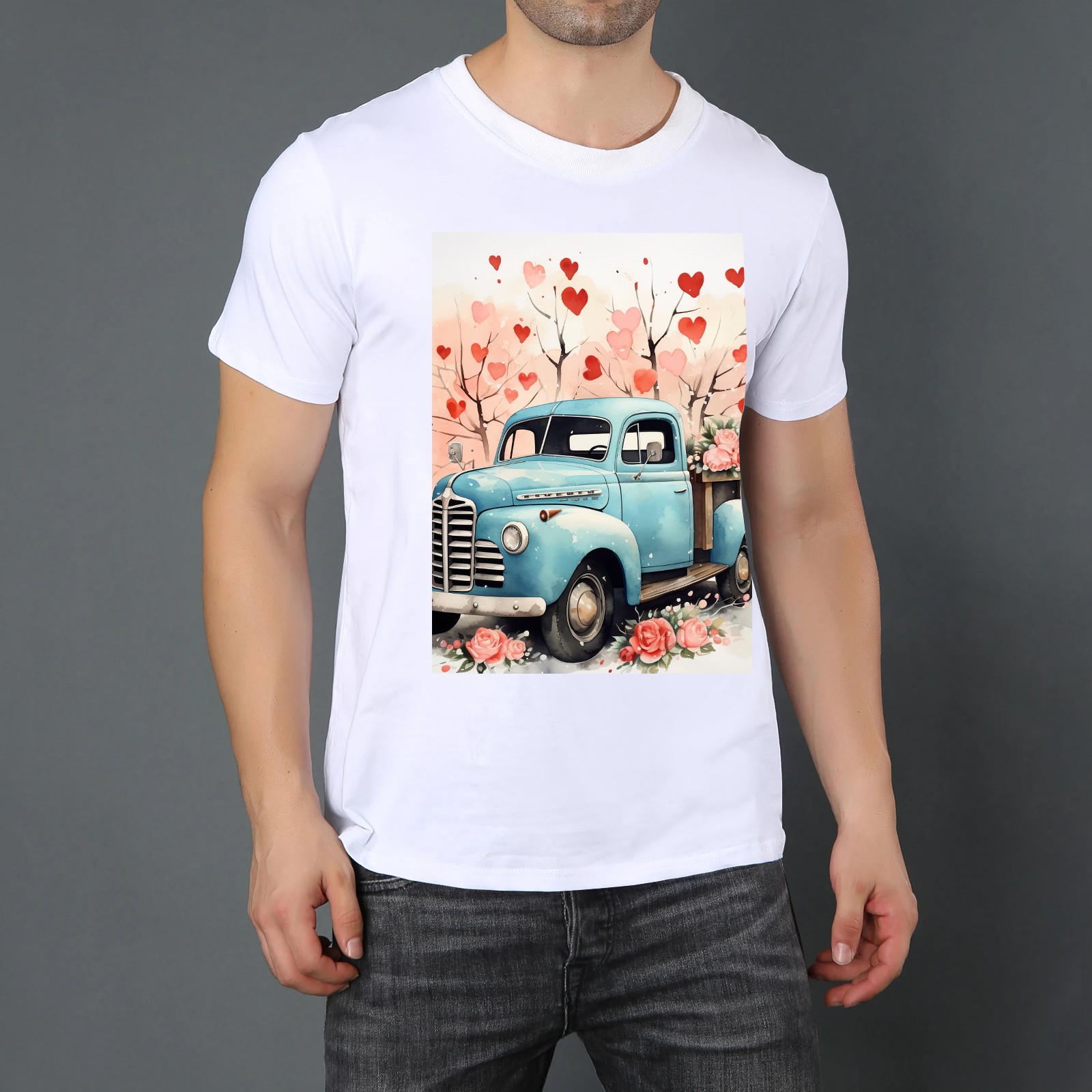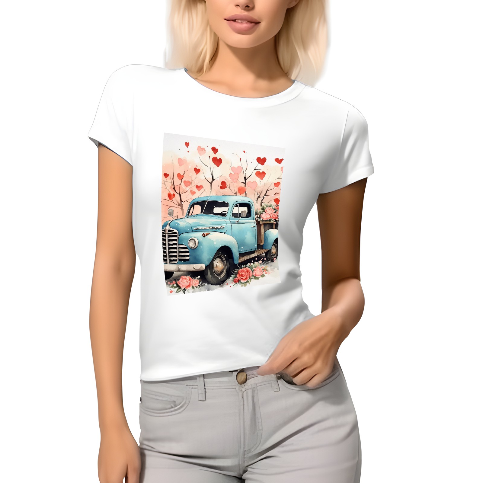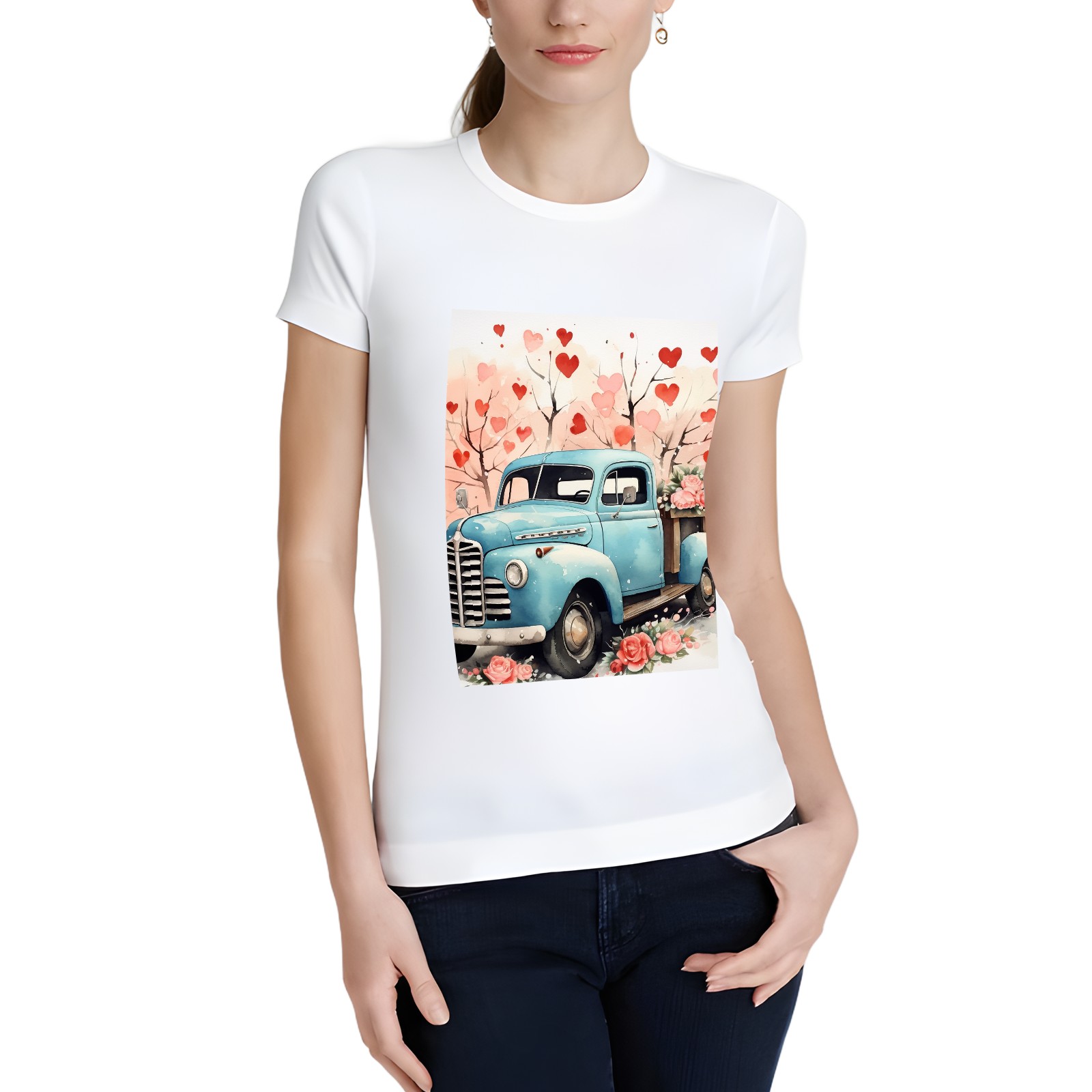 Basic Oversize Tees For WomenLove Truck (6) Loose Boyfriend Shirts Casual Blouse round neck