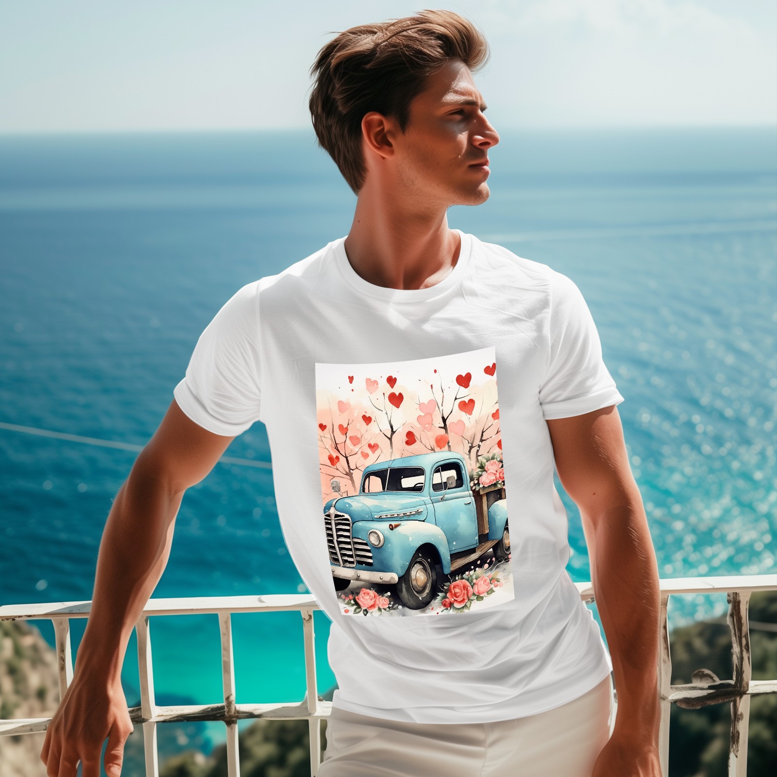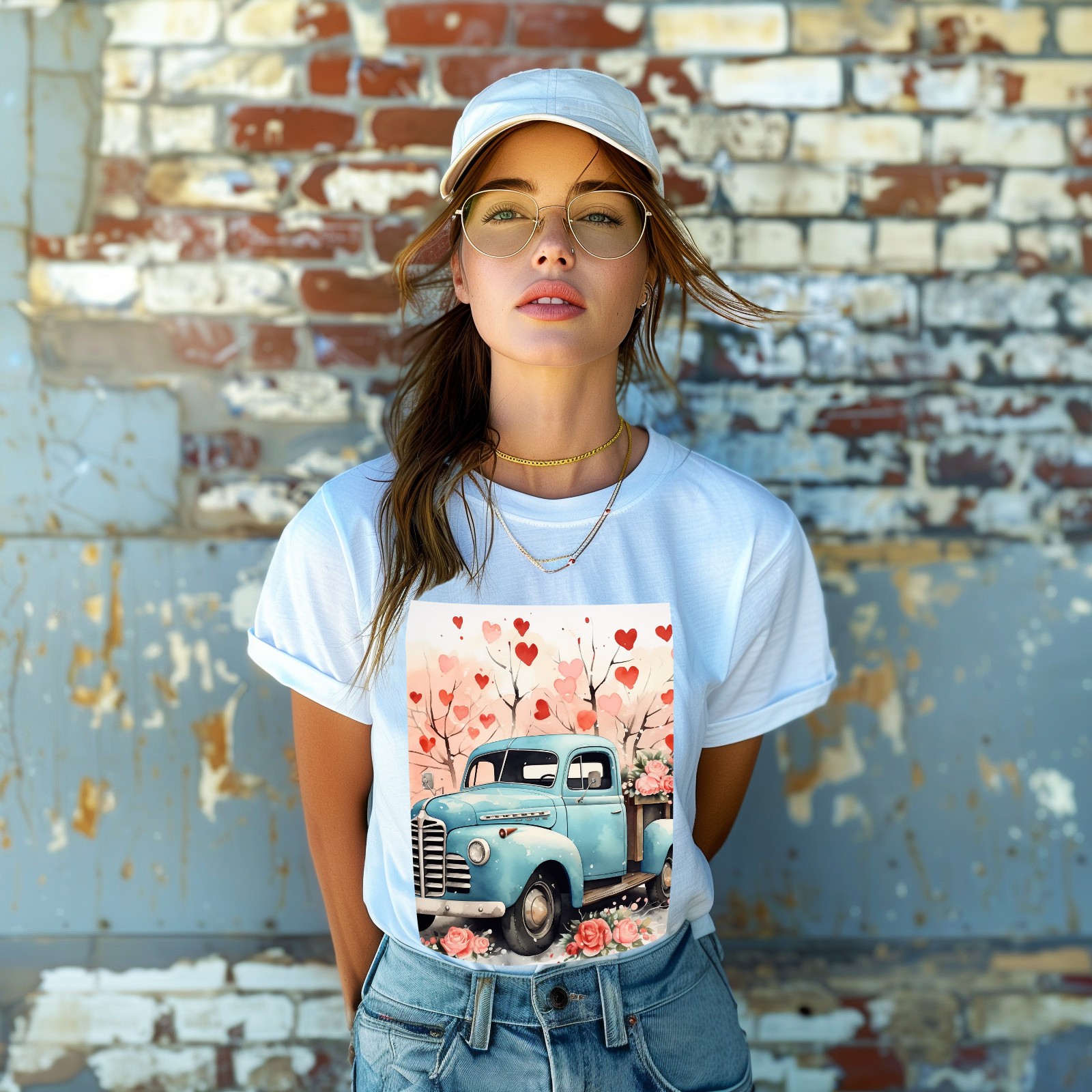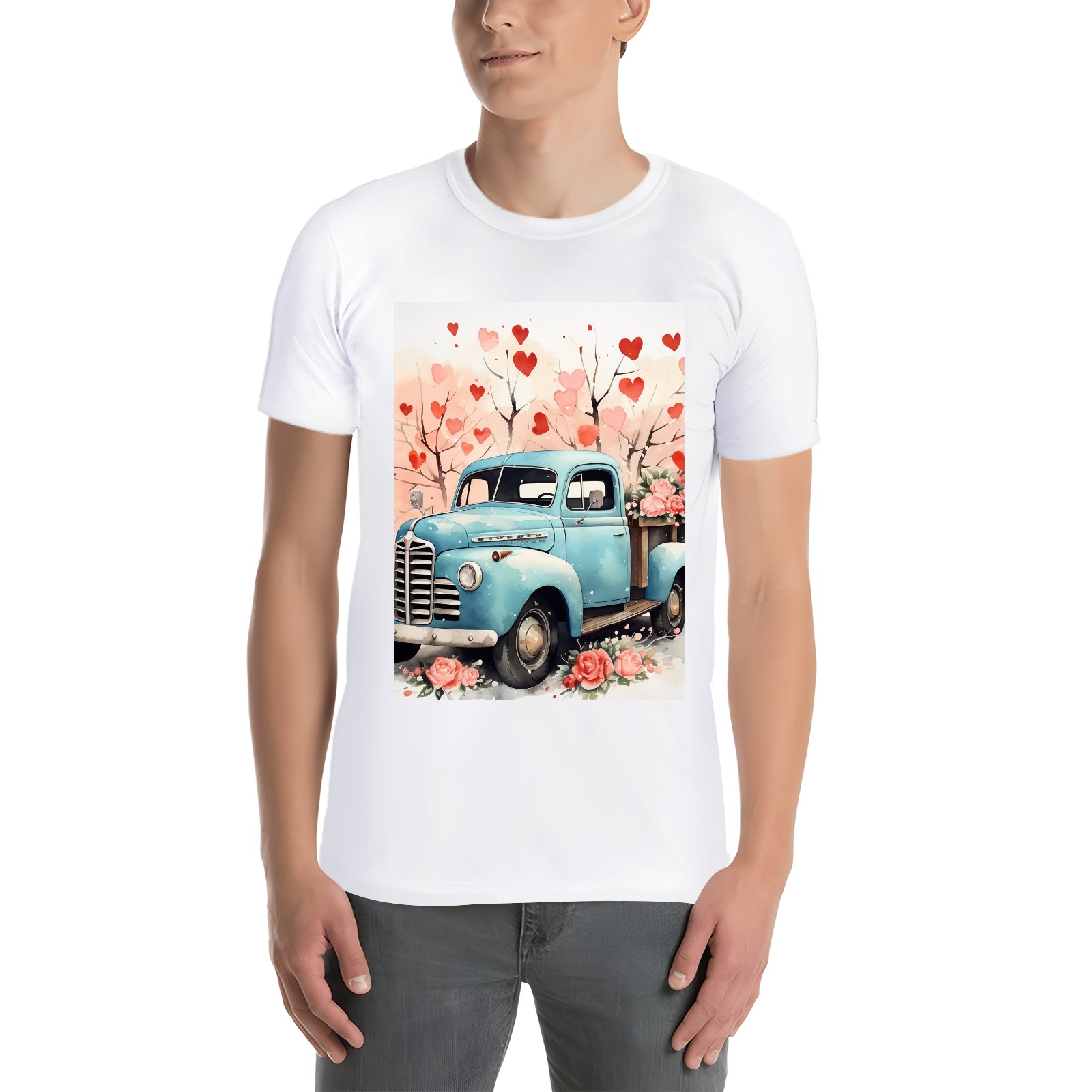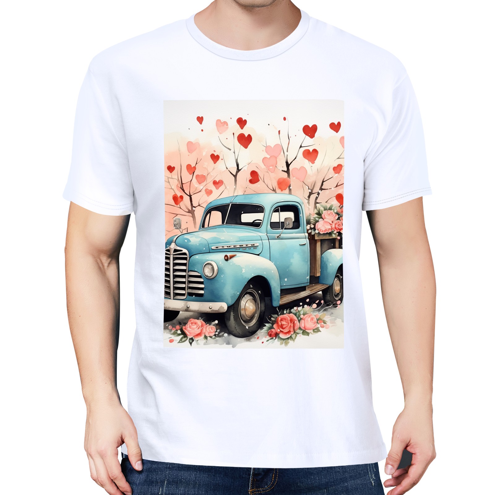 Basic Oversize Tees For WomenLove Truck (6) Loose Boyfriend Shirts Casual Blouse round neck