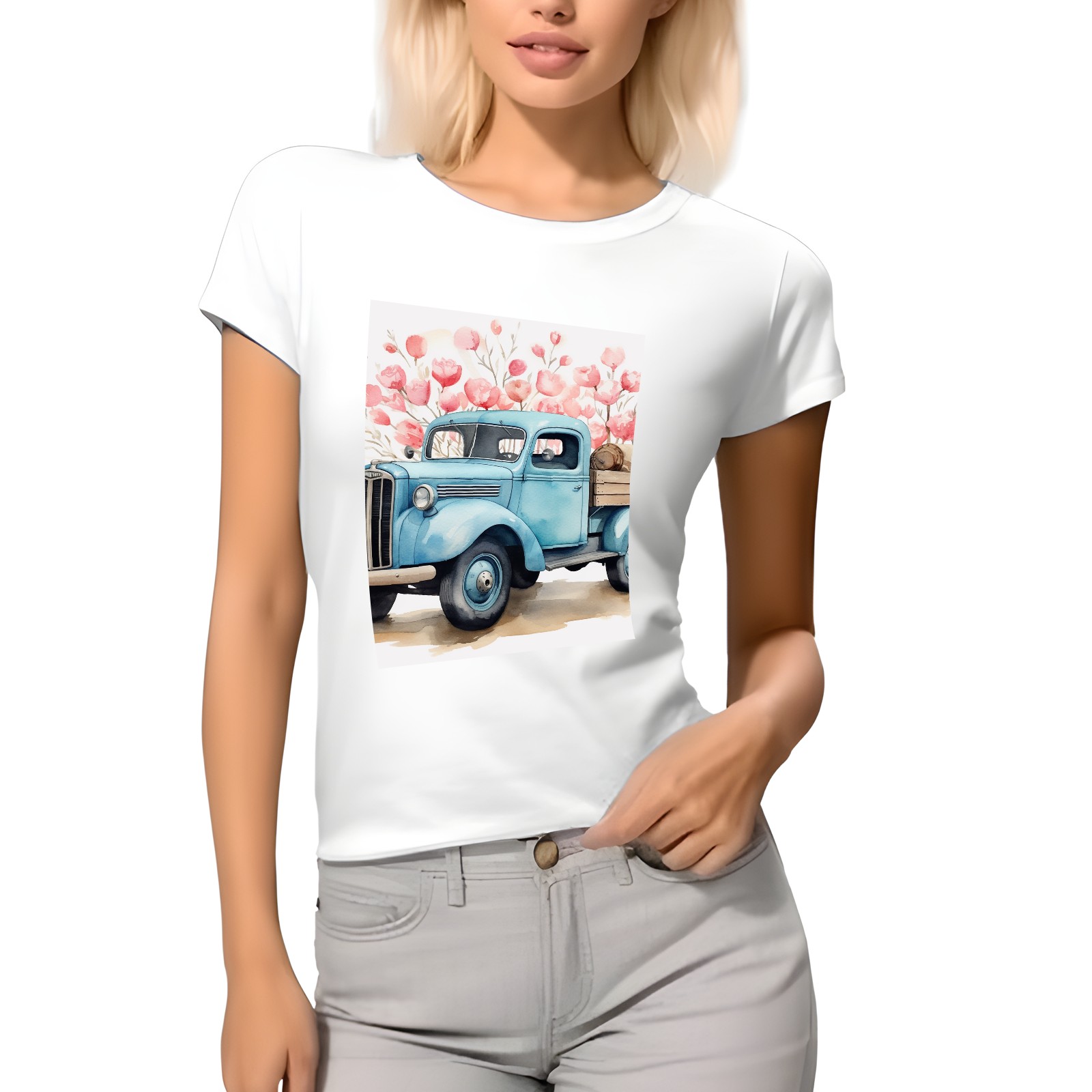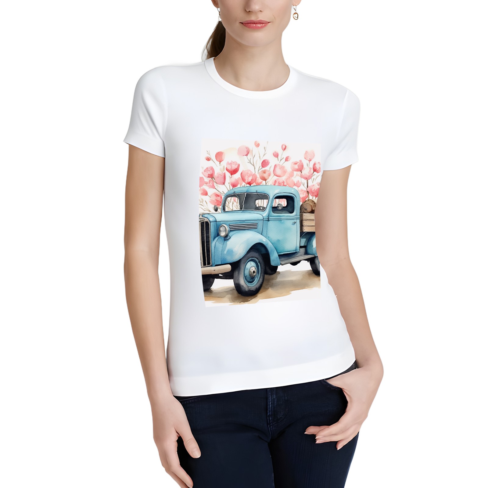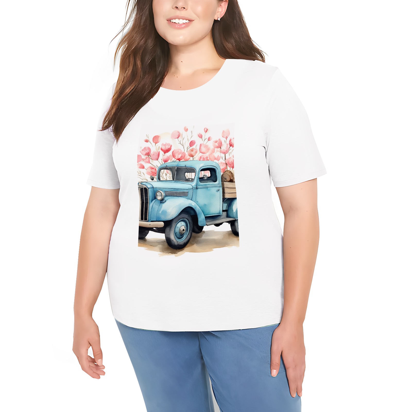 Basic Oversize Tees For WomenLove Truck (8) Loose Boyfriend Shirts Casual Blouse round neck