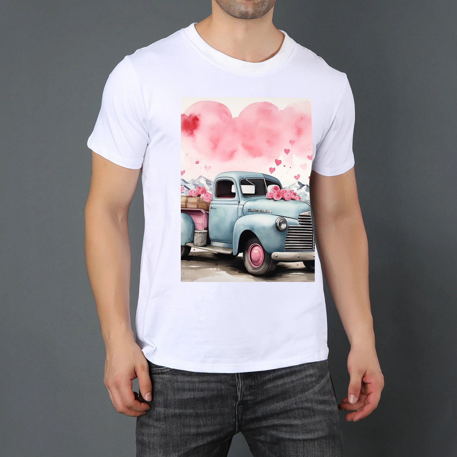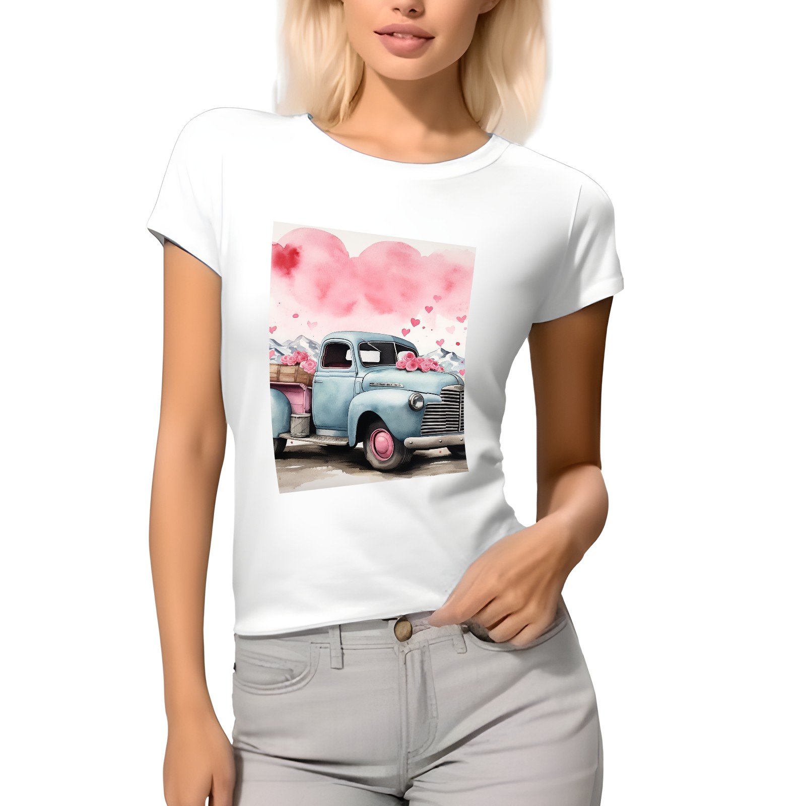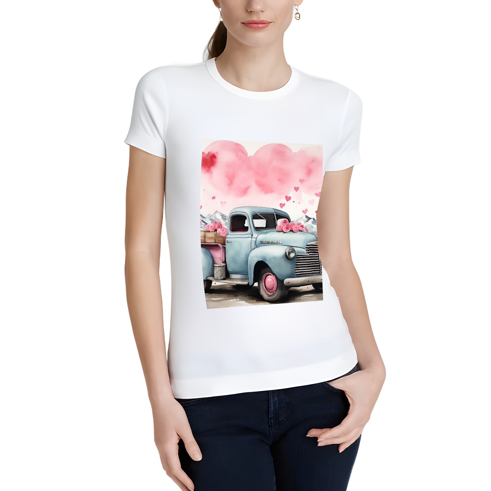Basic Oversize Tees For WomenLove Truck (3) Loose Boyfriend Shirts Casual Blouse round neck