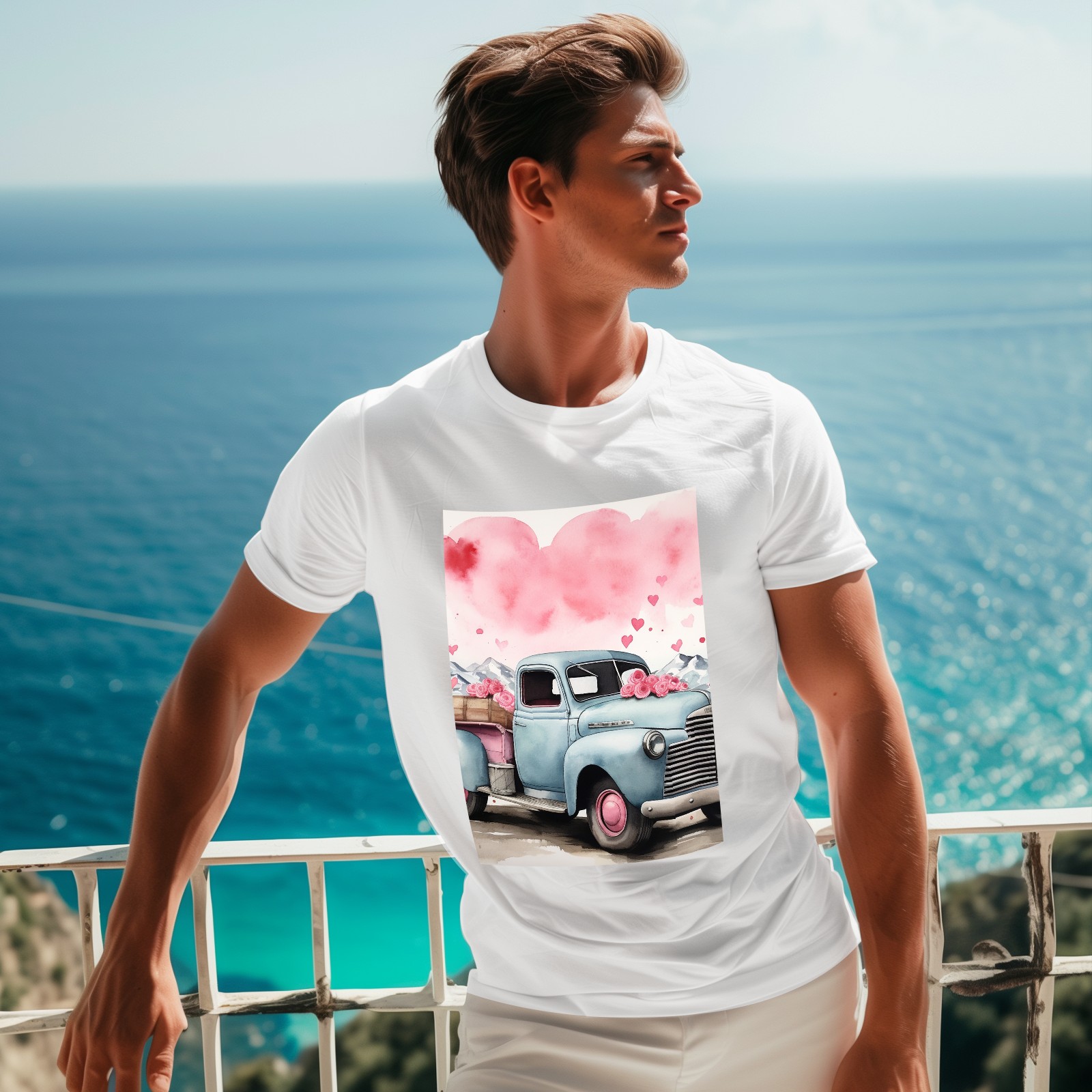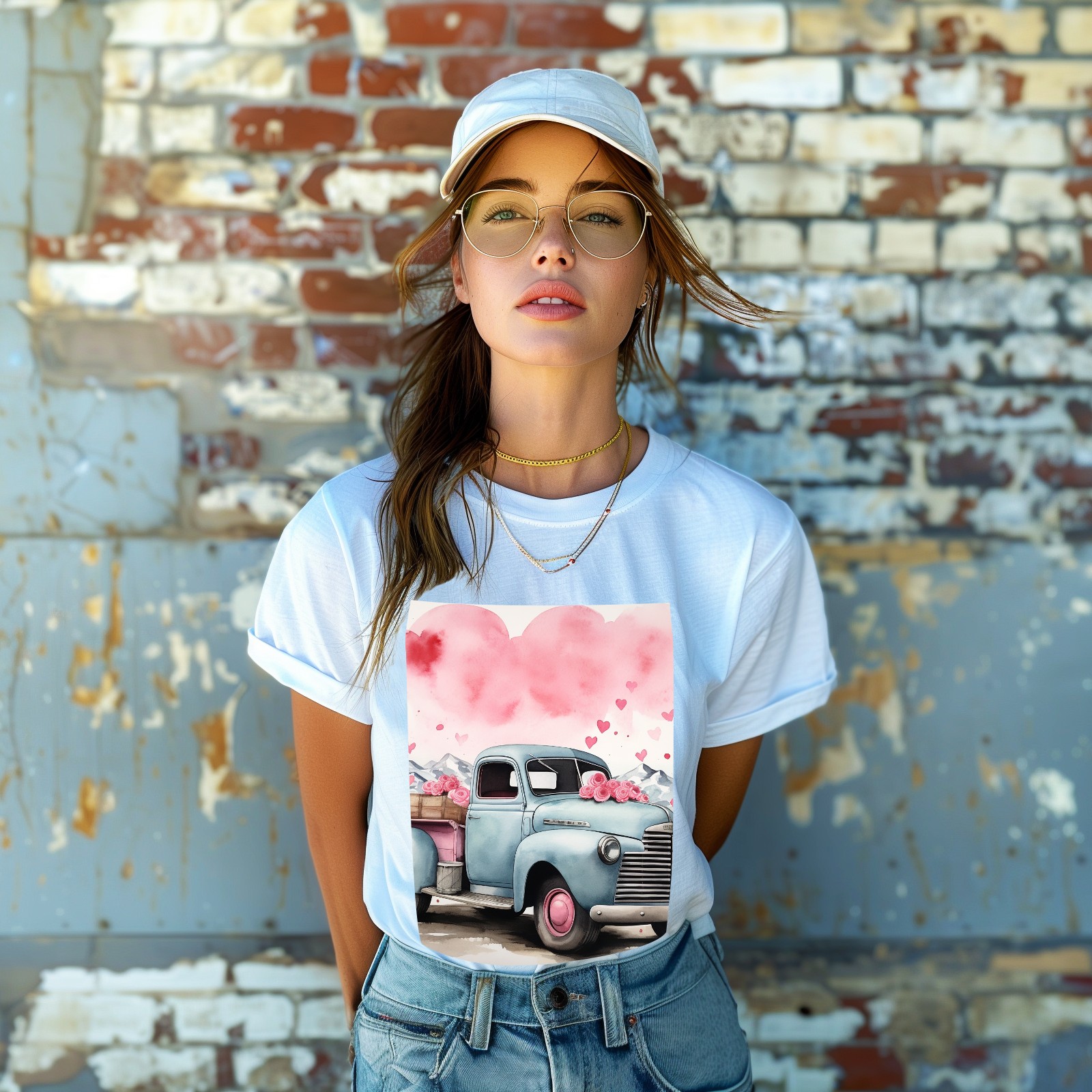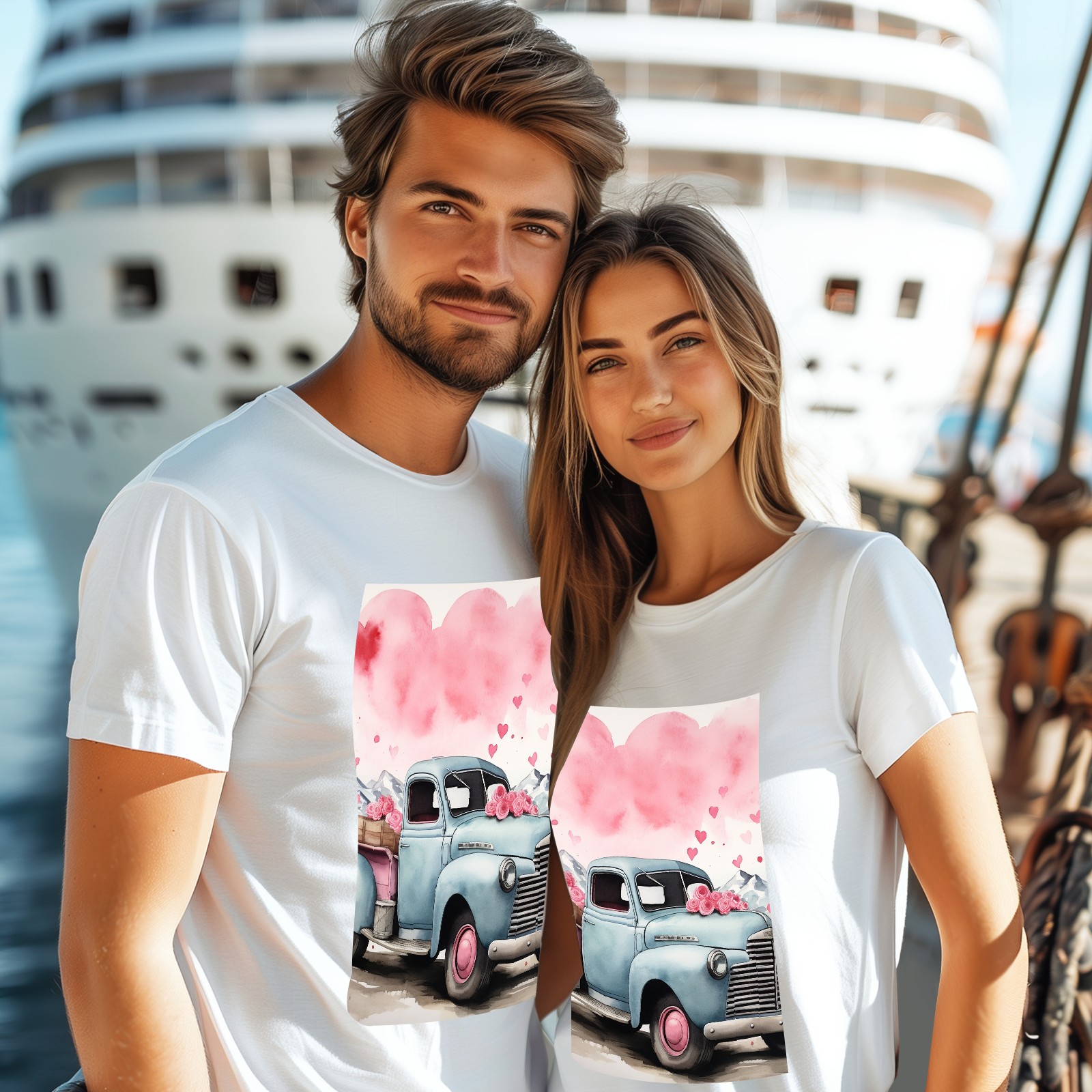 Basic Oversize Tees For WomenLove Truck (3) Loose Boyfriend Shirts Casual Blouse round neck