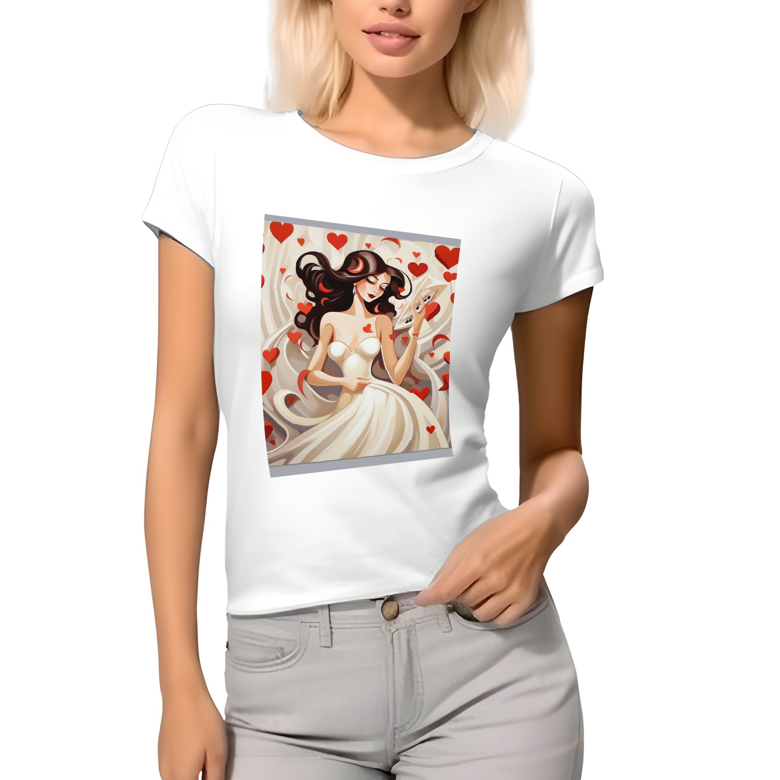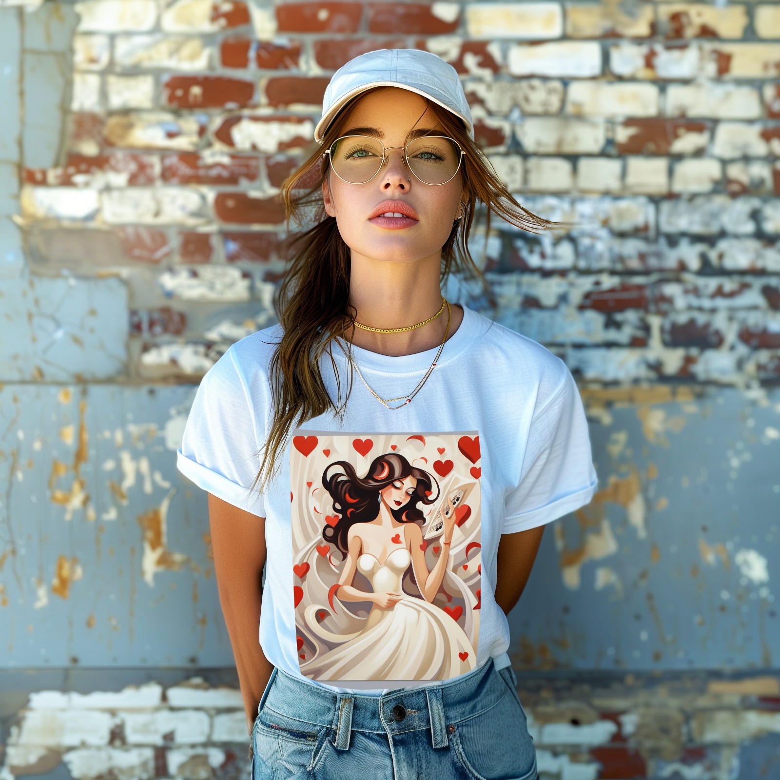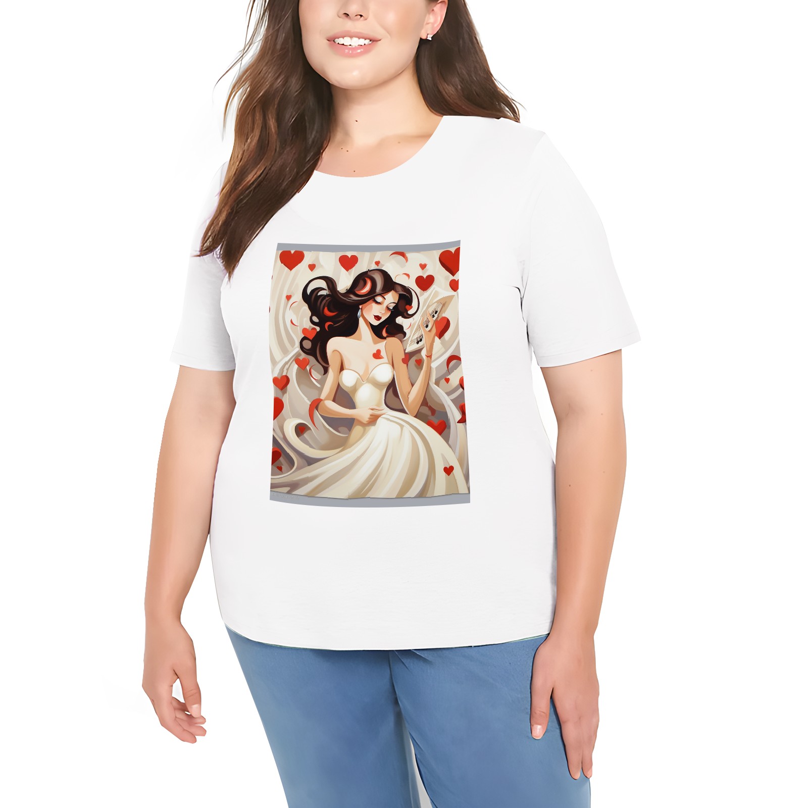 Basic Oversize Tees For WomenGirl With A Dress In Front Of Hearts (3) Loose Boyfriend Shirts Casual Blouse round neck