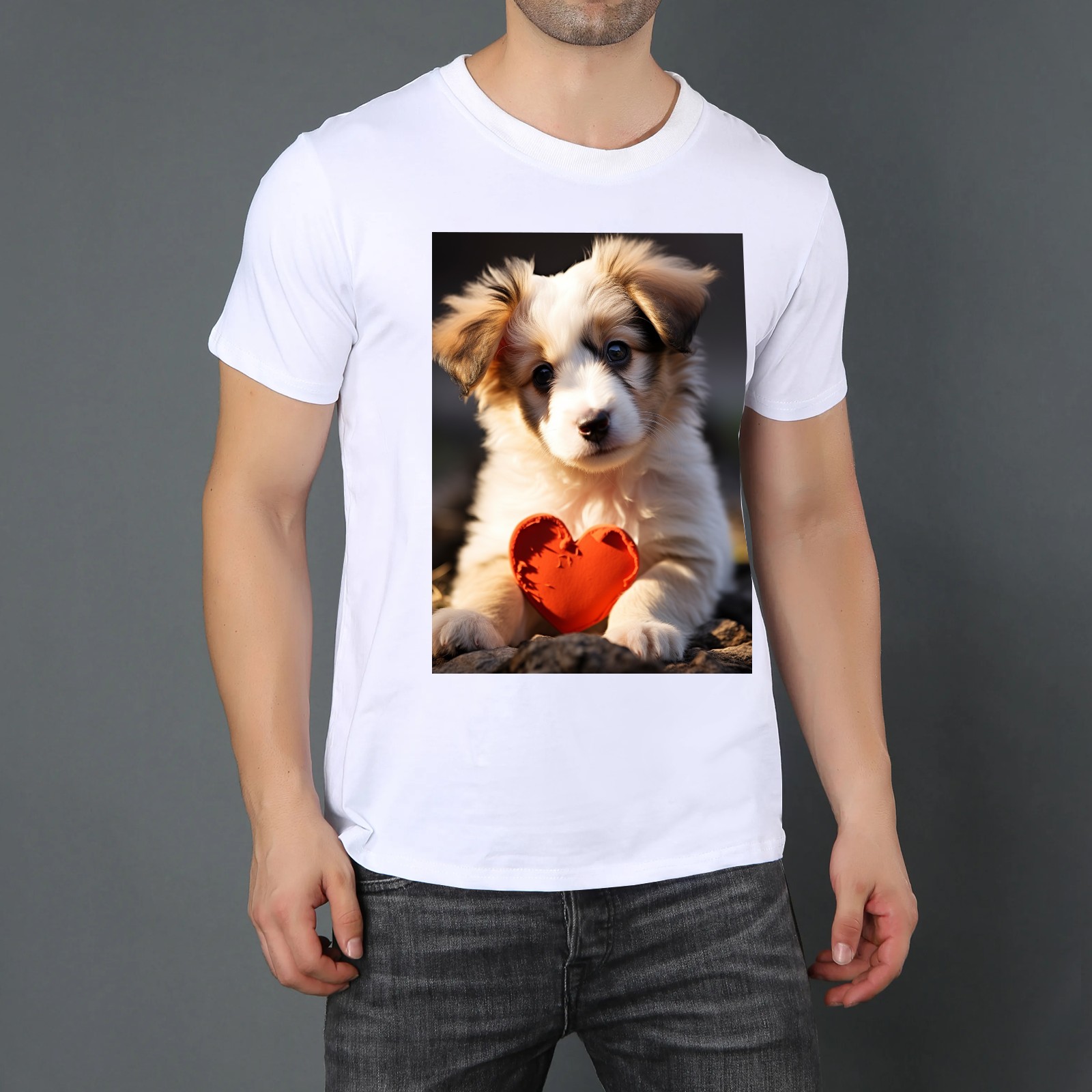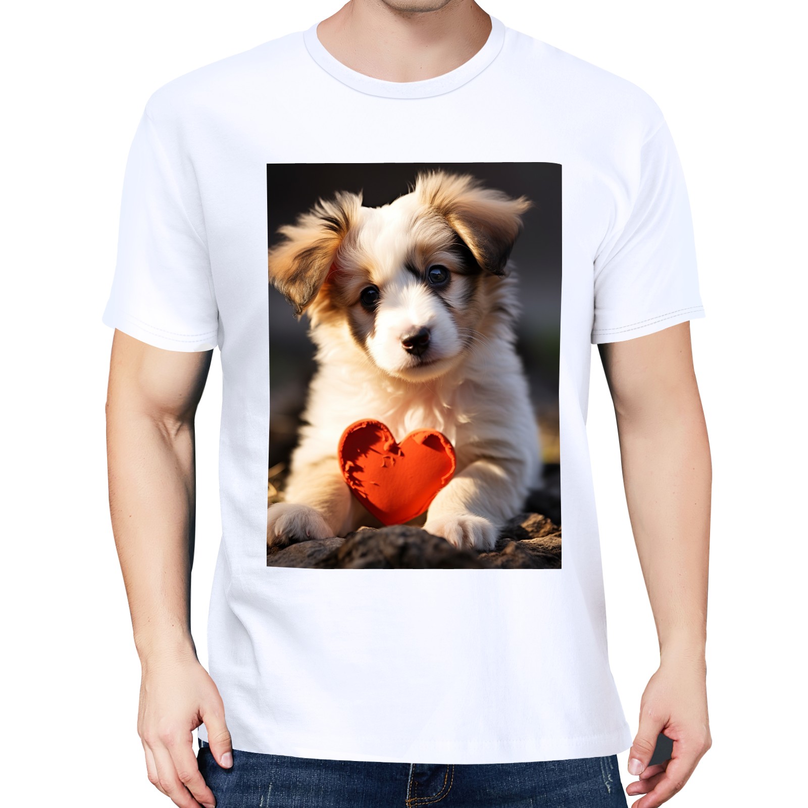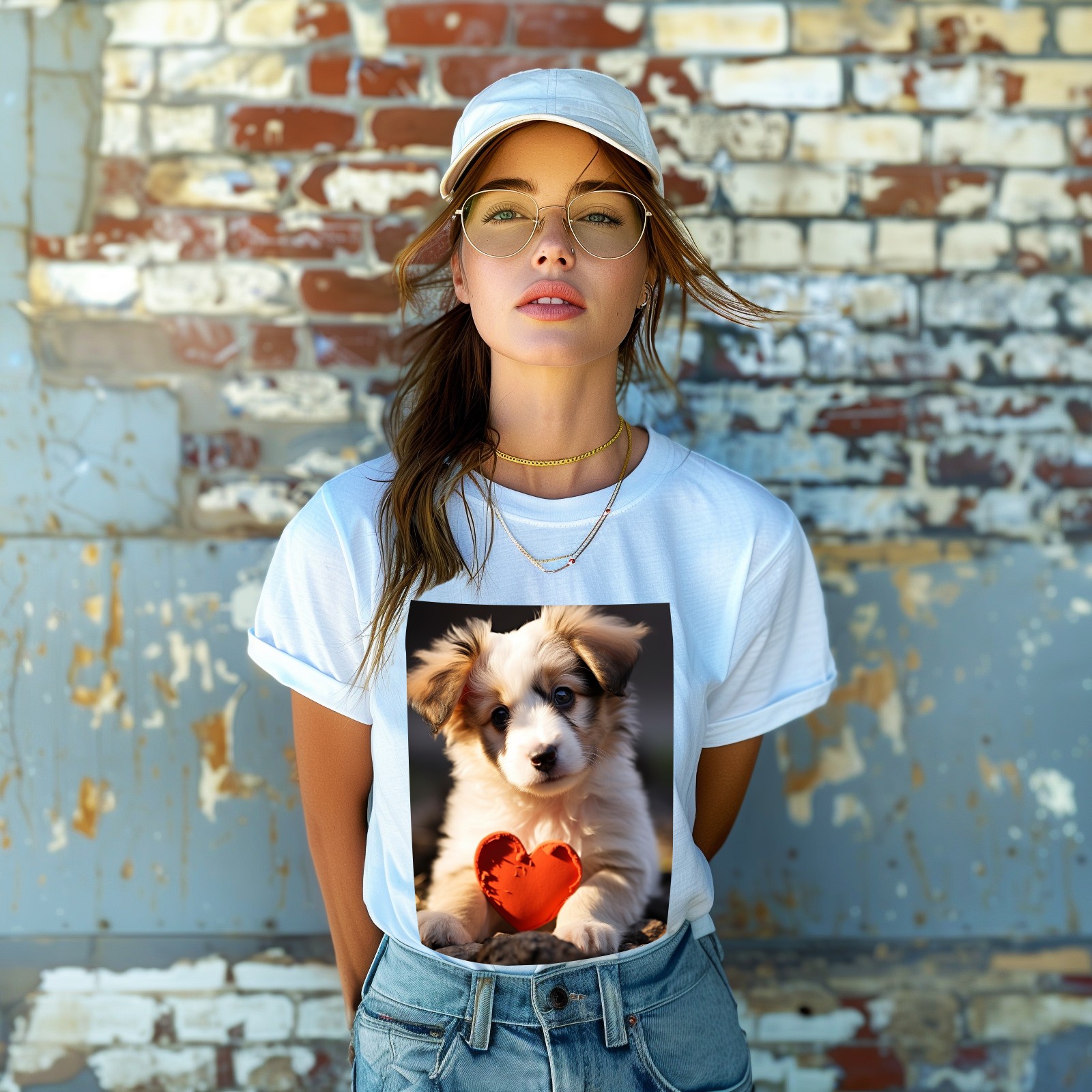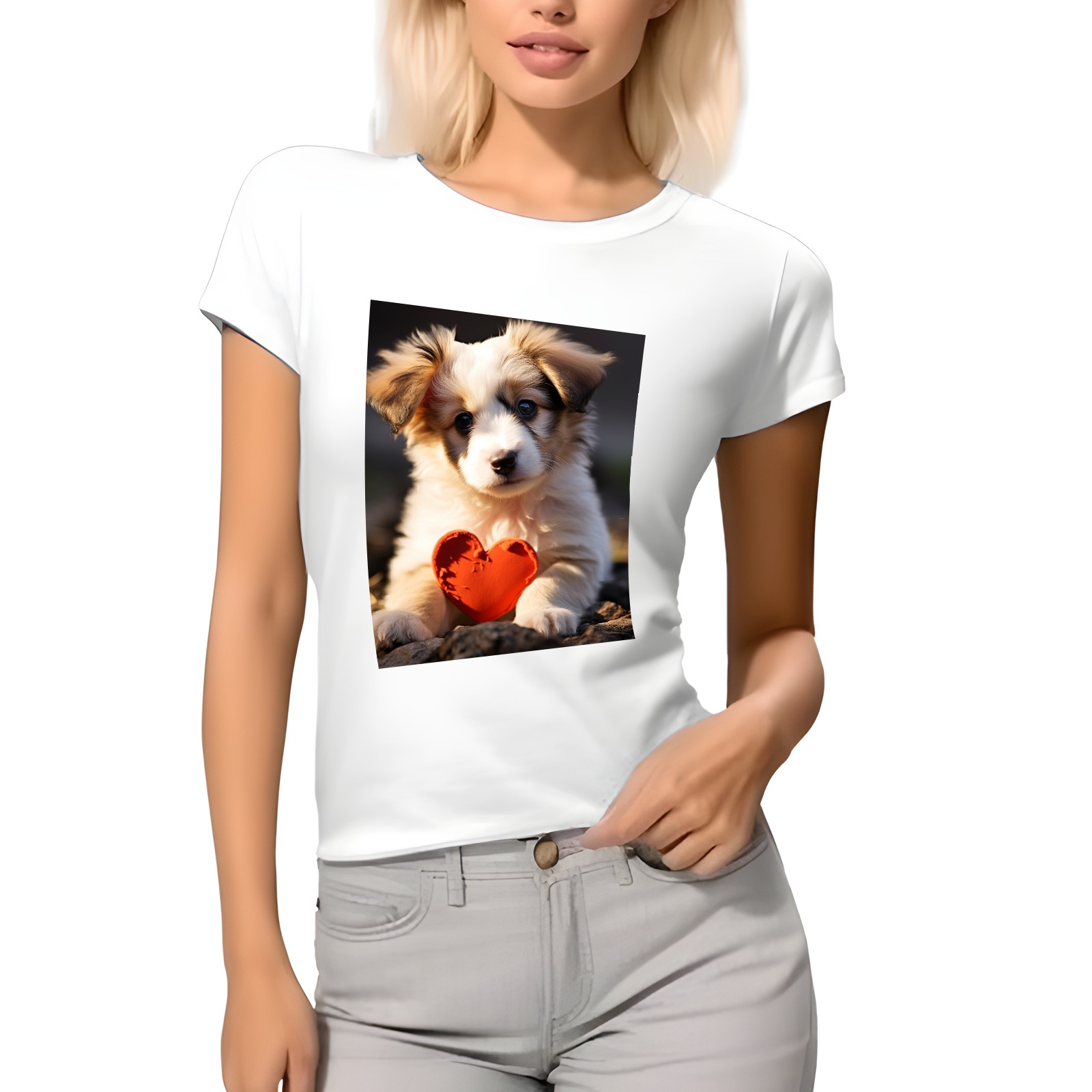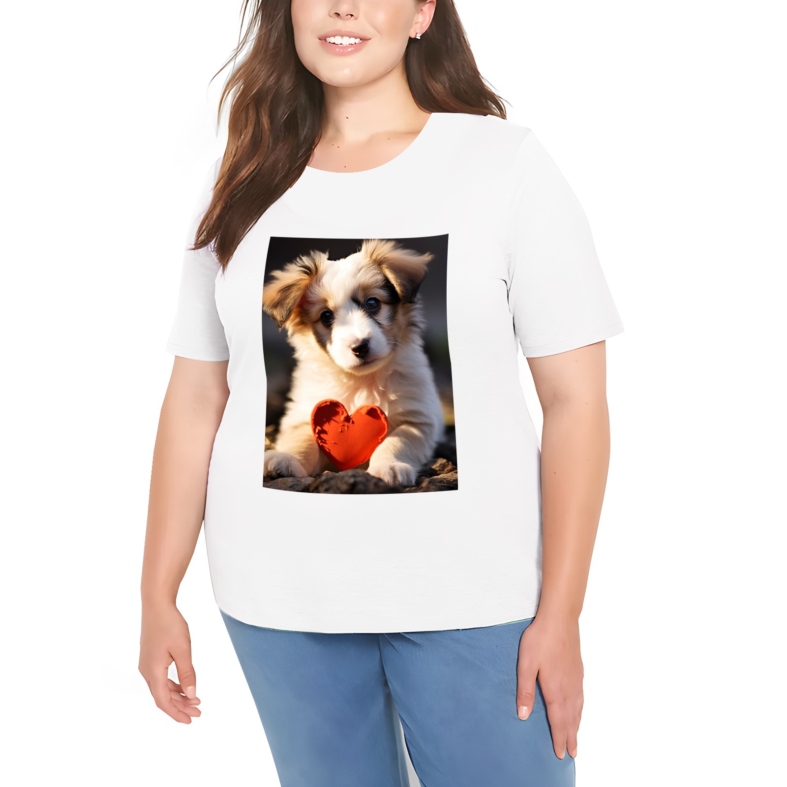 Basic Oversize Tees For WomenCute Puppy With A Red Heart (4) Loose Boyfriend Shirts Casual Blouse round neck