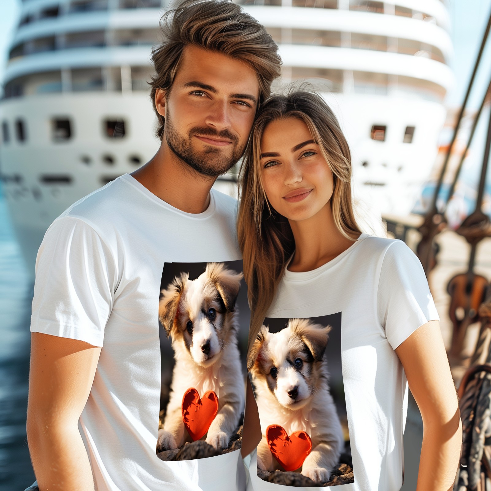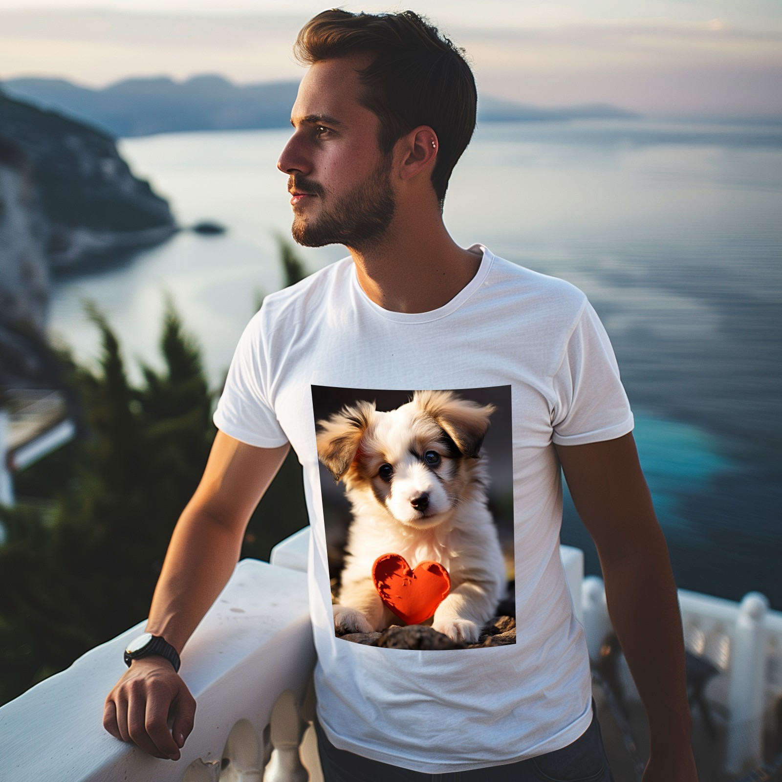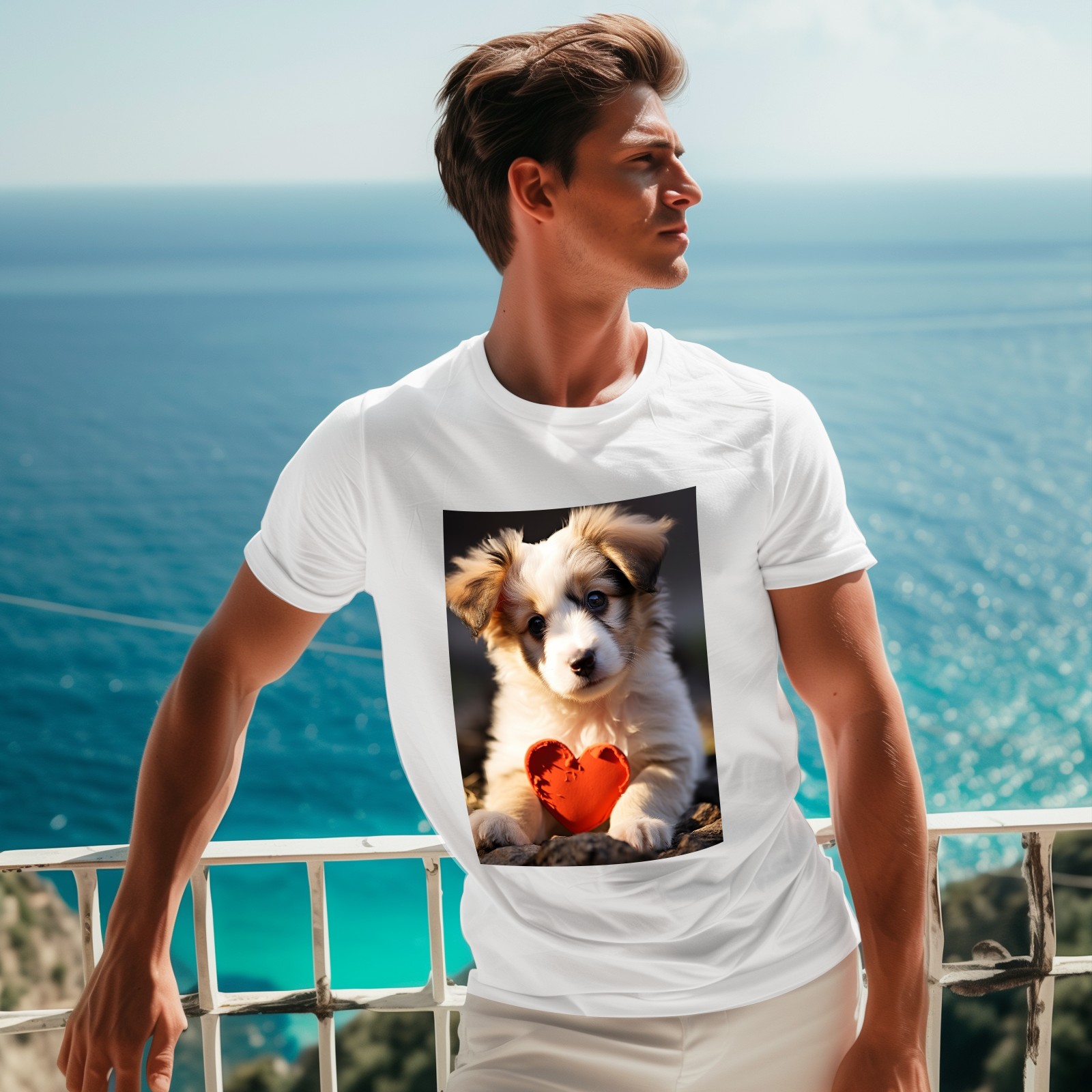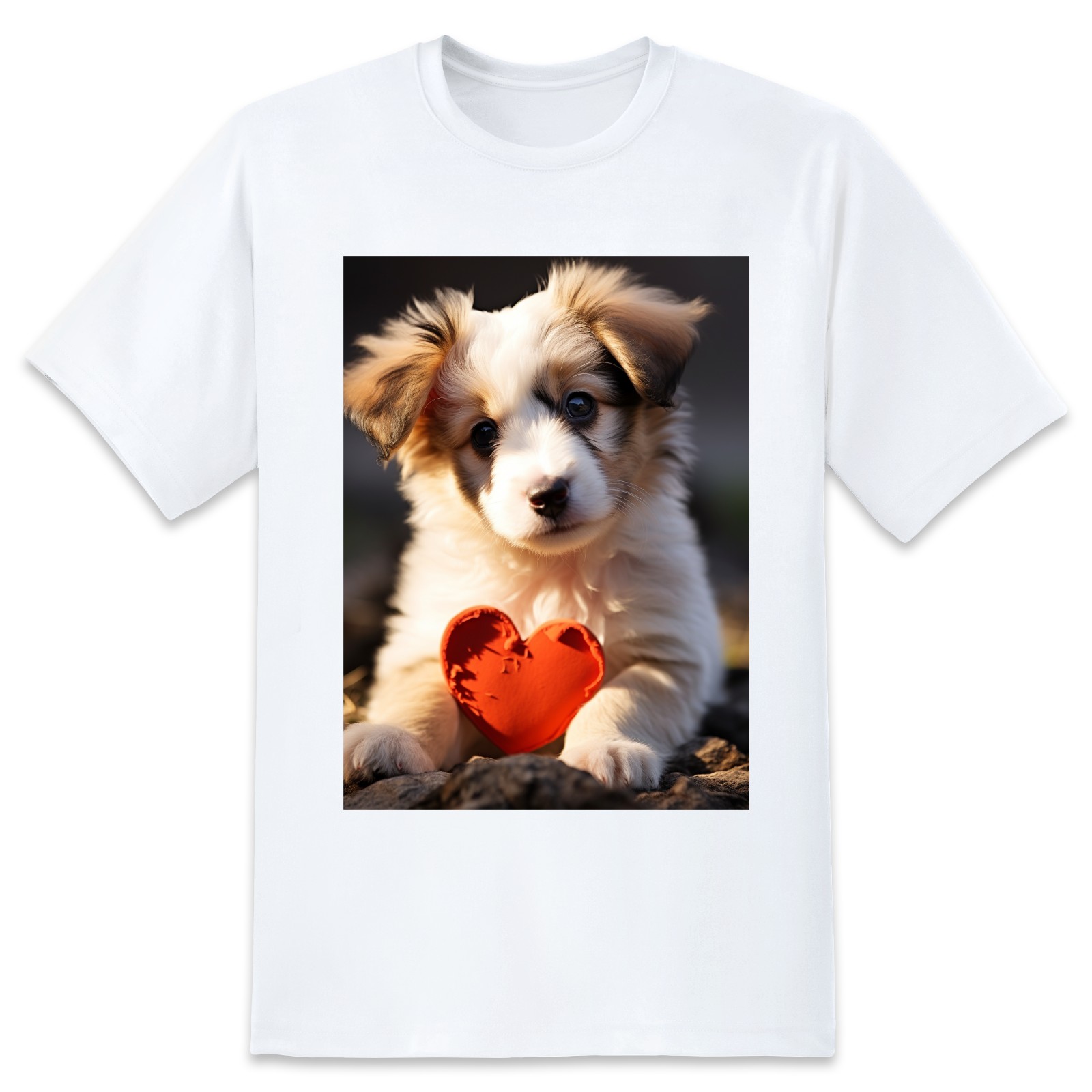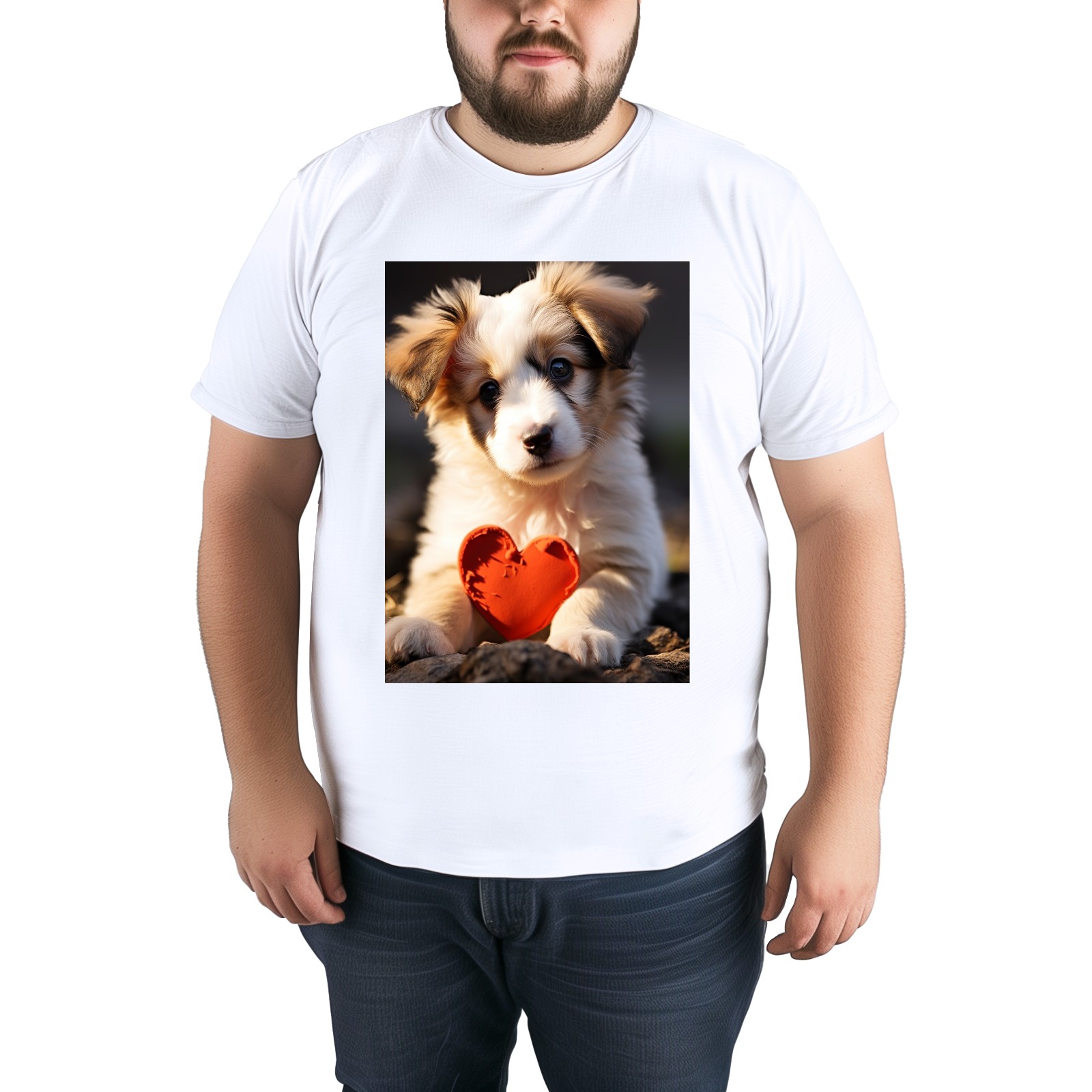 Basic Oversize Tees For WomenCute Puppy With A Red Heart (4) Loose Boyfriend Shirts Casual Blouse round neck