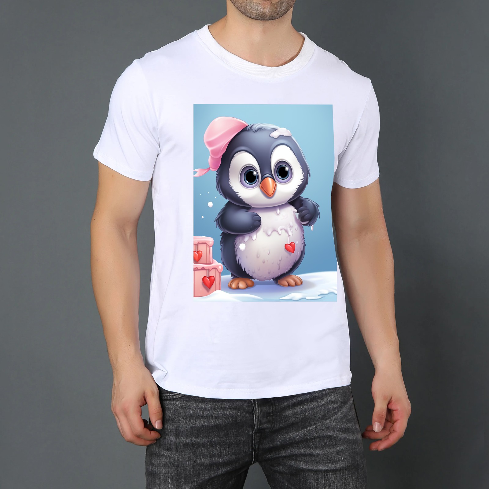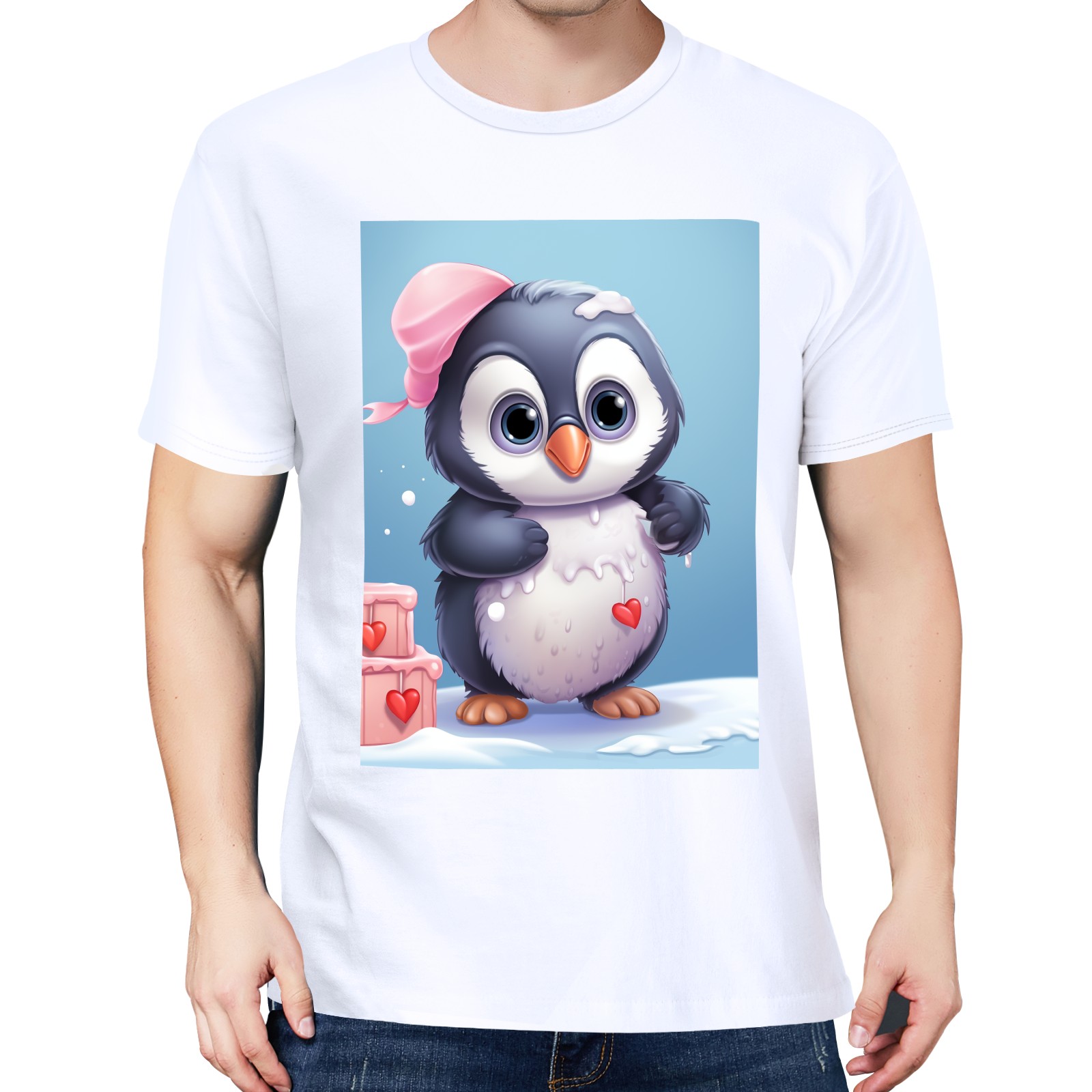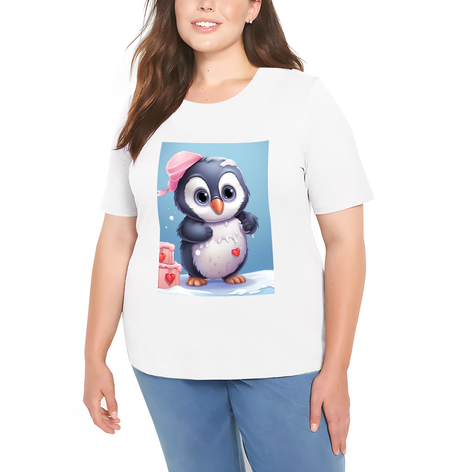 Basic Oversize Tees For WomenCute Penguin (2) Loose Boyfriend Shirts Casual Blouse round neck