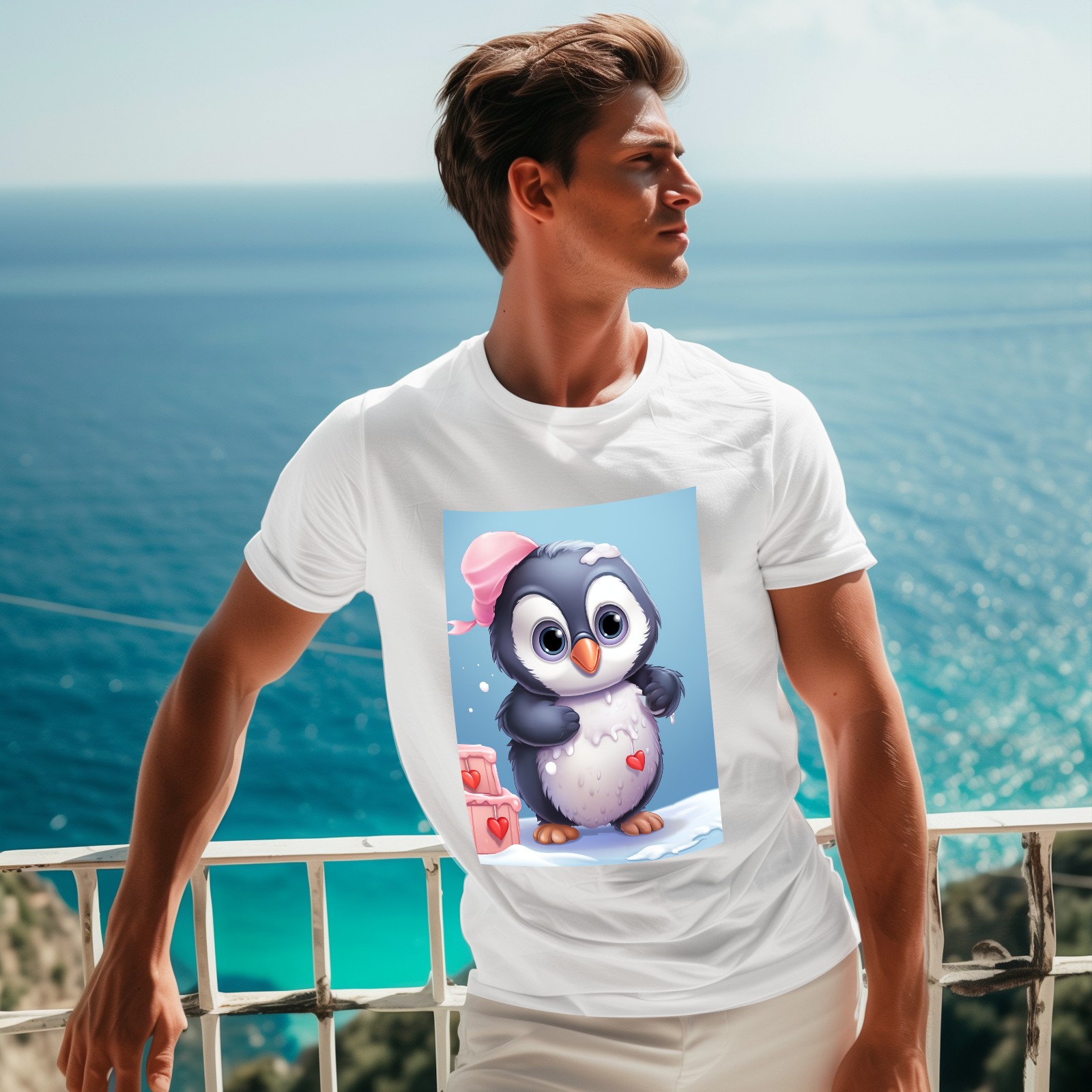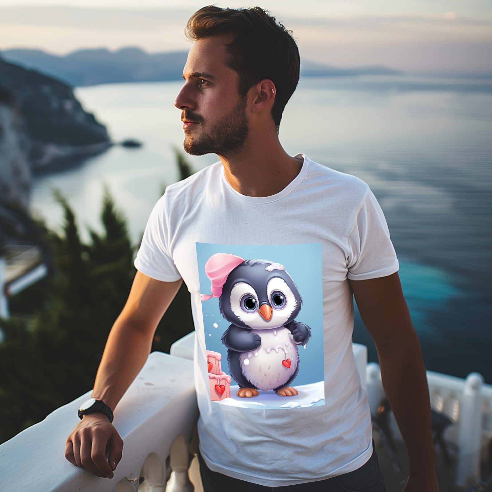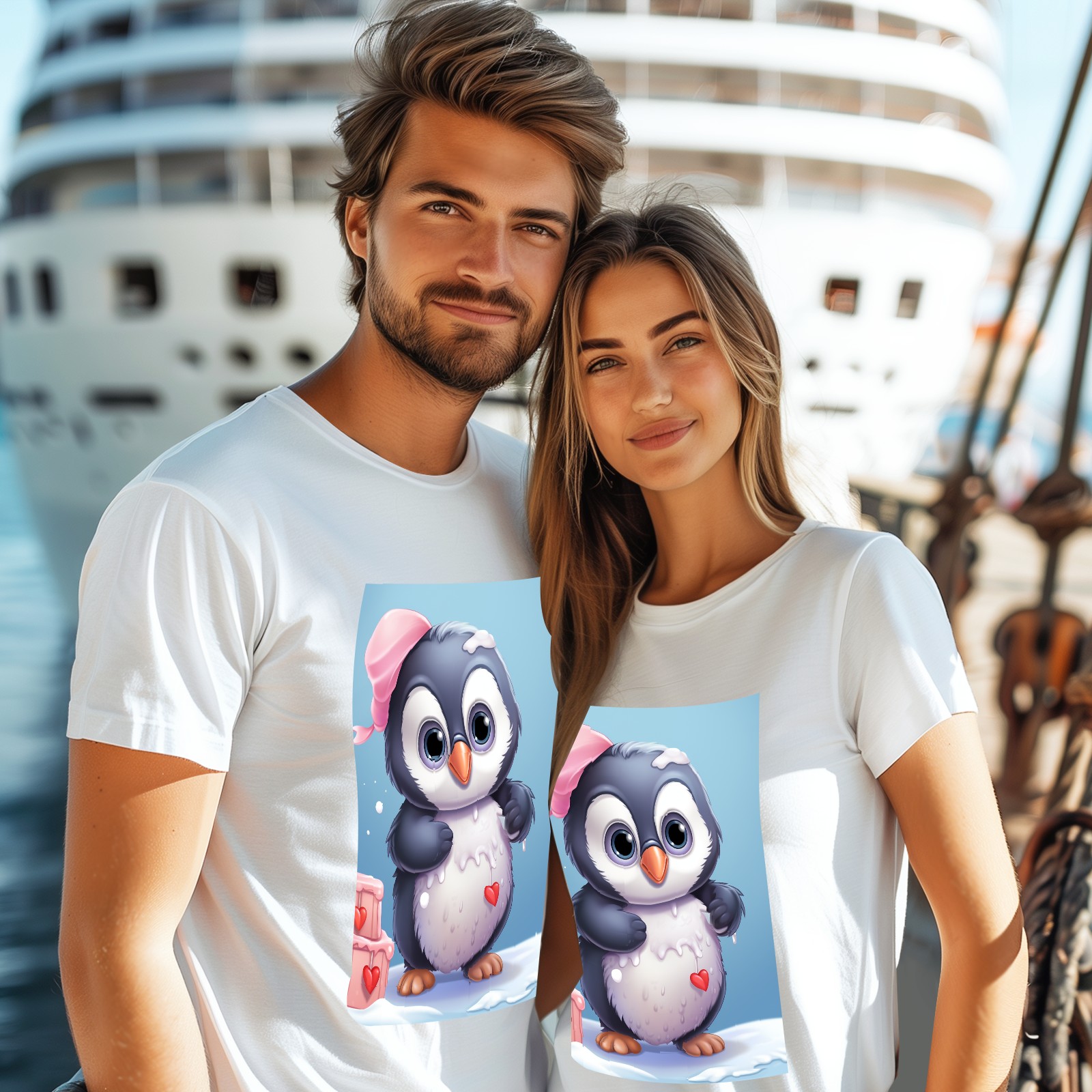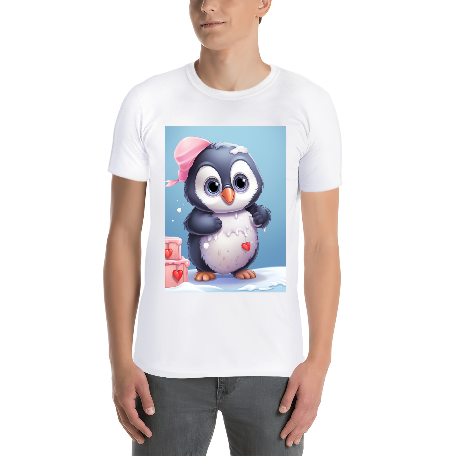 Basic Oversize Tees For WomenCute Penguin (2) Loose Boyfriend Shirts Casual Blouse round neck